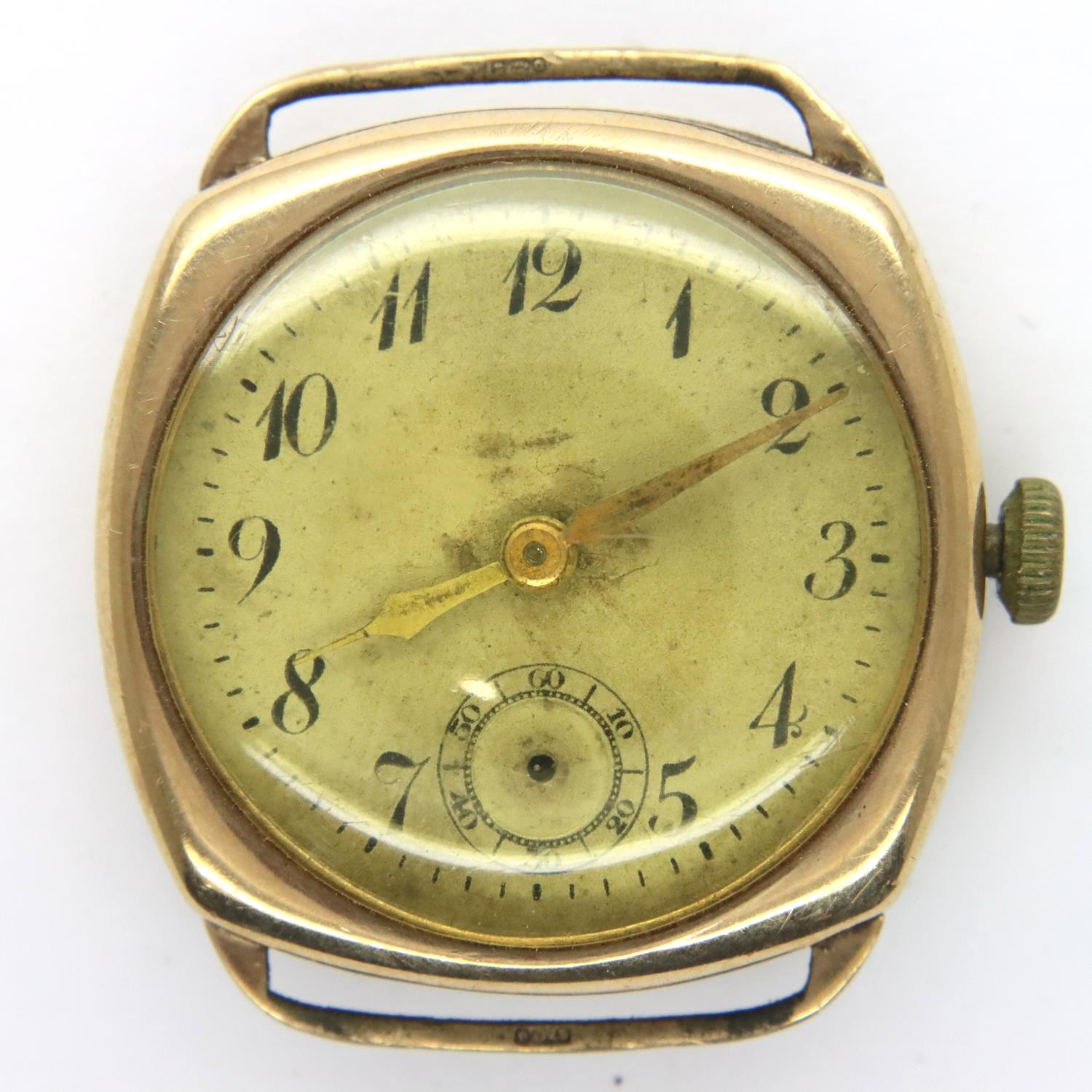 9ct gold gents wristwatch head, 18.9g. P&P Group 1 (£14+VAT for the first lot and £1+VAT for subsequent lots)