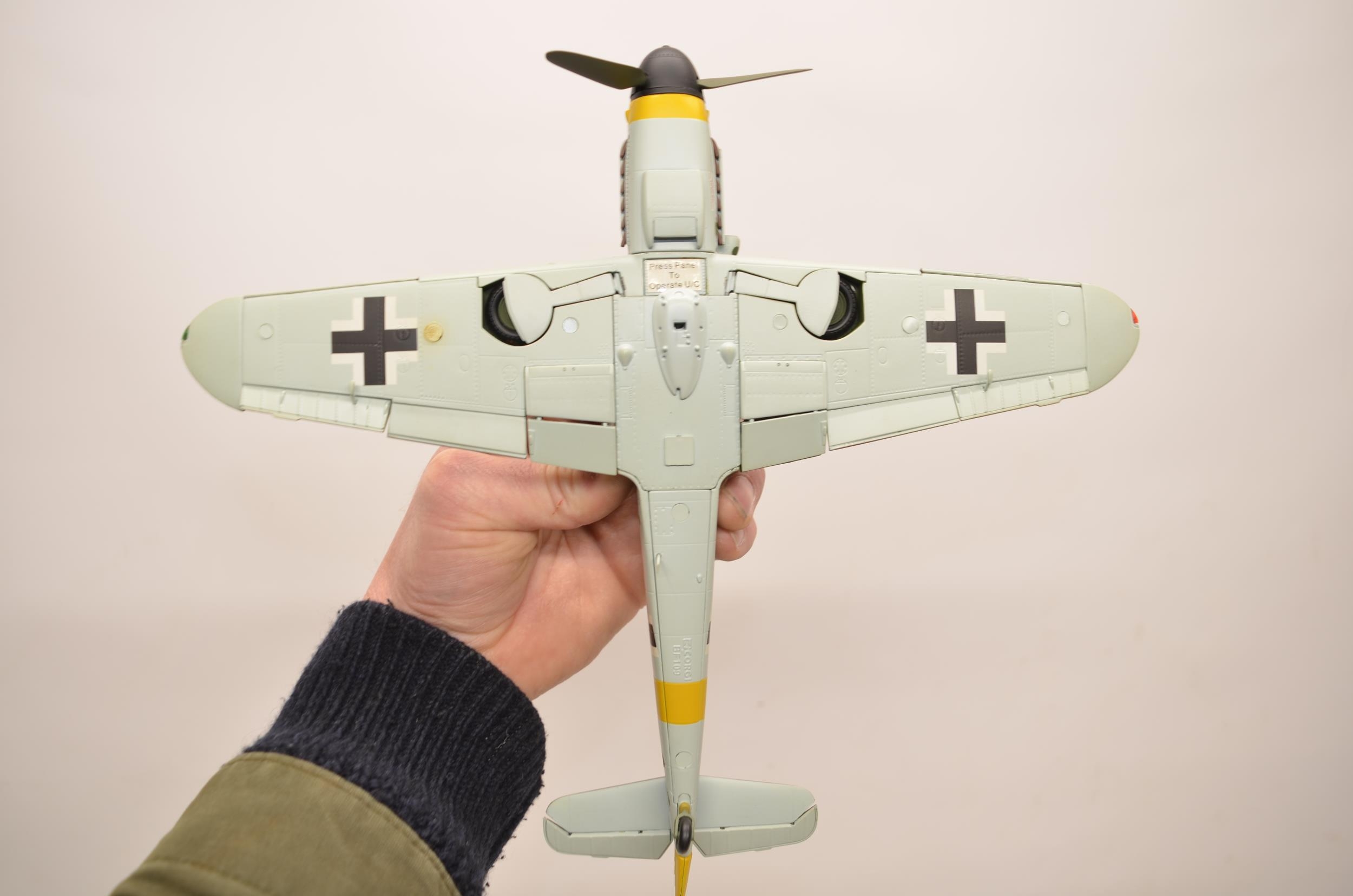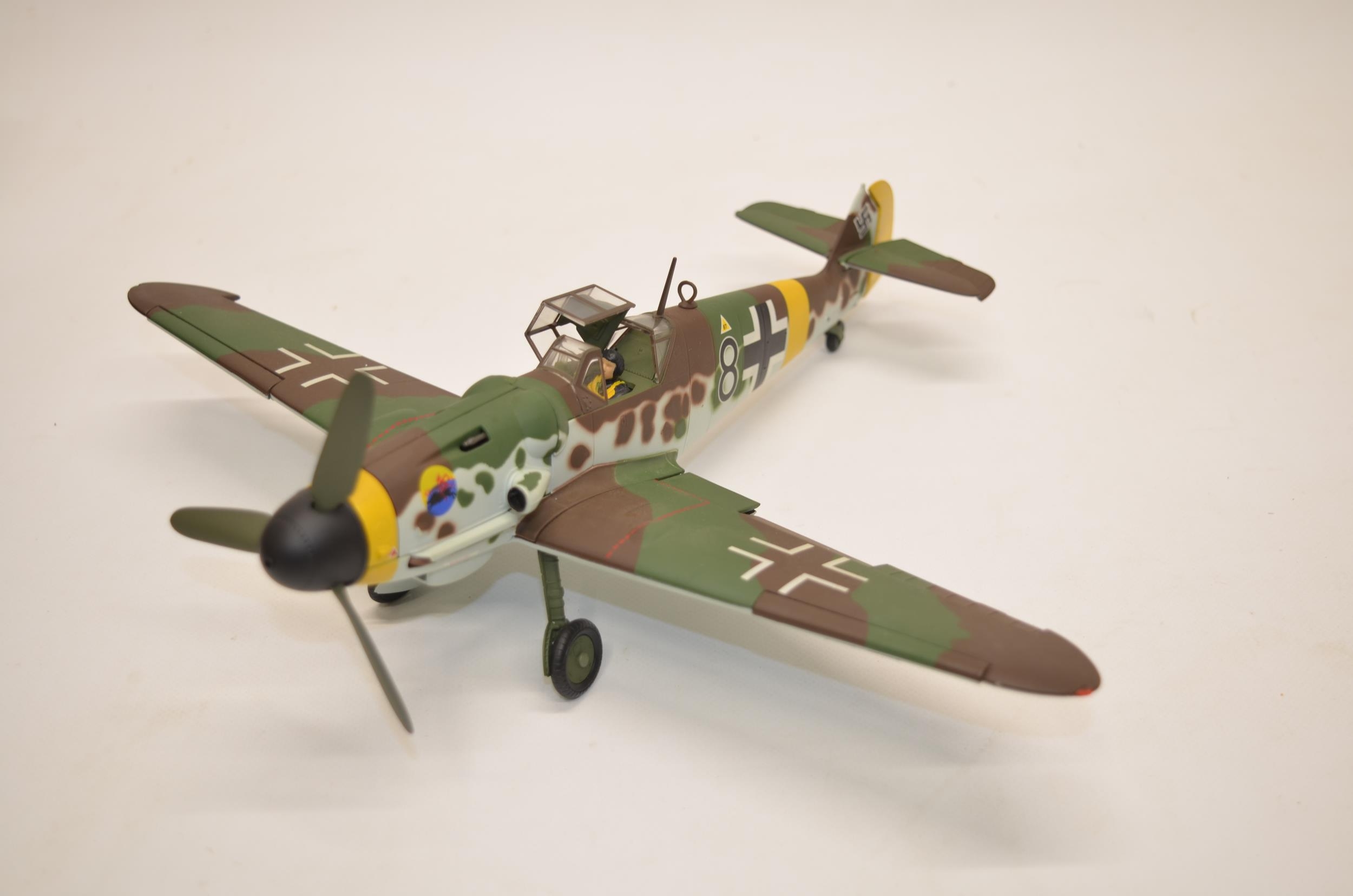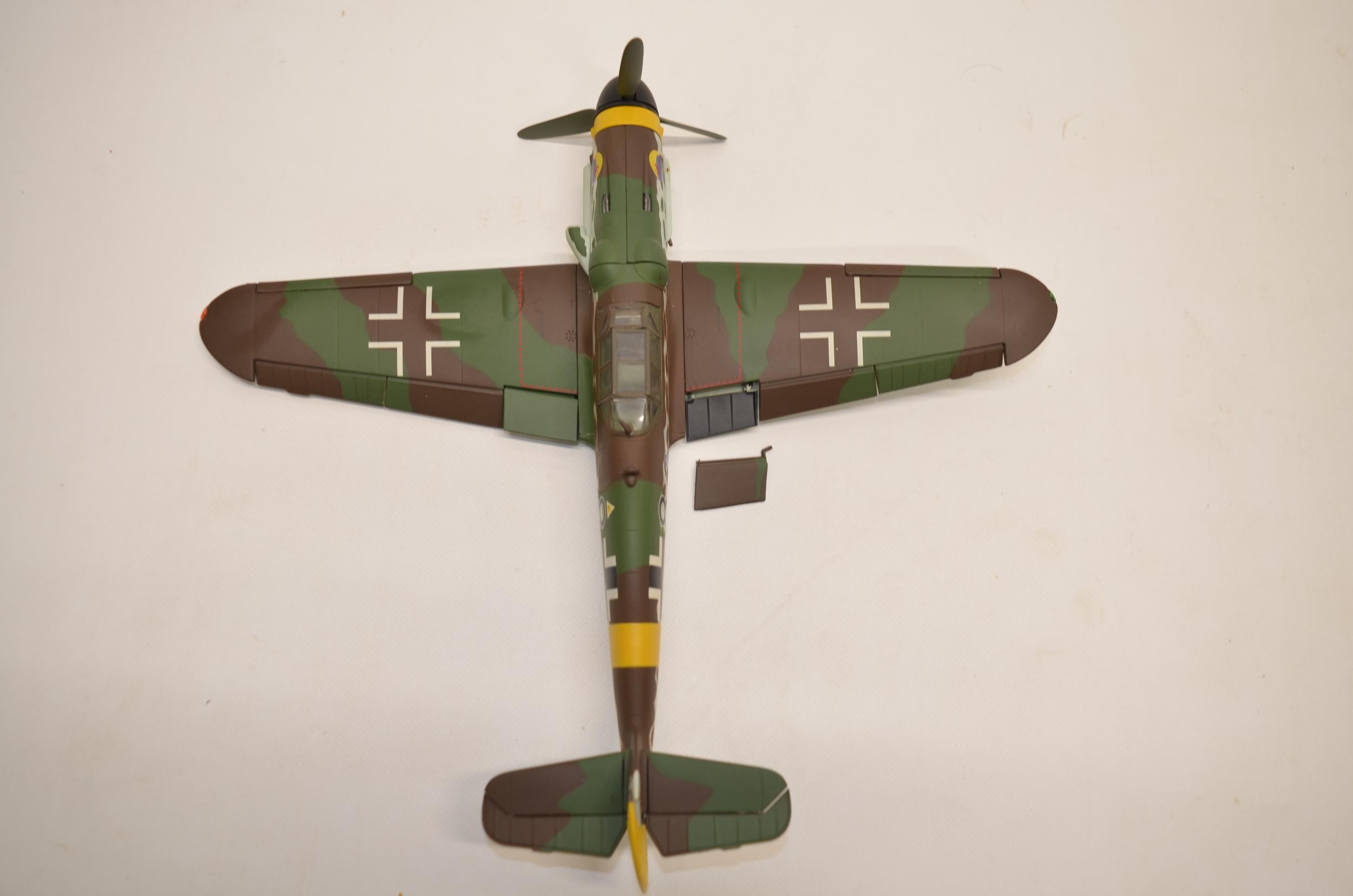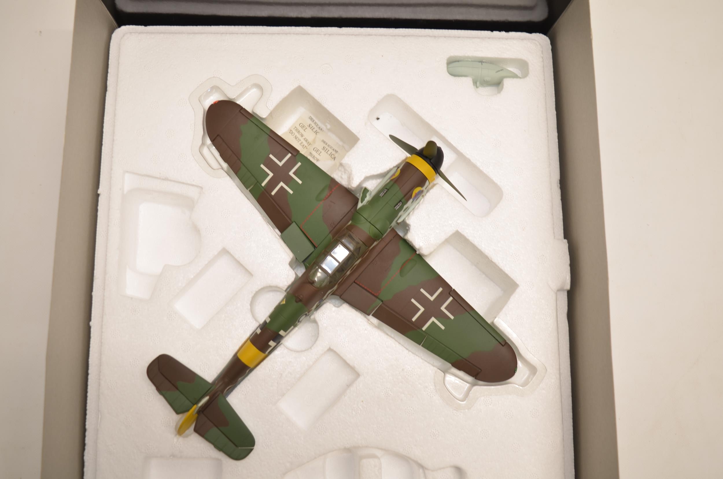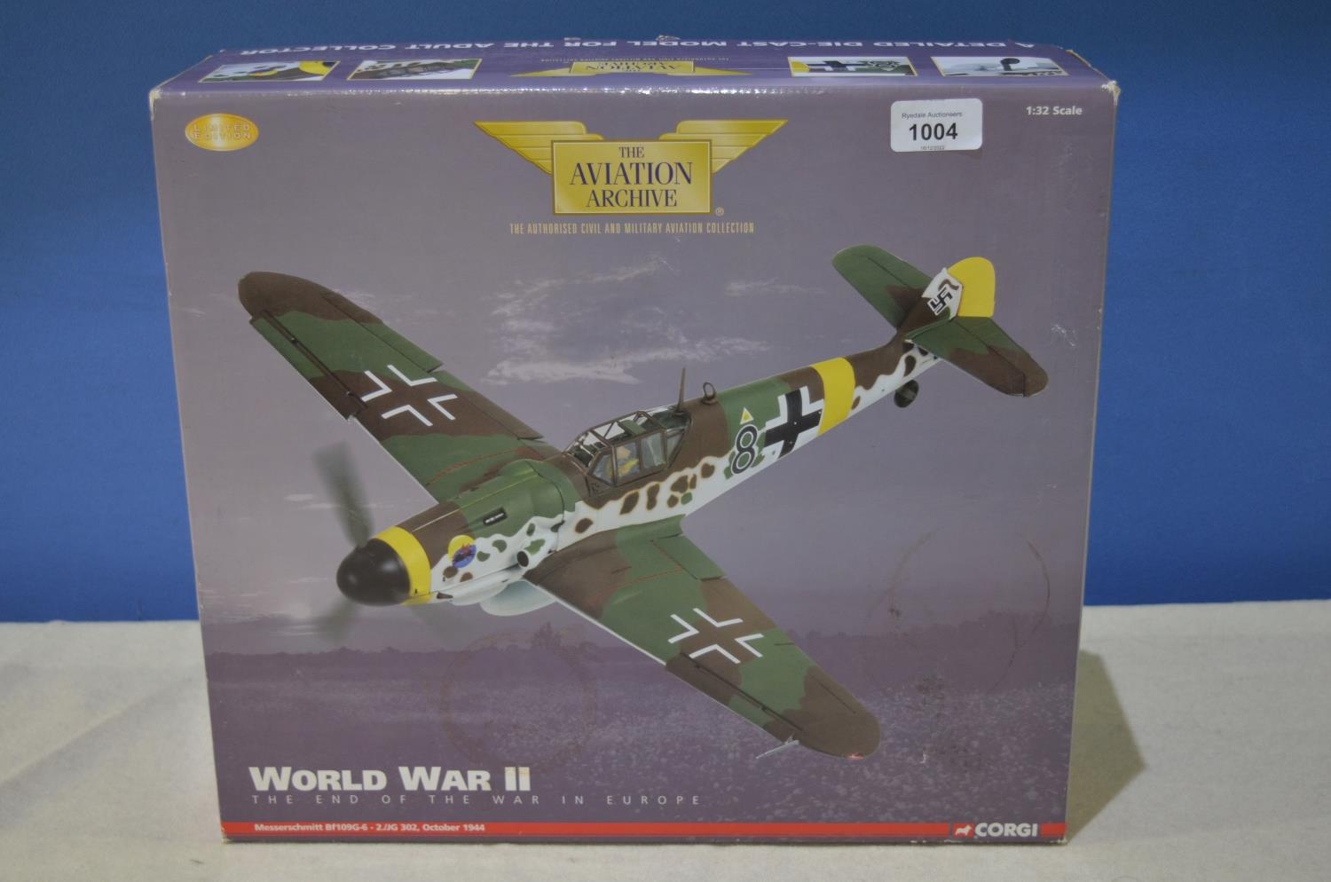 A boxed Corgi Aviation Archive 1/32 scale Messerschmitt Bf109G-6, 2./JG 302, October 1944 (model no AA34905). Model in fair condition: no stand, a flap has snapped off (present) and a paint stain lower right wing. Box fair. A/F