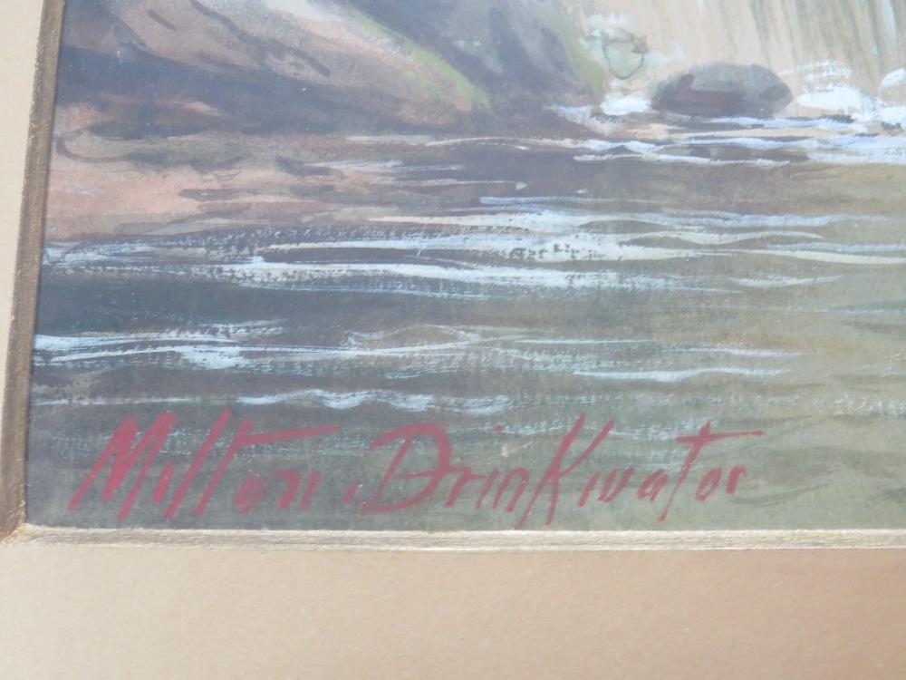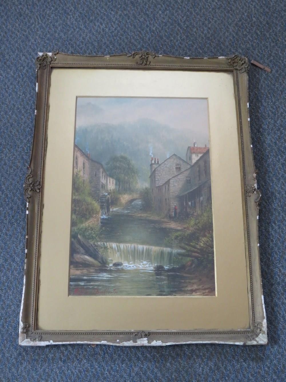 ALBERT MILTON DRINKWATER (1862-1923). Cumbrian scene with figure by watermill 'Old Mill, Ambleside', see verso, signed lower left, watercolour, framed and glazed, 44 x 29 cm