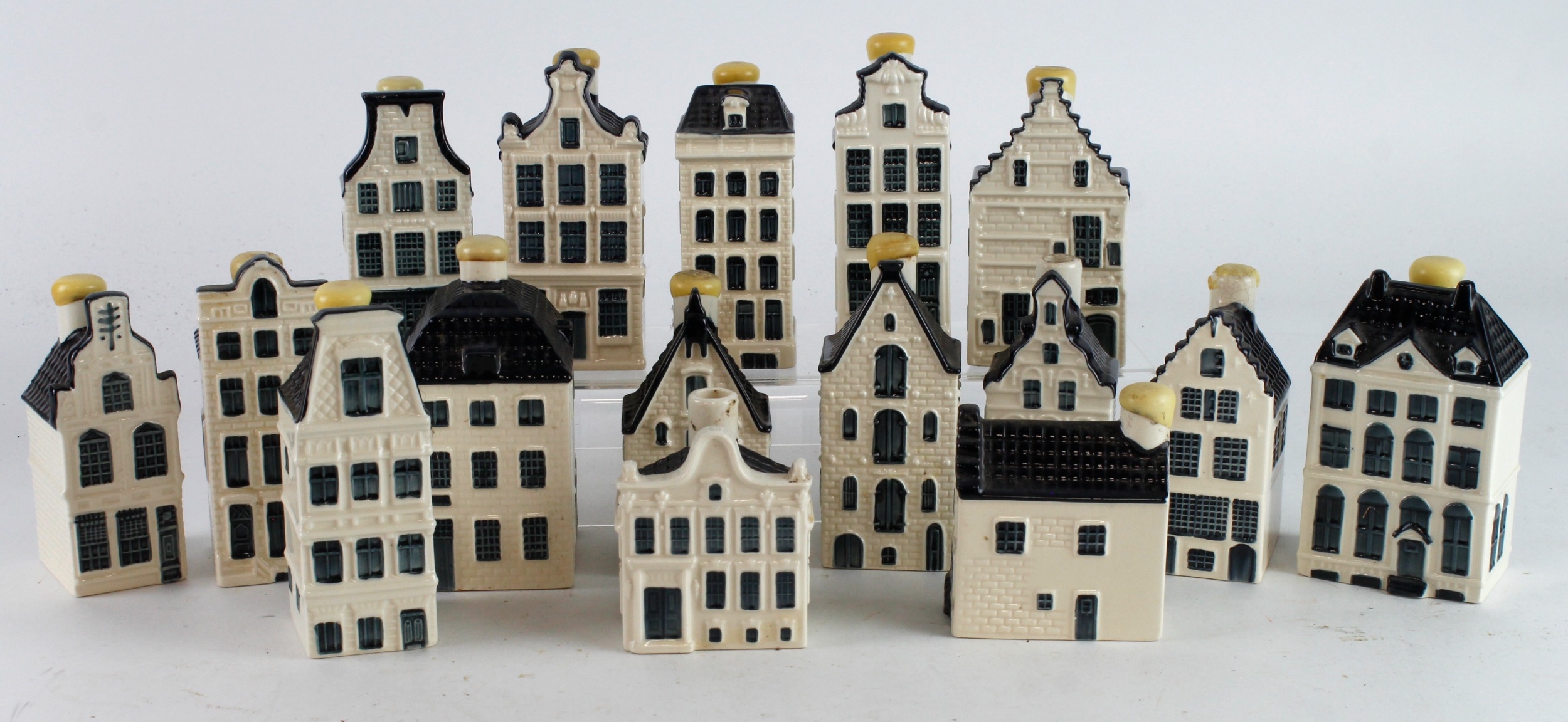 KLM. interest. Sixteen KLM Bols decanters (some with contents), comprising nos. 2, 23, 24, 25, 46, 48, 50, 54, 55, 61, 67, 70, 74, 80, 82 & 90, tallest 11.5cm approx. (buyer collects)