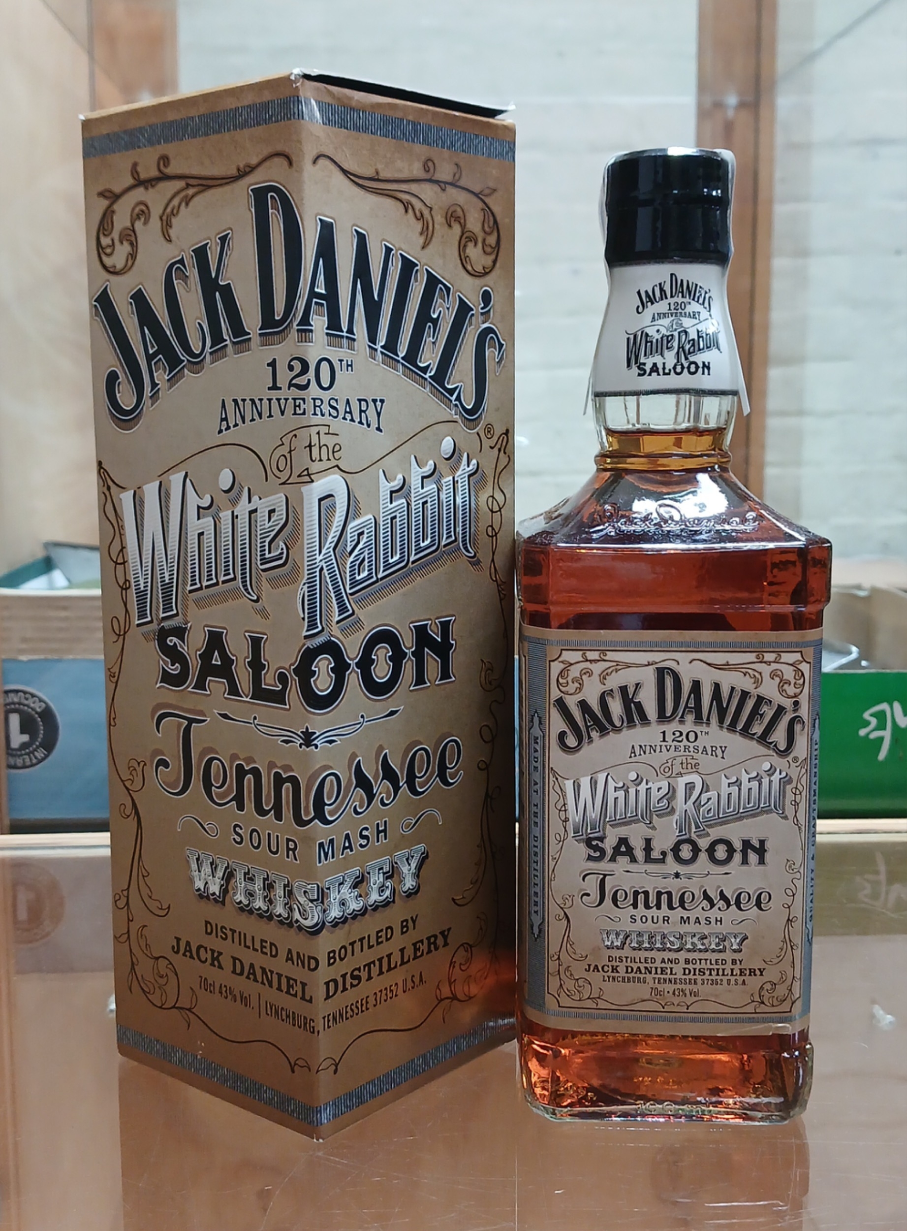 Jack Daniels 120th Anniversary White Rabbit Saloon whisky, 700ml bottle, sealed and with box.