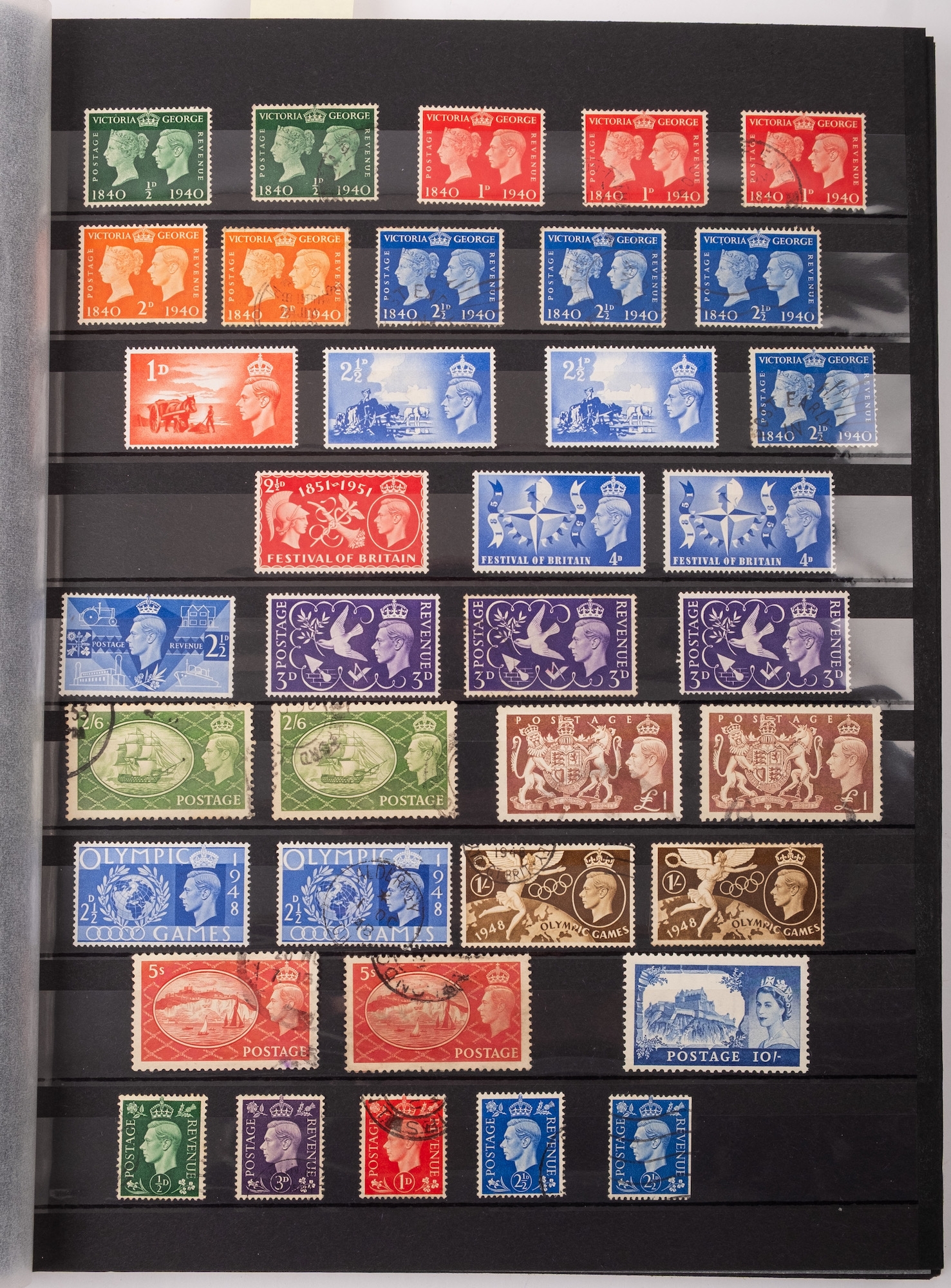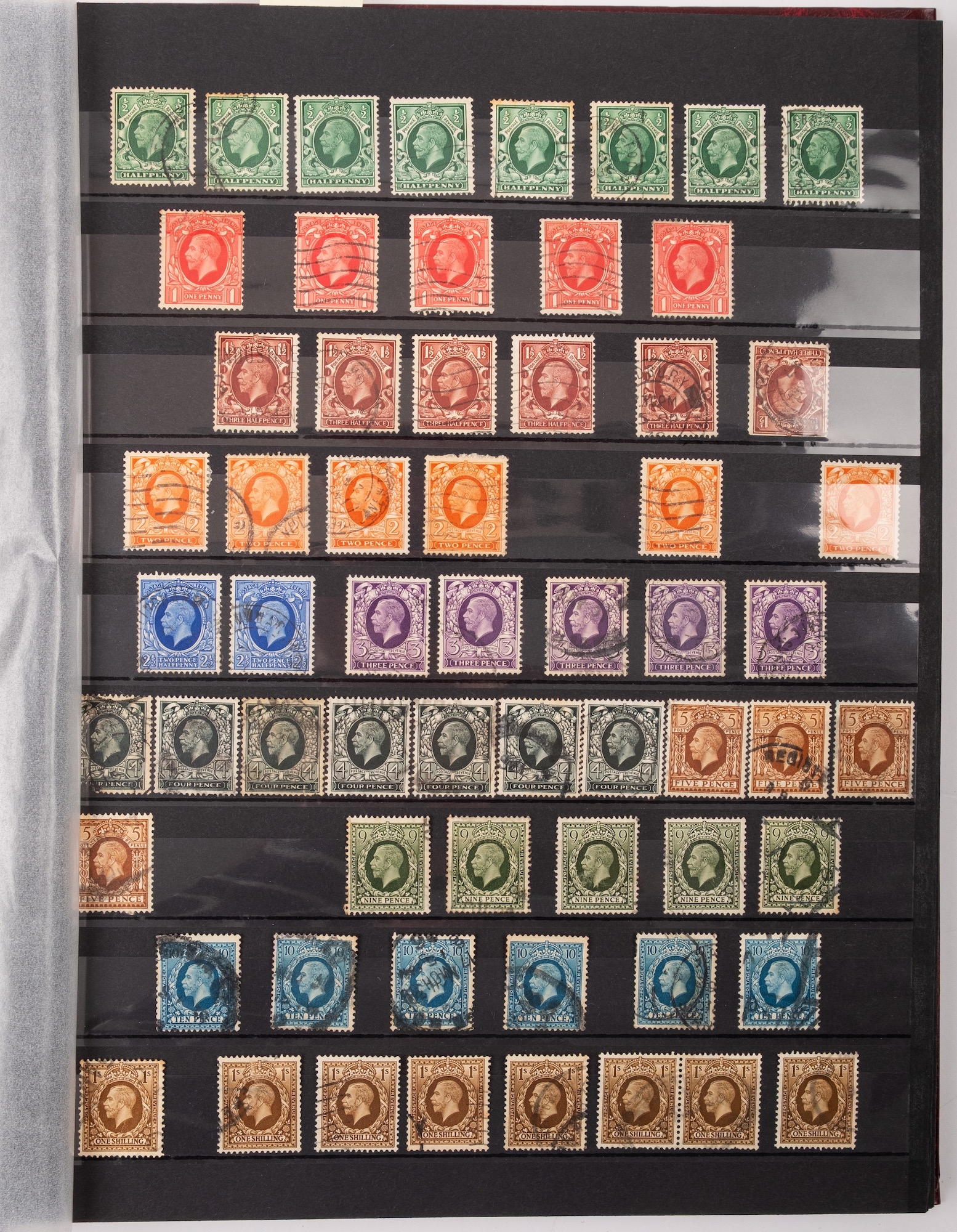 Great Britain. A collection of GB stamps including overseas overprints in a 32-sided light stock-book, and a further volume of GB mini sheets from 2015.