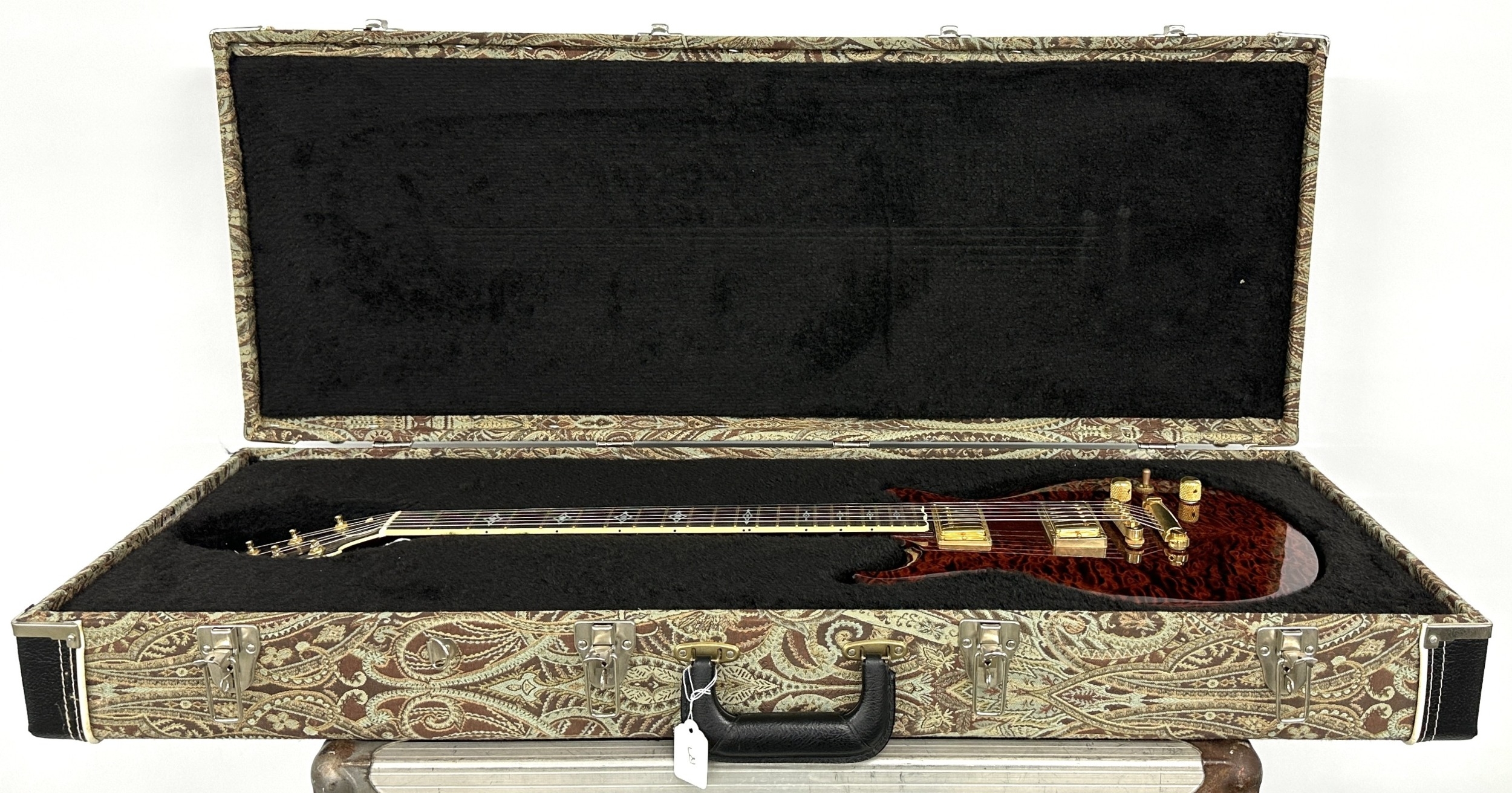 Scott Walker Special electric guitar, made in USA; Body: brown finish quilted and figured maple upon tight figured back, light surface pick marks to treble side top; Neck: mahogany; Fretboard: ebony with pearl position markers; Frets: good, brass; Electrics: working; Hardware: good; Case: original fitted hard case; Weight: 3.51kg; Overall condition: very good