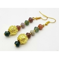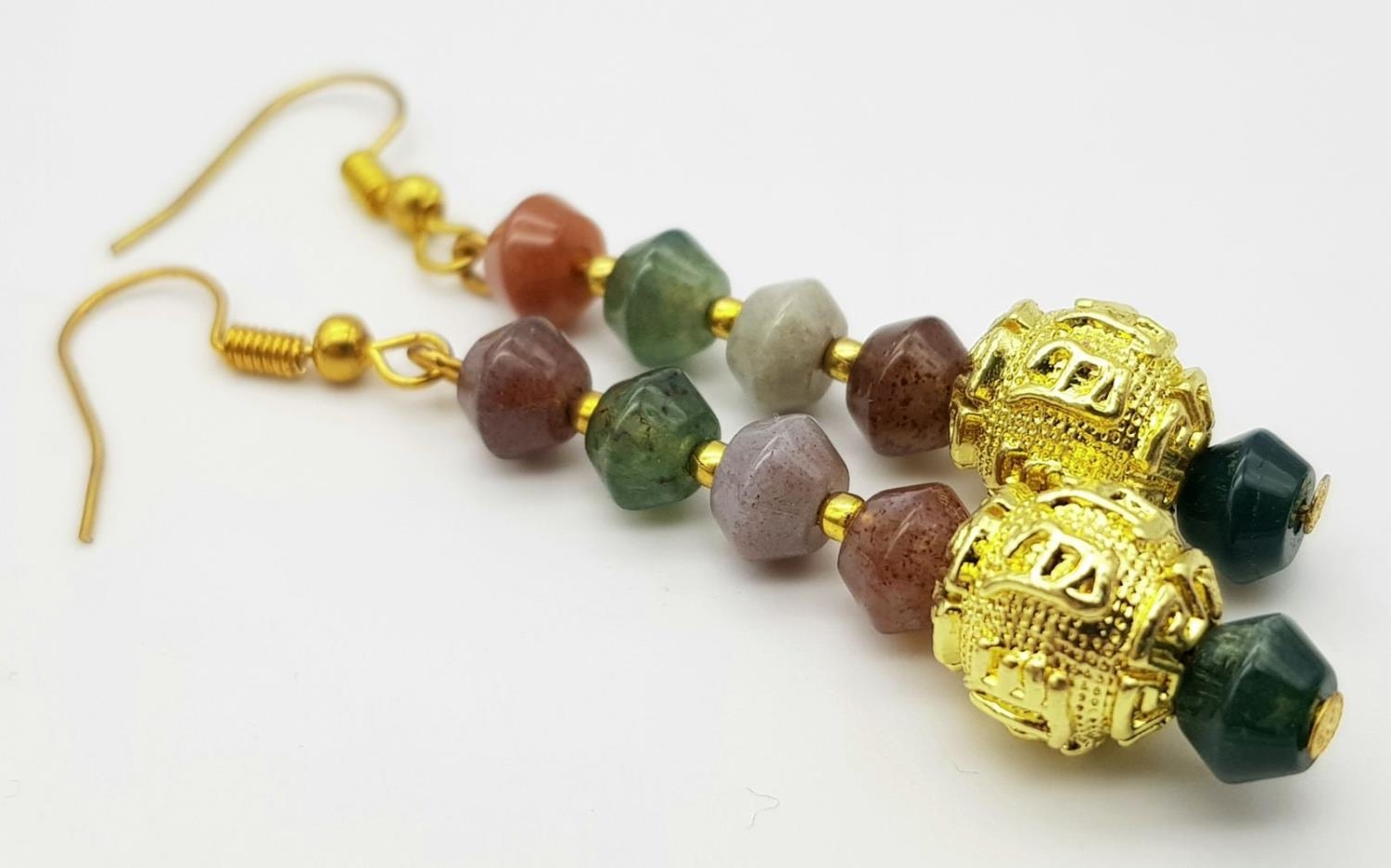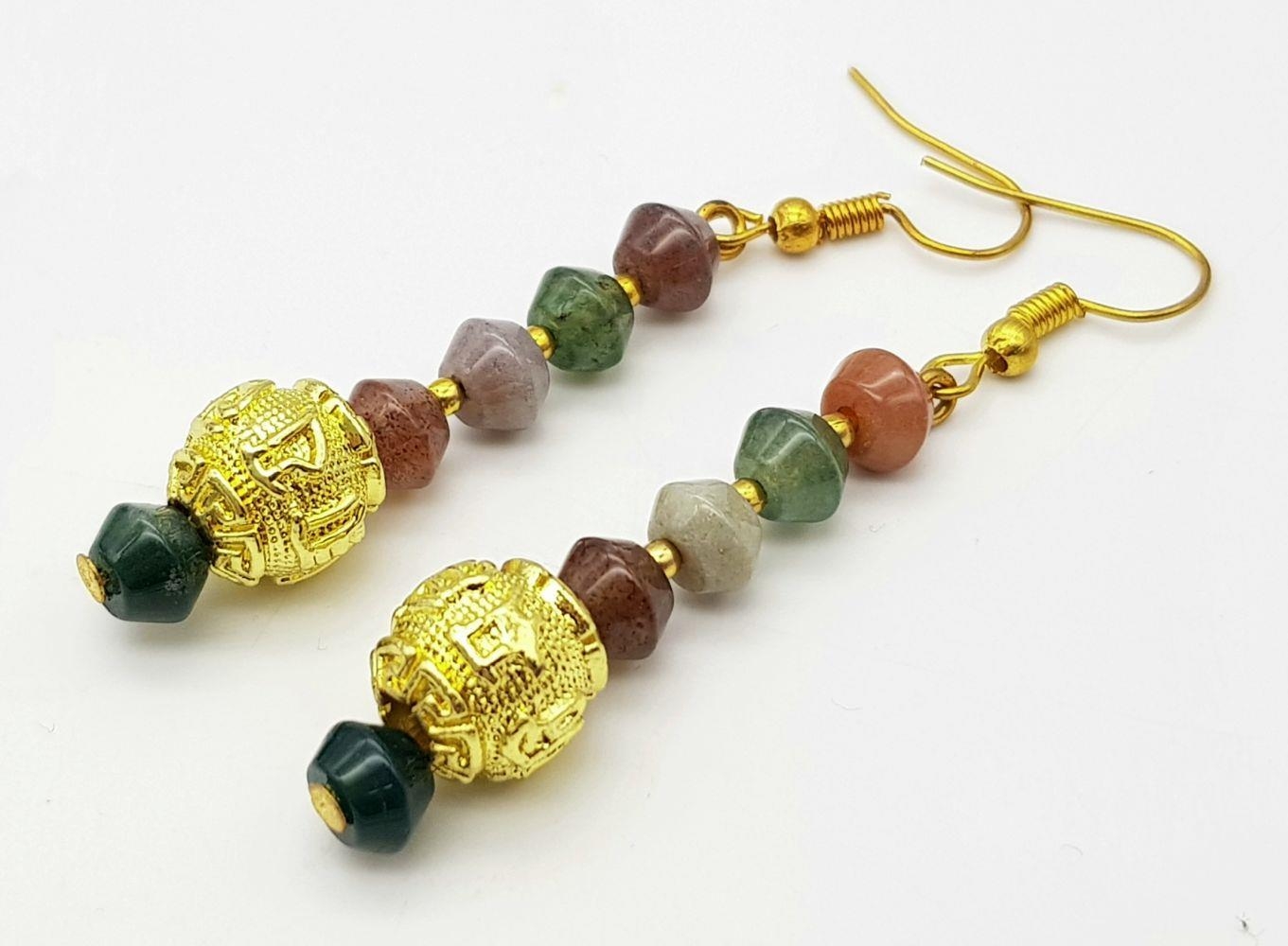 Chinese “good luck” accent beads. Accompanied by matching earrings. Necklace length: 41-50 cm, earrings length: 6 cm, total weight: 84 g. A nice representation of all natural jade colours!