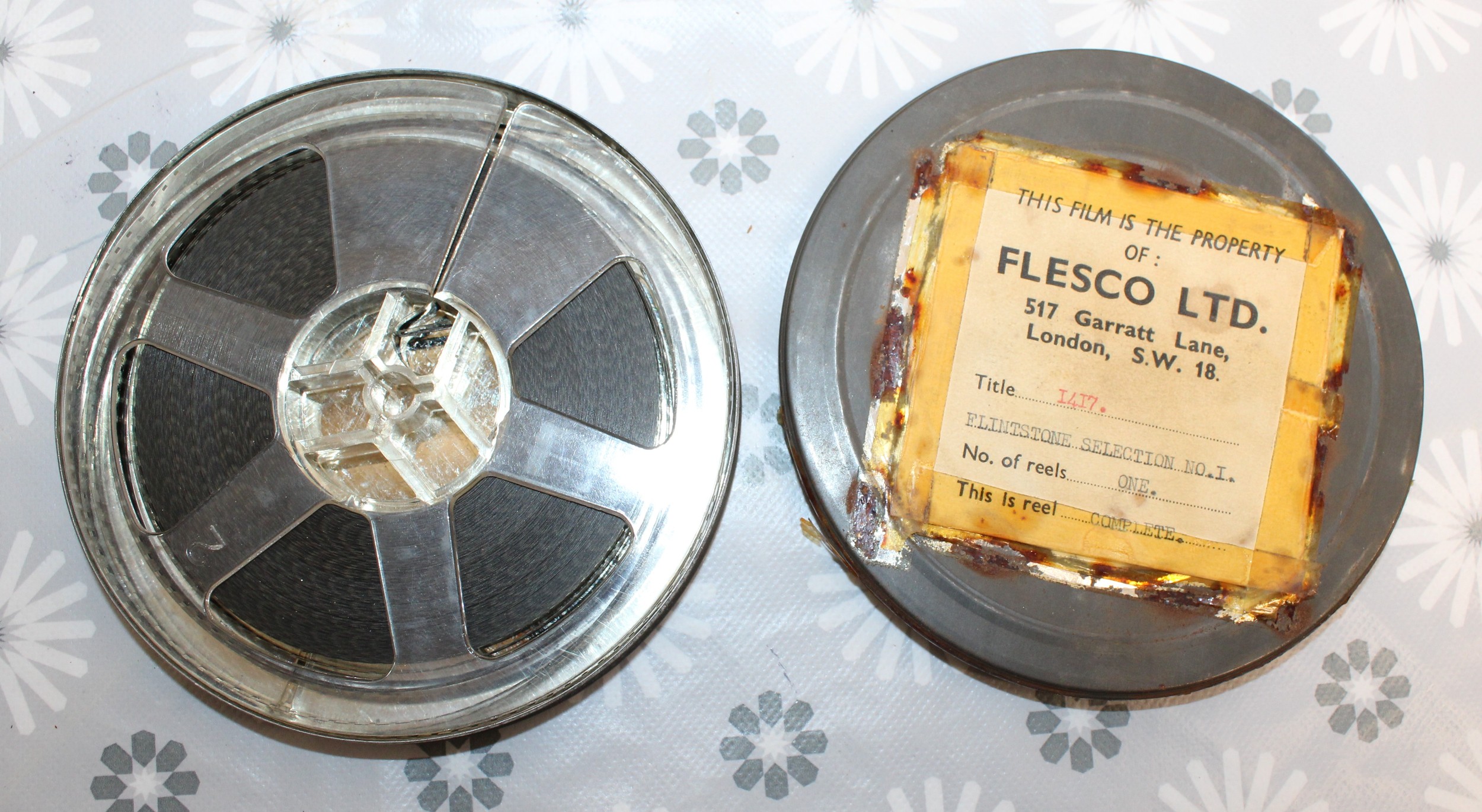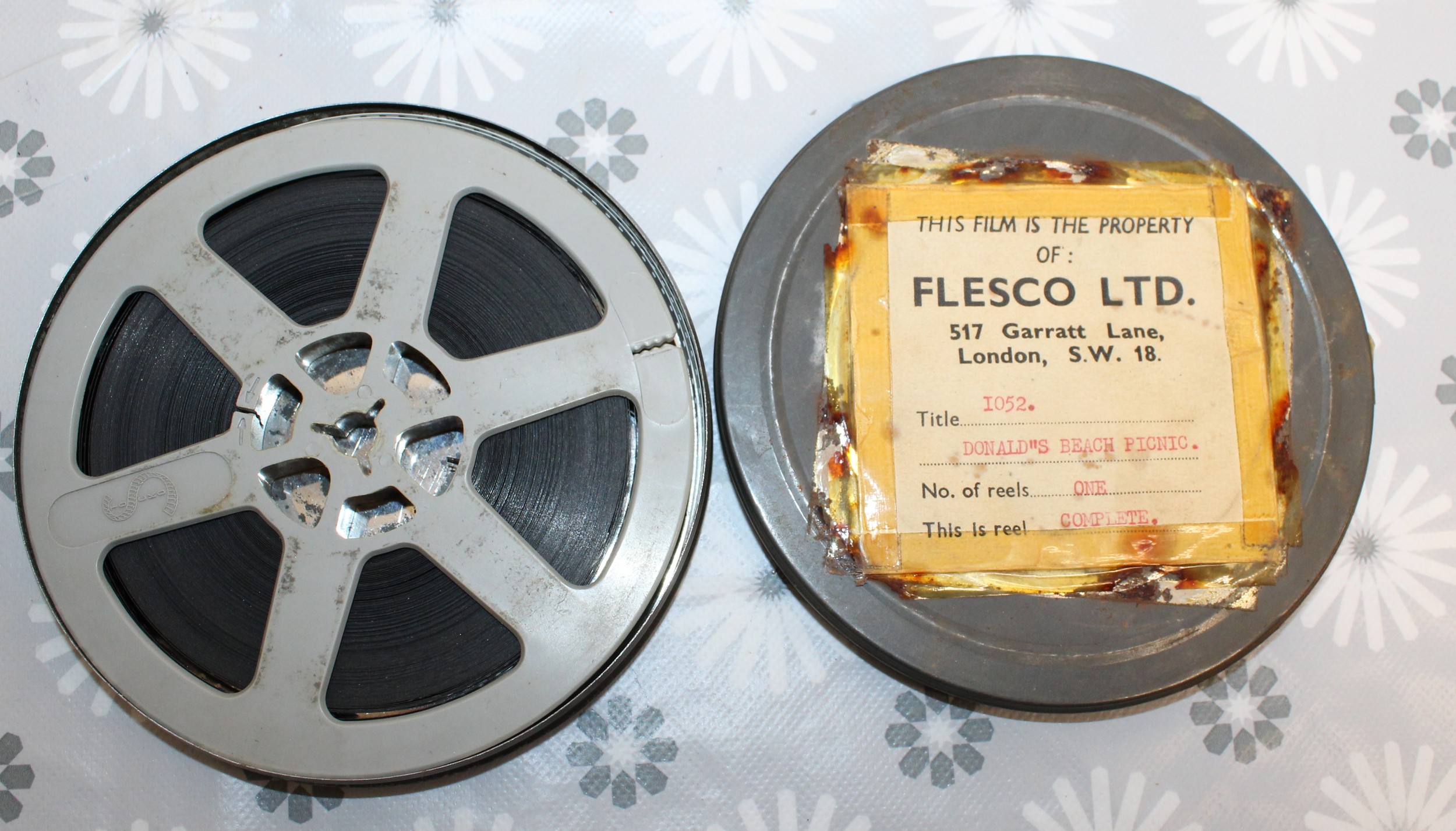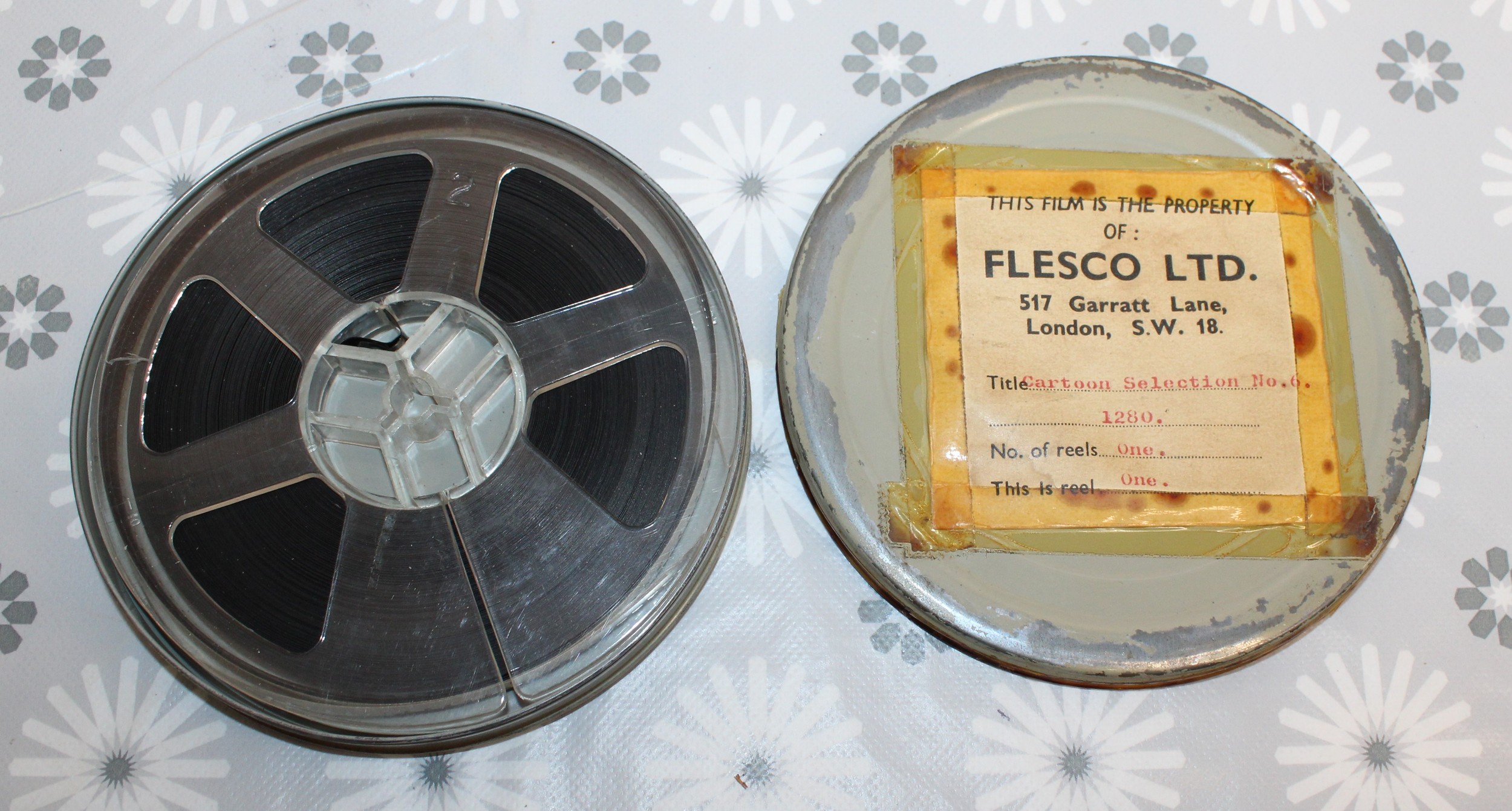 Five FLESCO FILM REELS INC-Thunderbirds Sel/.No.1 1599/DONALD''S BEACH PICINIC 1052. /Cartoon Selection No.6. 1280/FLINTSTONE SELECTION No. 1. 1417./Mickey's Streamroller 900 In Case All As Found