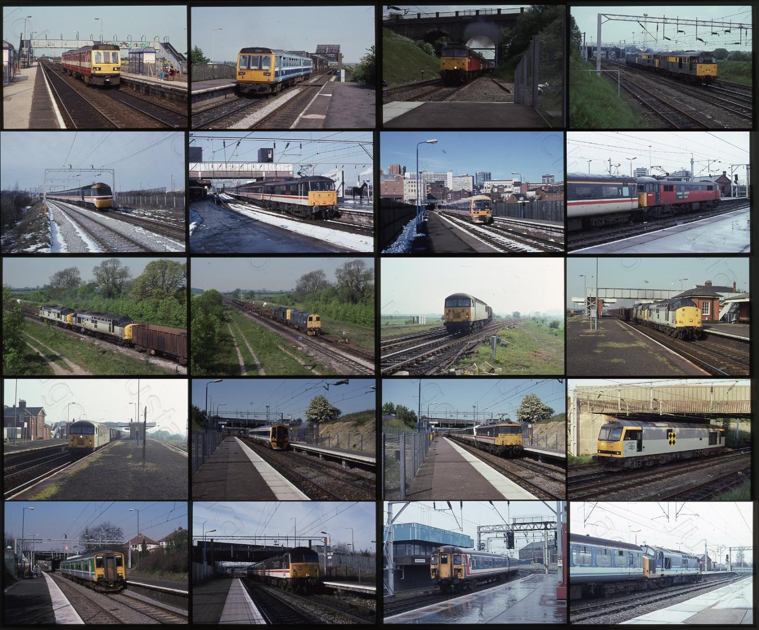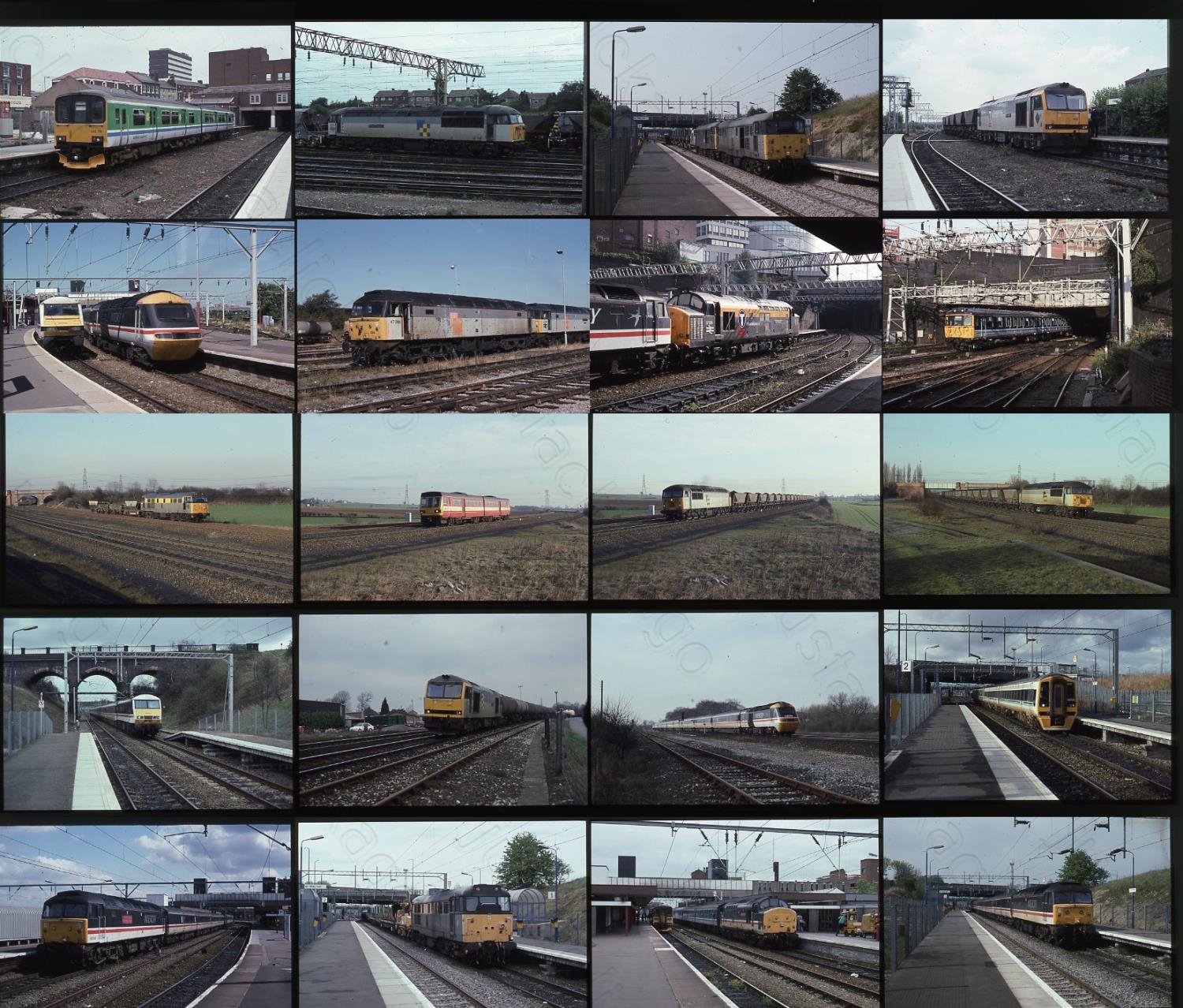 Modern Traction 1990's. A collection of modern traction by the late photographer David T. Williams of West Bromwich. David was best known for his modern traction photographs many of which have appeared in the Strathwood colour albums. This selection is from the period 1992-95 and includes a variety of traction, including "Sectorisation" diesels and electrics plus DMU's and HST's, mostly in the Birmingham area. Plus a trip to Burton Salmon on the ECML noted. Approx. 320 x 35mm colour slides, all on Kodachrome. All are captioned with the loco number, sold with copyright, sample illustrated.