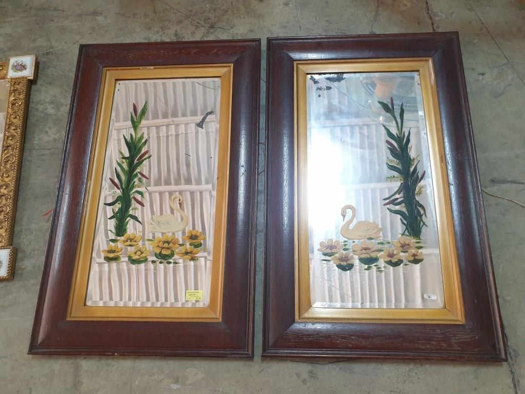 2 x Opposing Pair of Swan Mirrors in Wooden Frame (80cm x 50cm each)