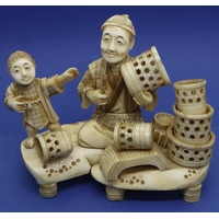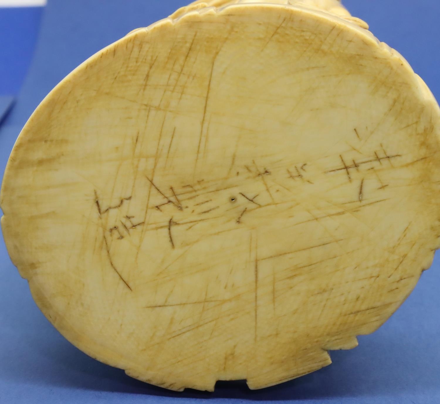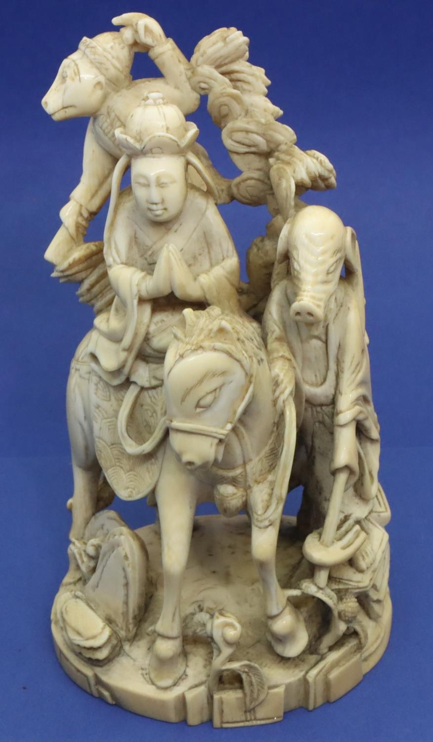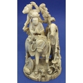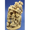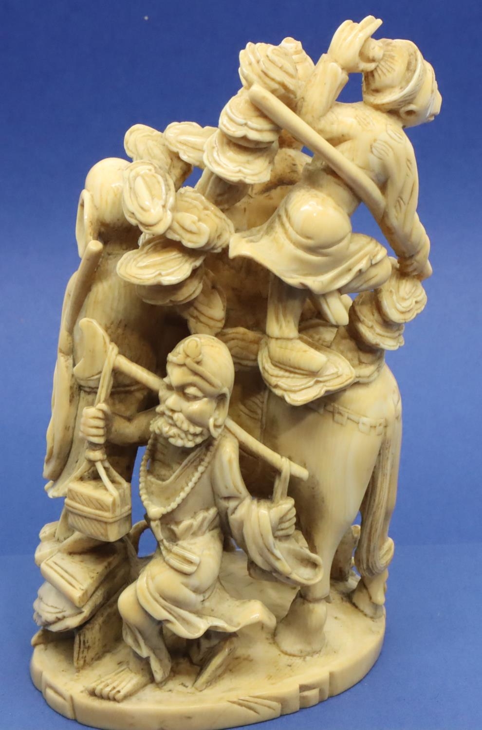 Ivory figural group with a man on his horse, other figures and animals, H: 125 mm, 247g, signed to base. Overall good condition. P&P Group 1 (£14+VAT for the first lot and £1+VAT for subsequent lots)