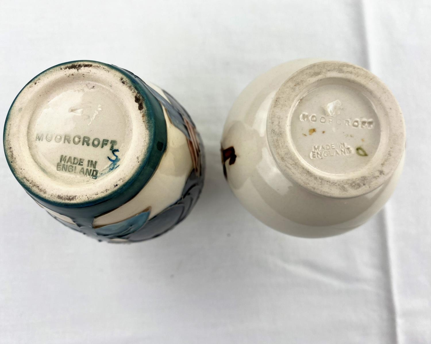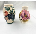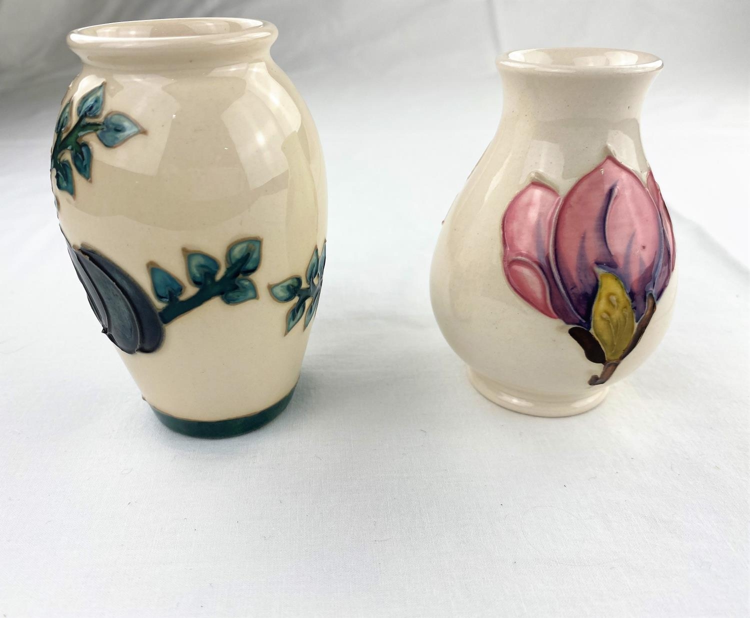 A Moorcroft bird & plum design ovoid vase impressed & monogrammed height 10cm; a Moorcroft baluster magnolia vase impressed & monogrammed 9.5cm