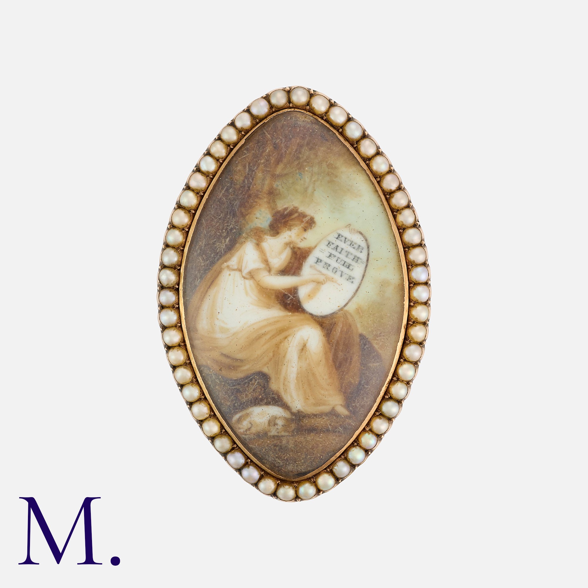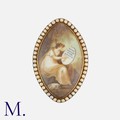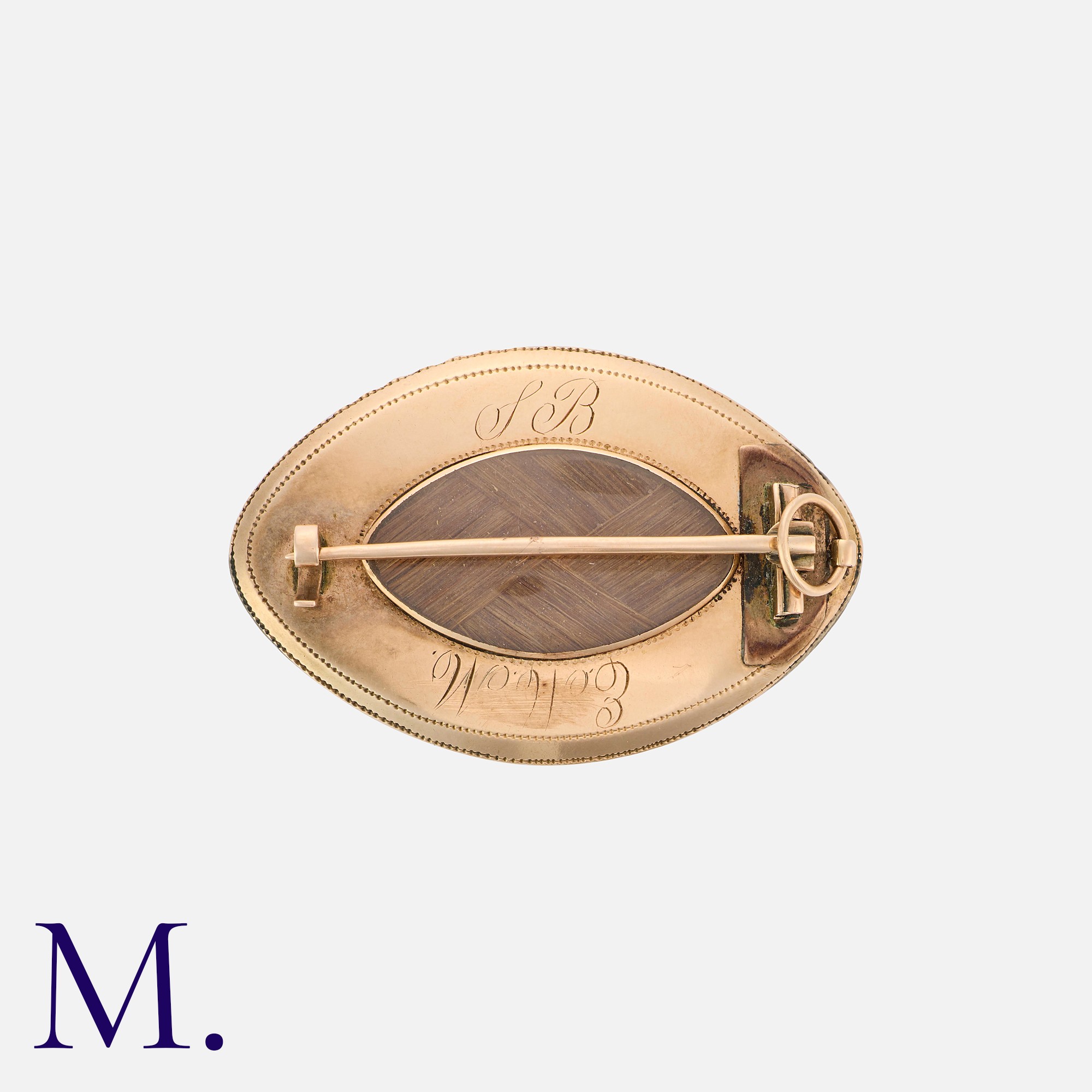 A Georgian Miniature Locket Brooch in yellow gold with hairwork to locket reverse.