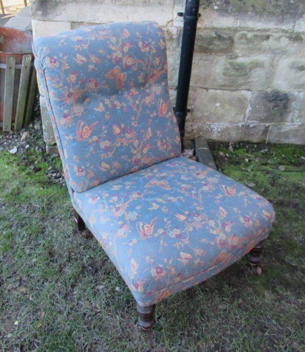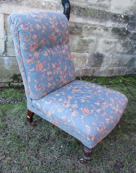 An Edwardian upholstered nursing chair with turned front legs