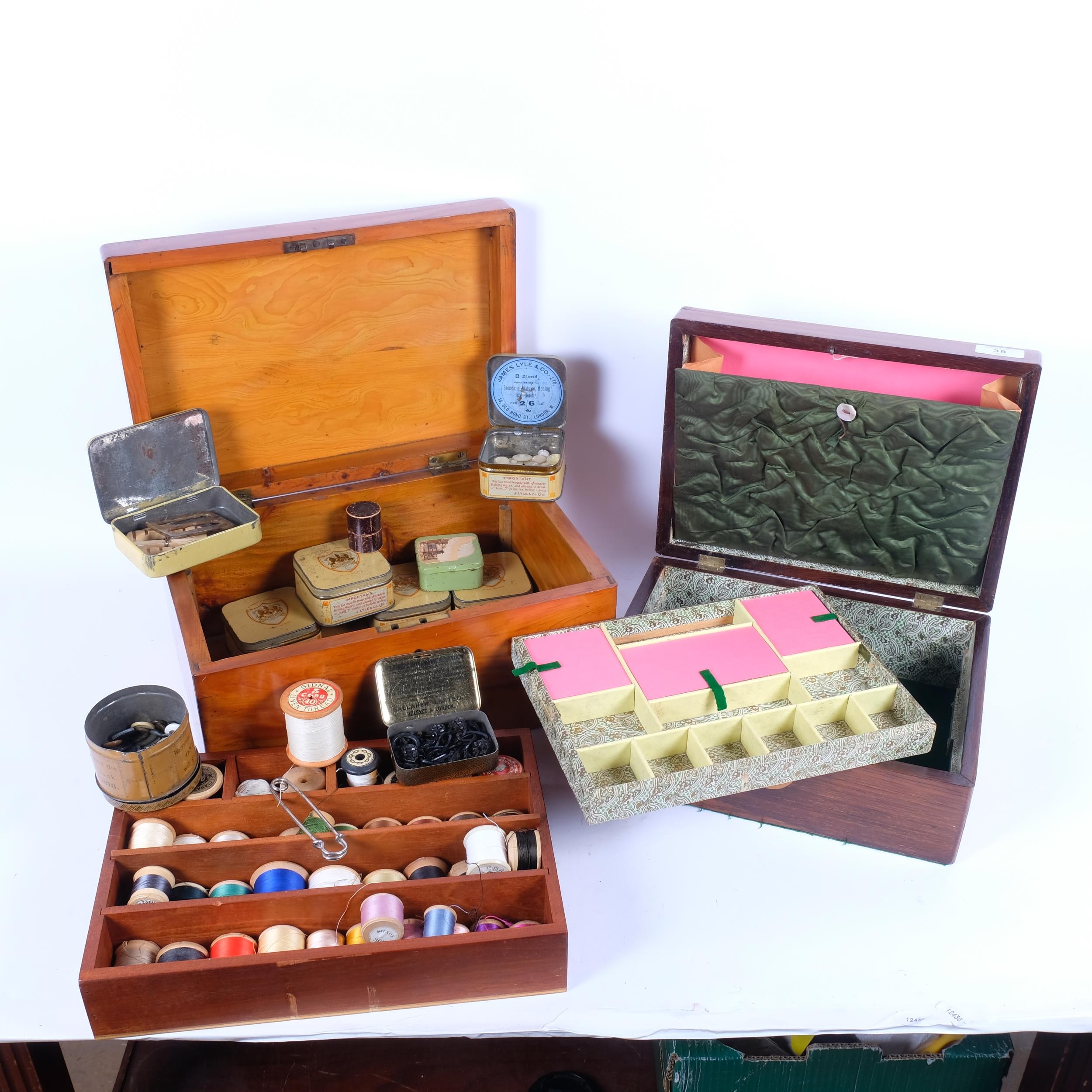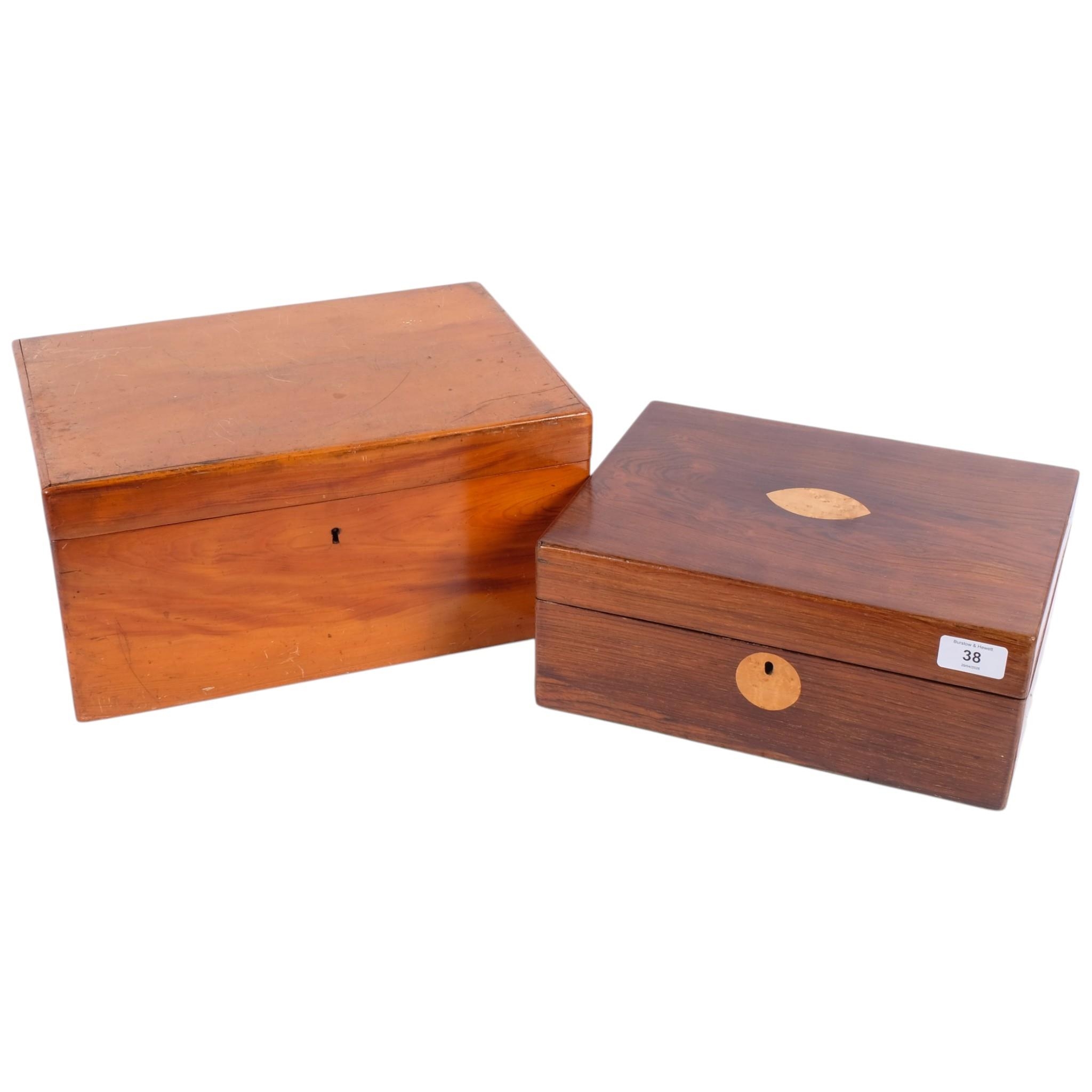 2 x 19th century sewing boxes, rosewood and walnut, largest W35cm (2)
