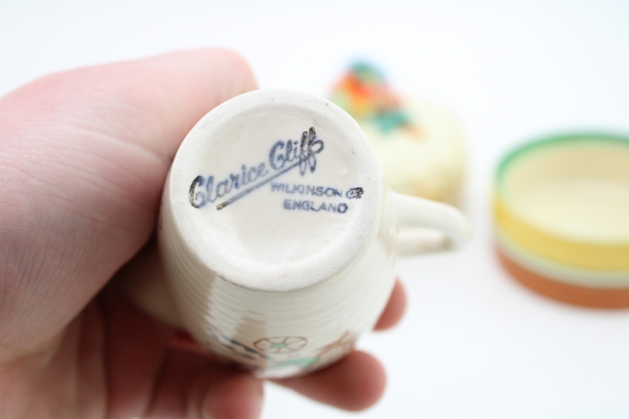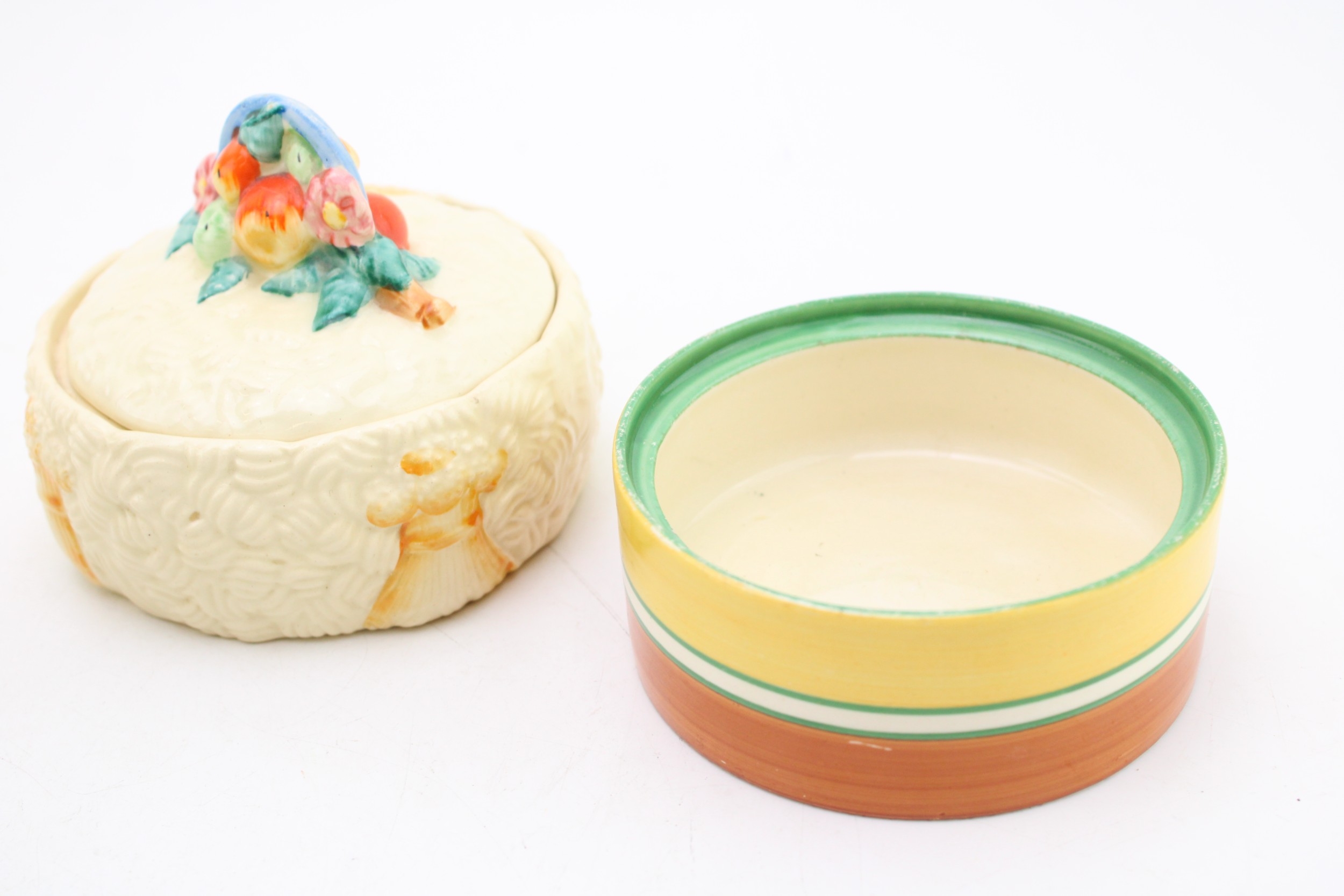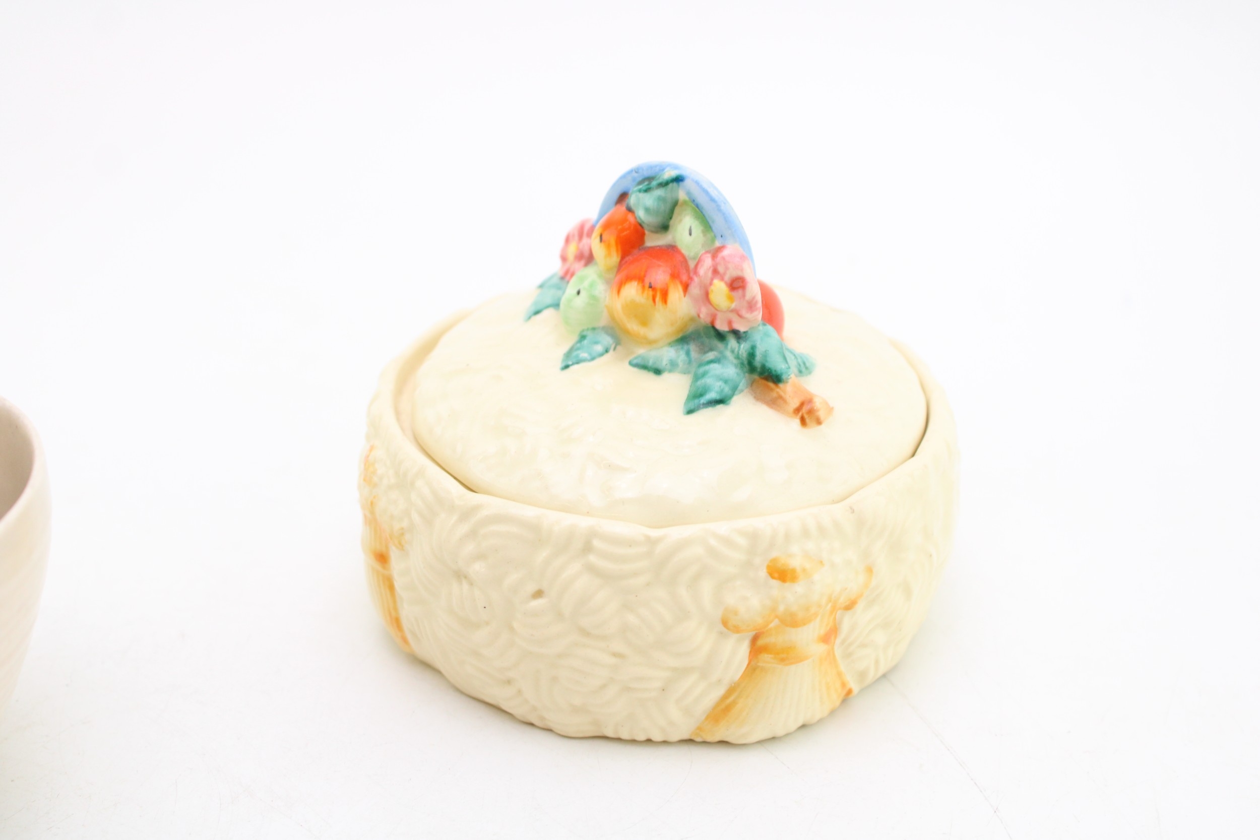 Clarice Cliff to include a Celtic Harvest lidded jar, a Crocus base with a Wilkinson milk and sugar bowl with a floral design (4).