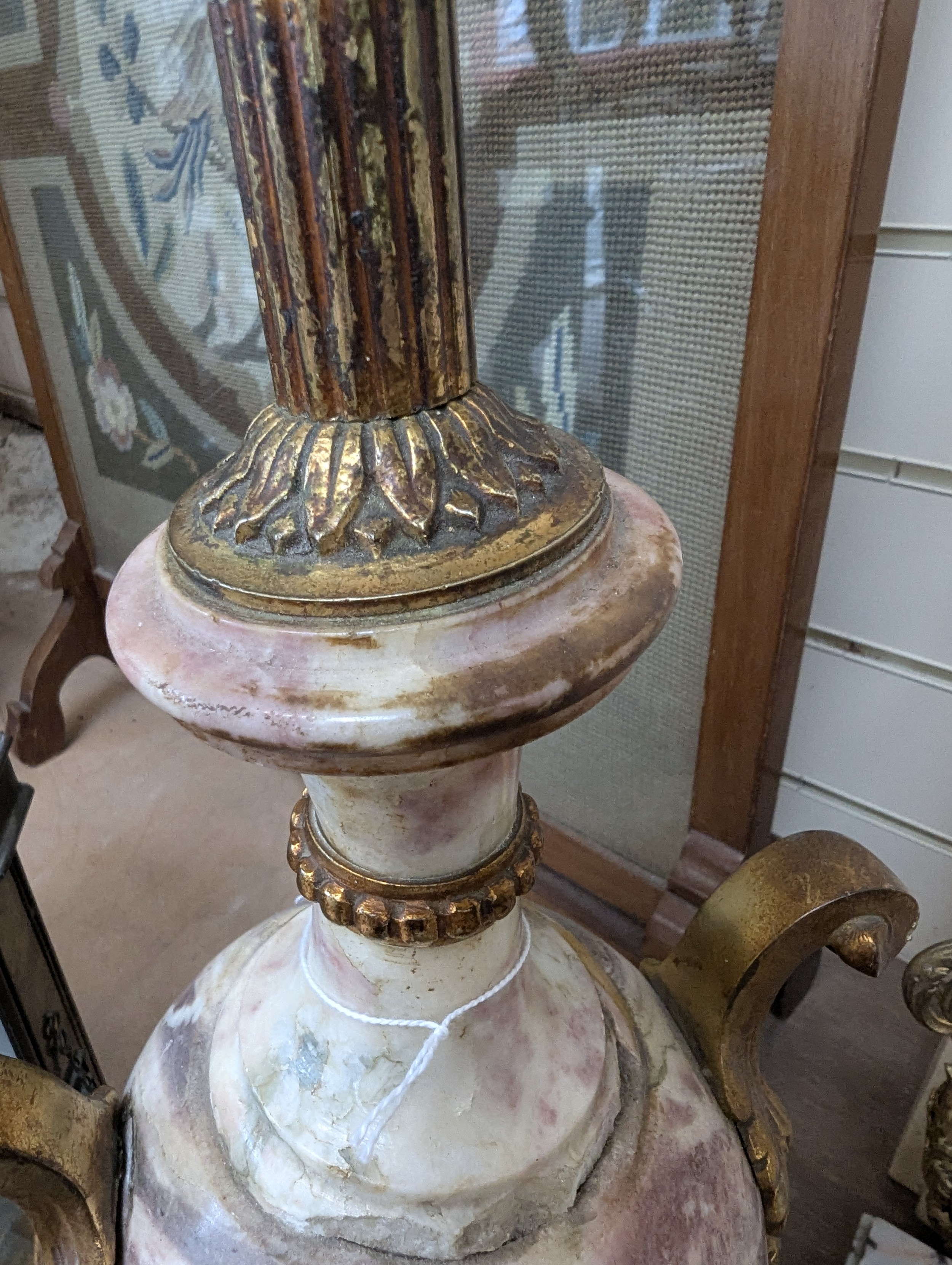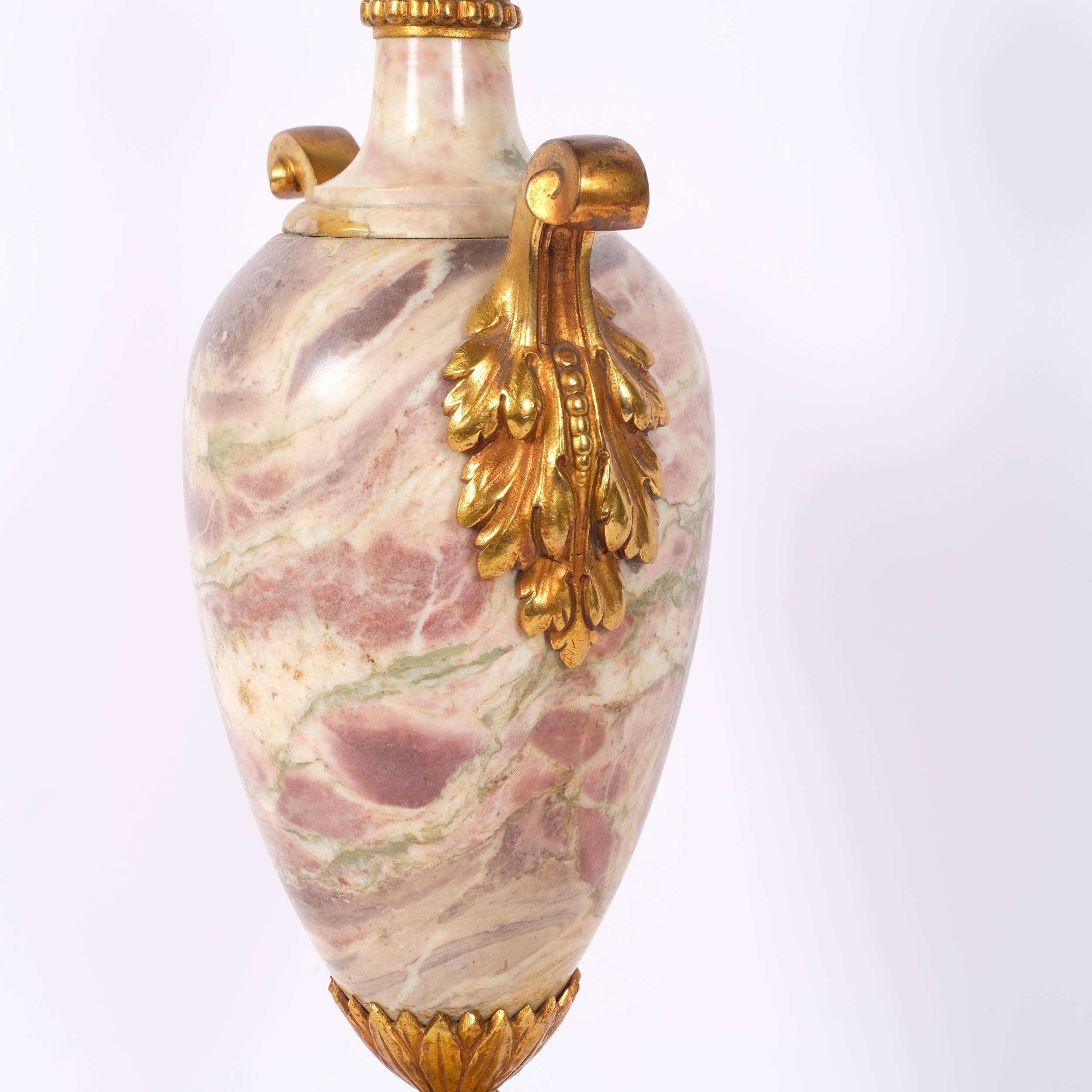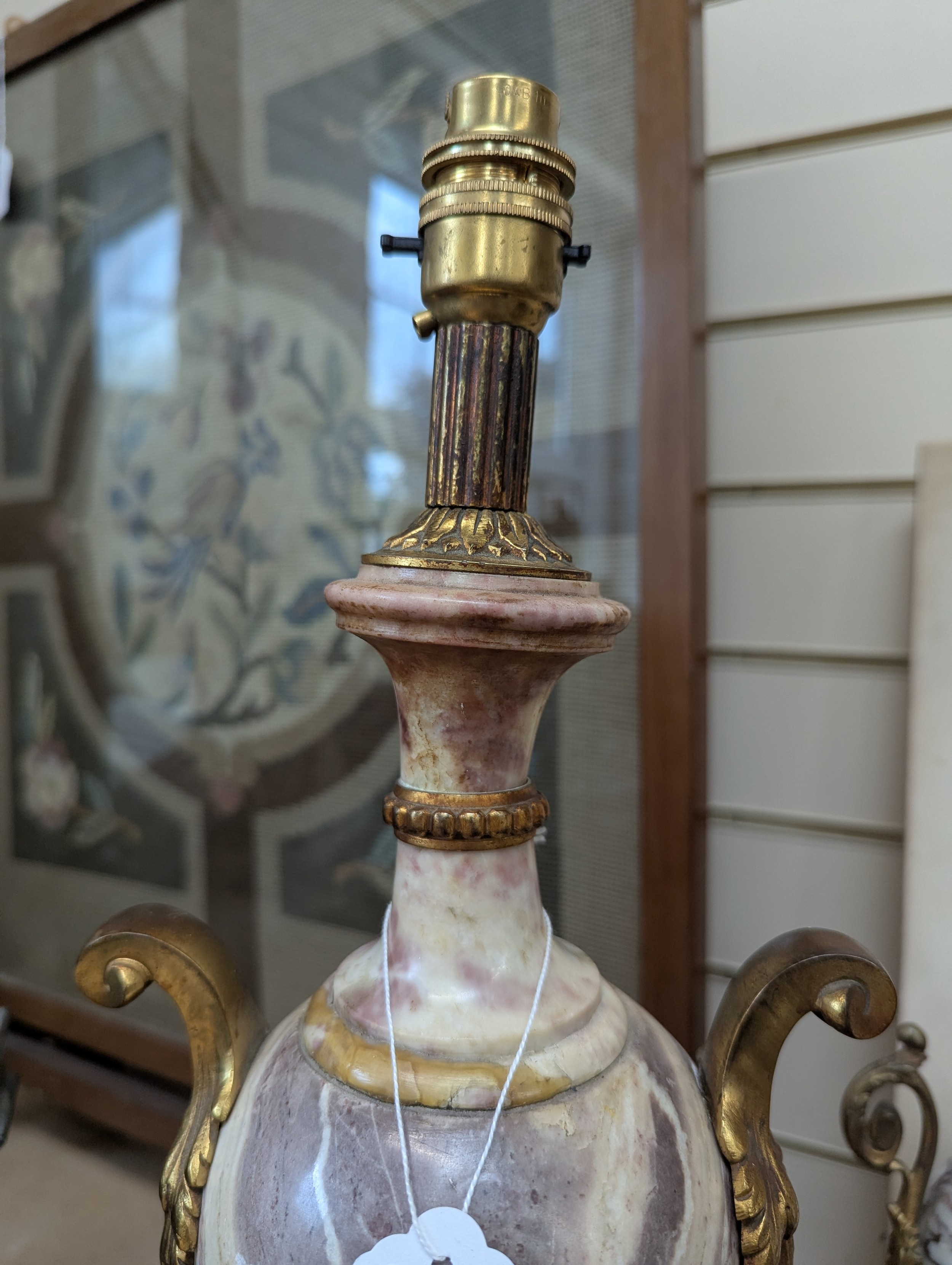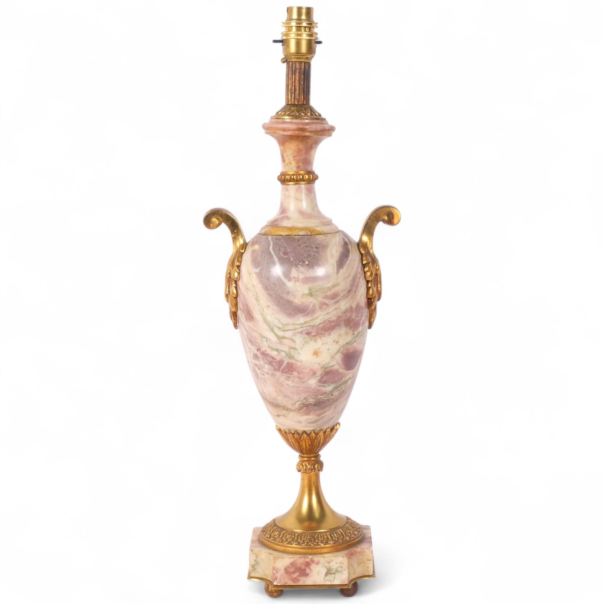 Empire style coloured marble table lamp, gilt-metal mounts on shaped marble base, height to top of bayonet fitting 54cm