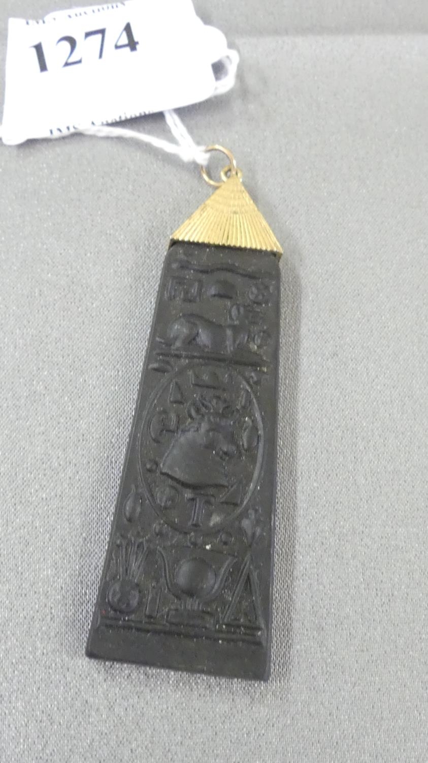 14k Gold Wedgewood Black Jasper Egyptian Obelisk Pendant