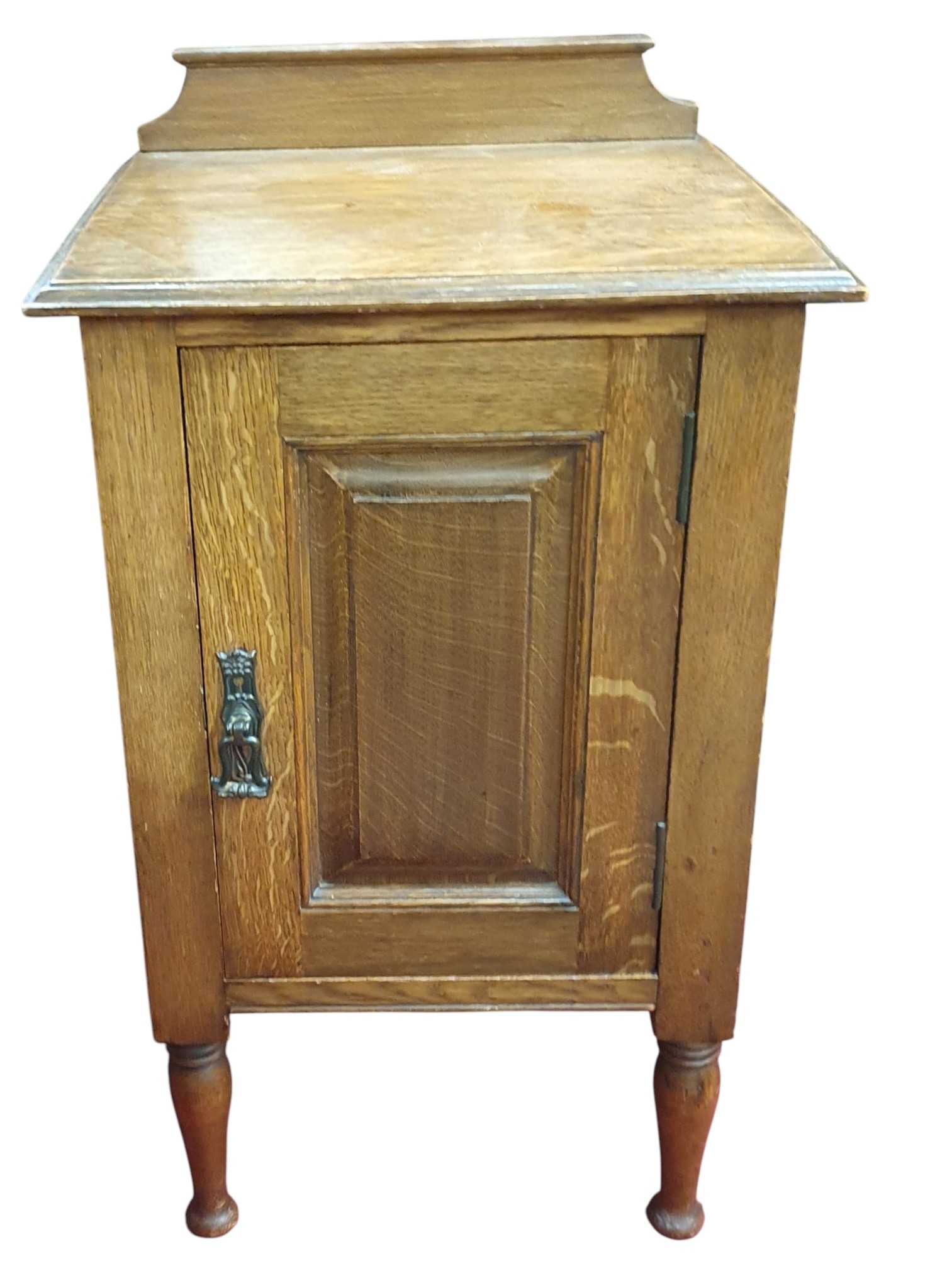 An early 20th Century Oak Side Cabinet with single door on turned supports. W 43 x D 38 x H 71 cm approx.