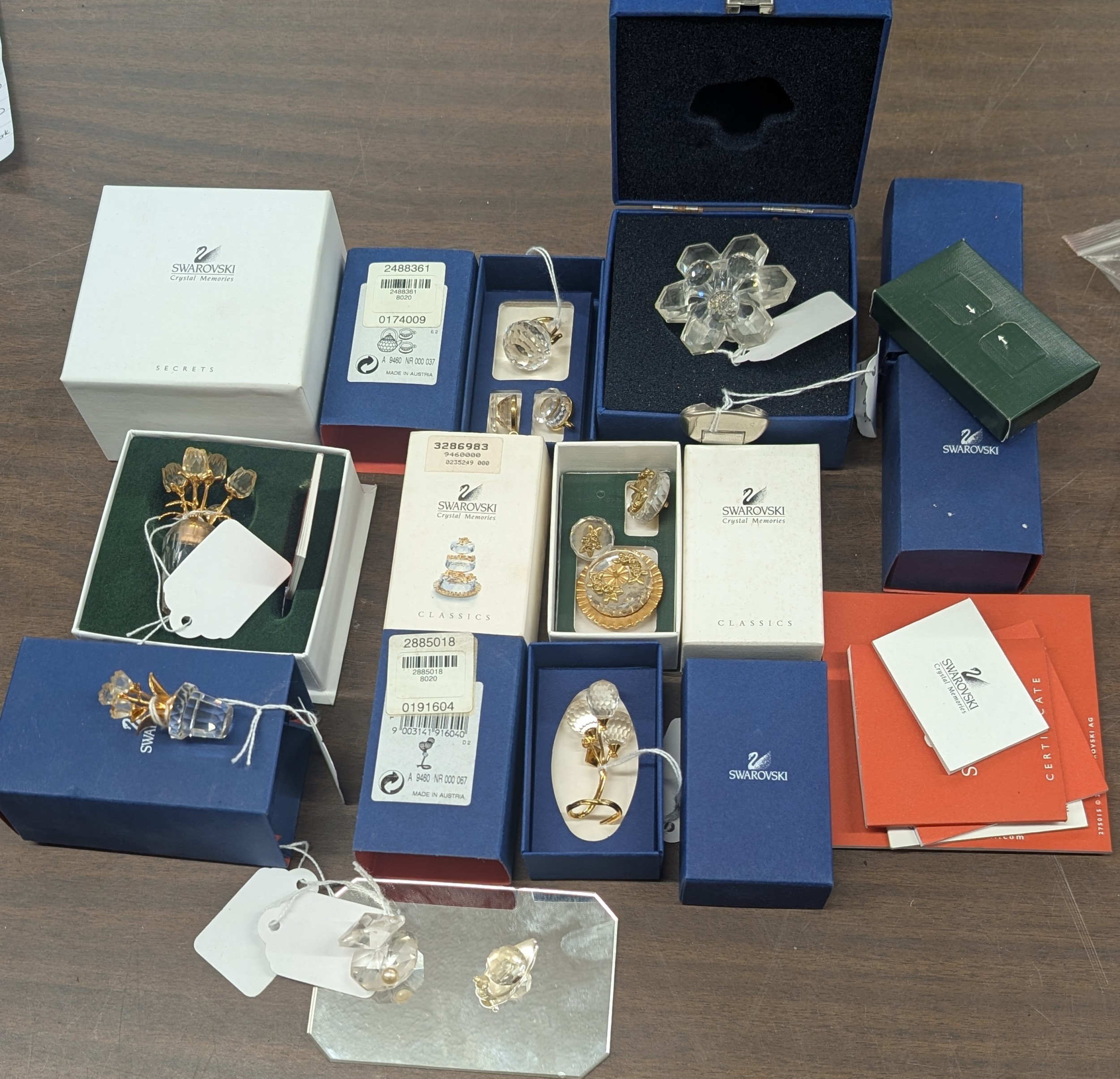 Collection of Swarovski Crystal Memories And Other Figurines, Some Empty Boxes & Certificates