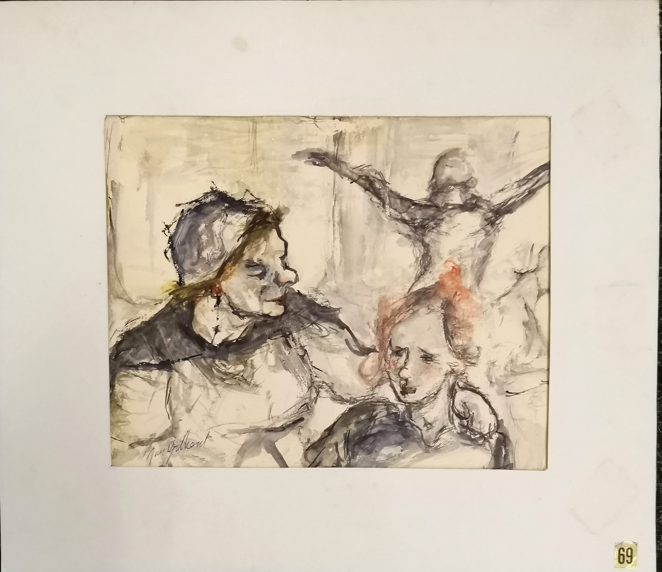 Jim Gilbert (1933-95) watercolour painting 'Comforting word' - mount 37.5cm x 32.5cm