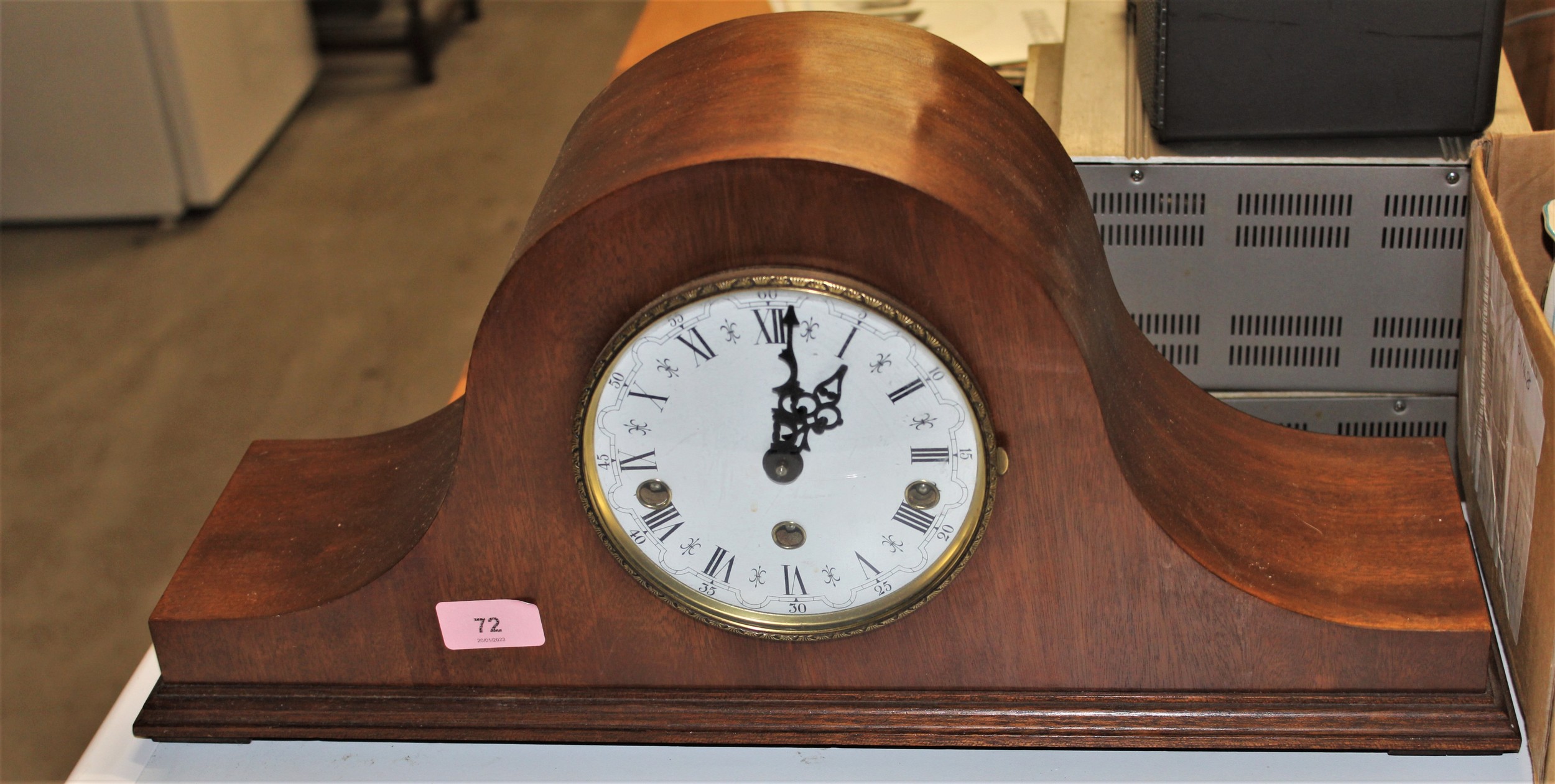 A Stuart Sykes Kendal Mahogany-Framed Mantle Clock (with Key)