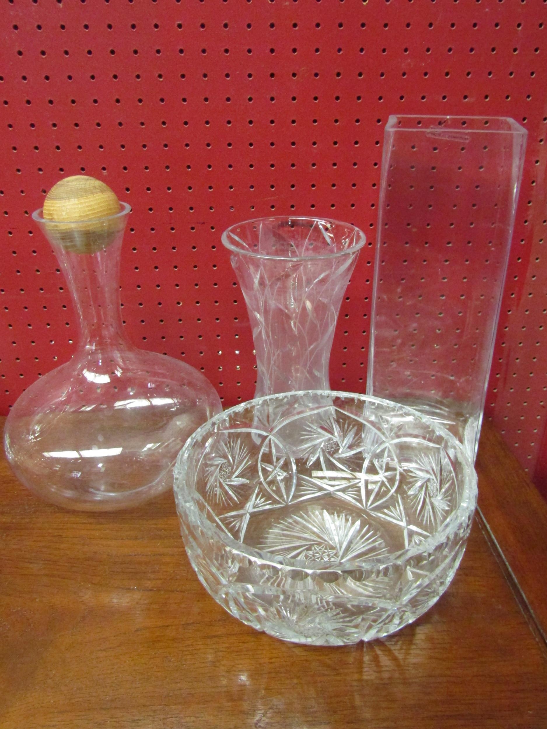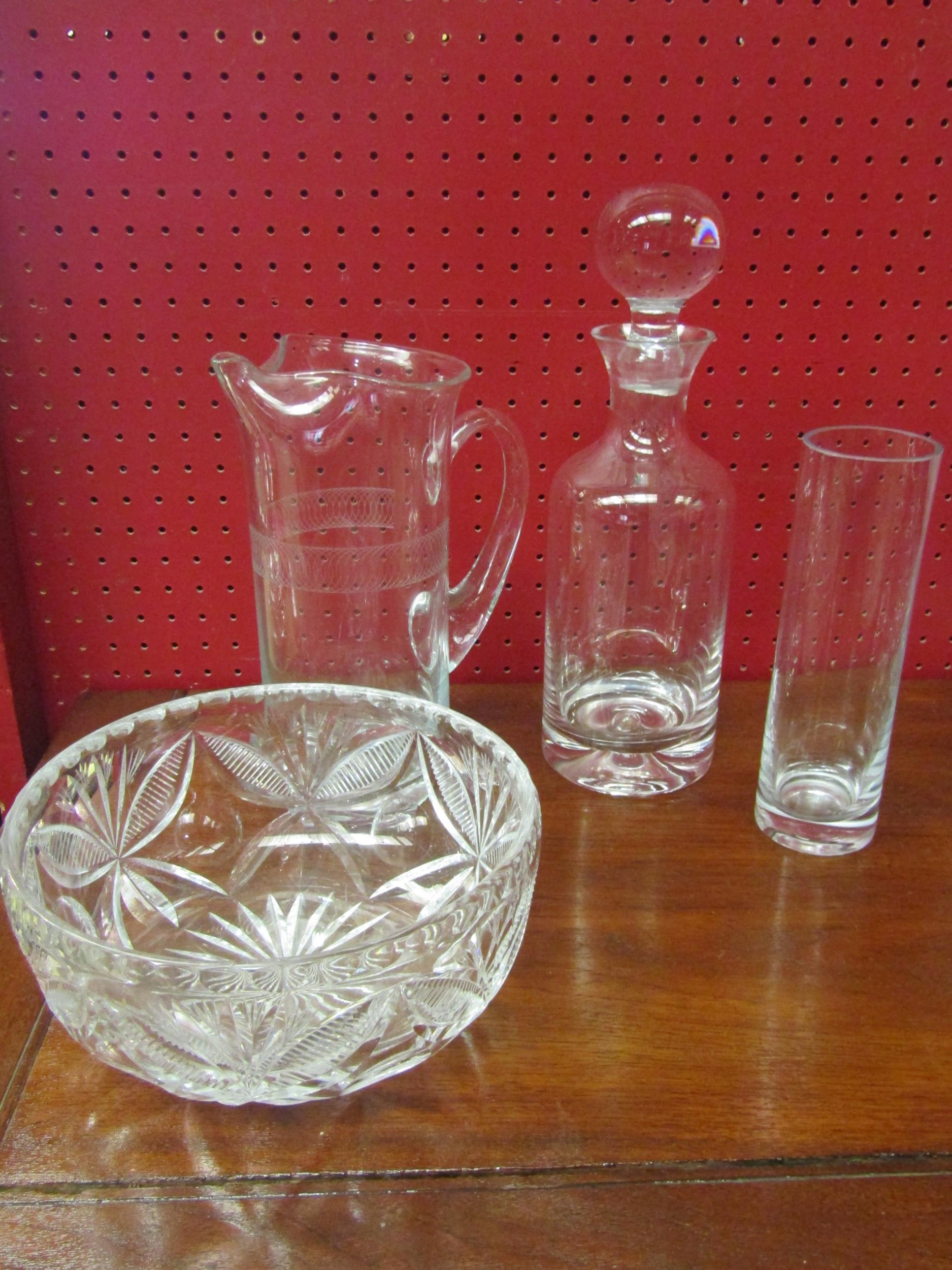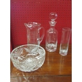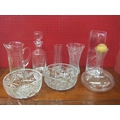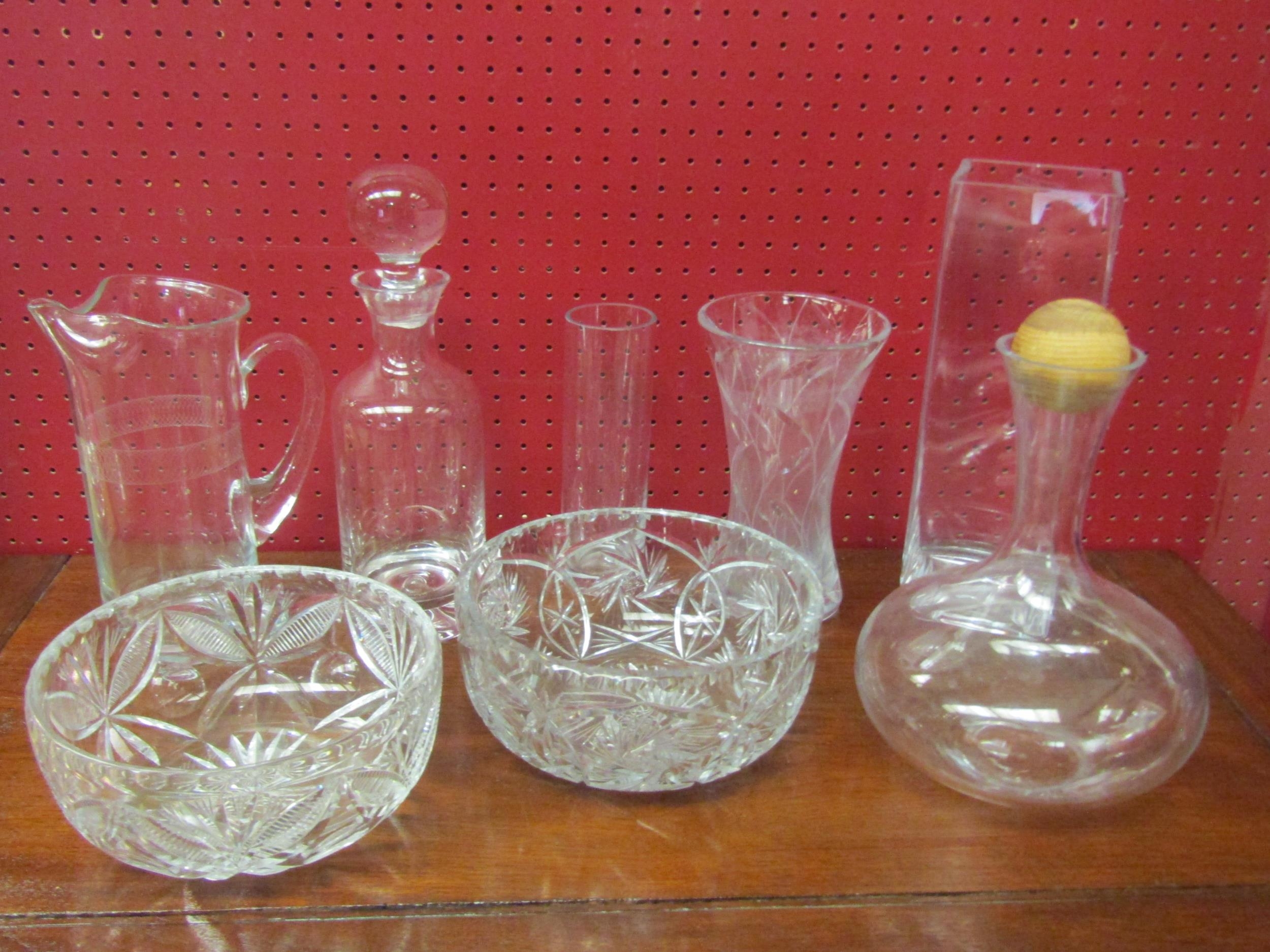 A selection of crystal glass including Dartington decanter, vases, carafe, bowls and water jug (8)