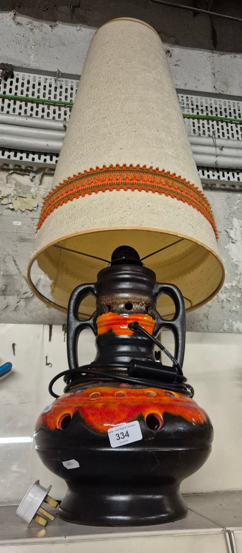 A West German style table lamp with tall conical shade