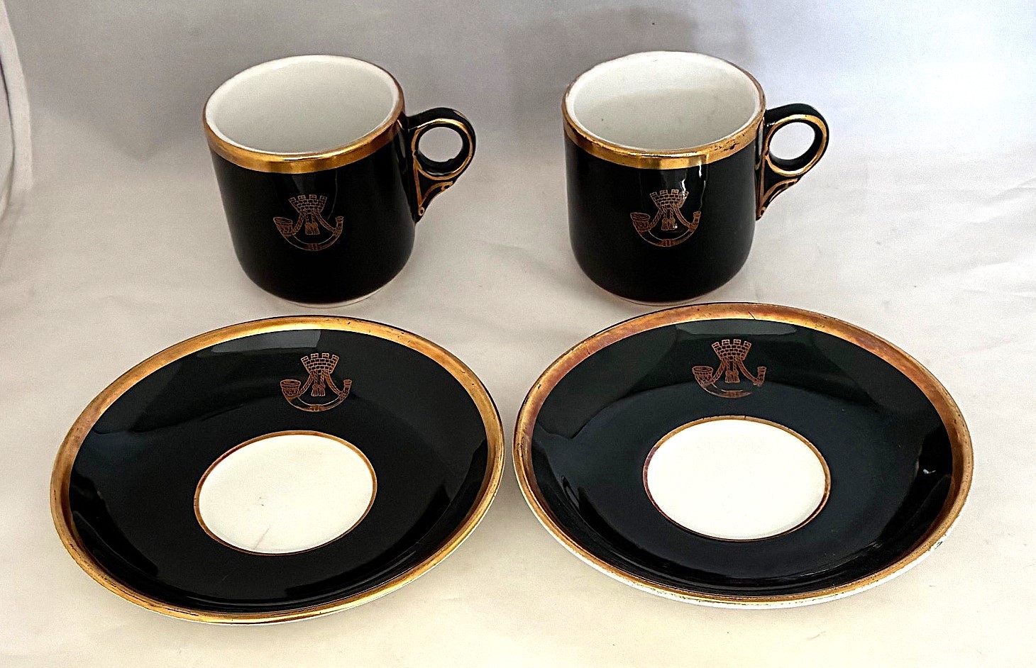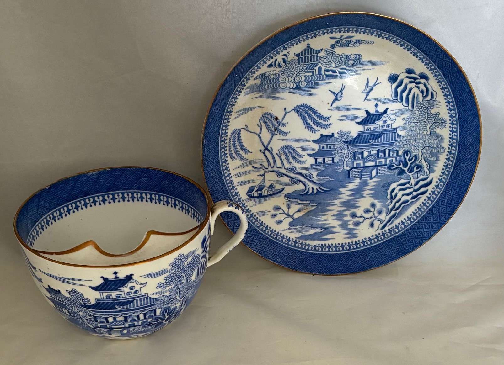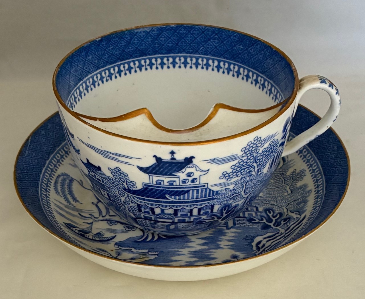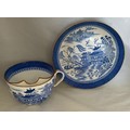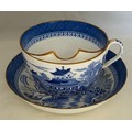 Willow pattern Moustache cup and saucer, pair of Military coffee cans and saucers and saucers (6).