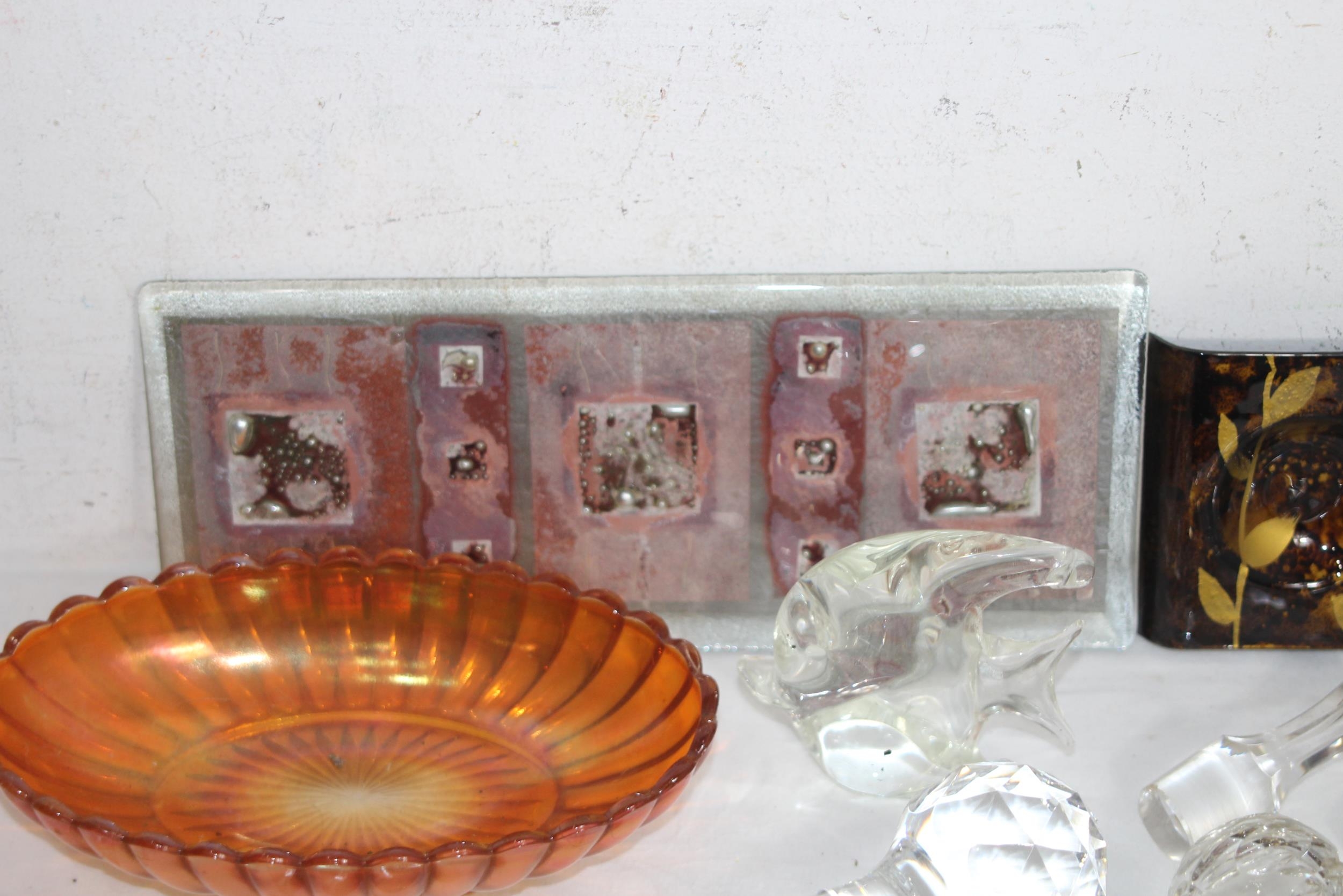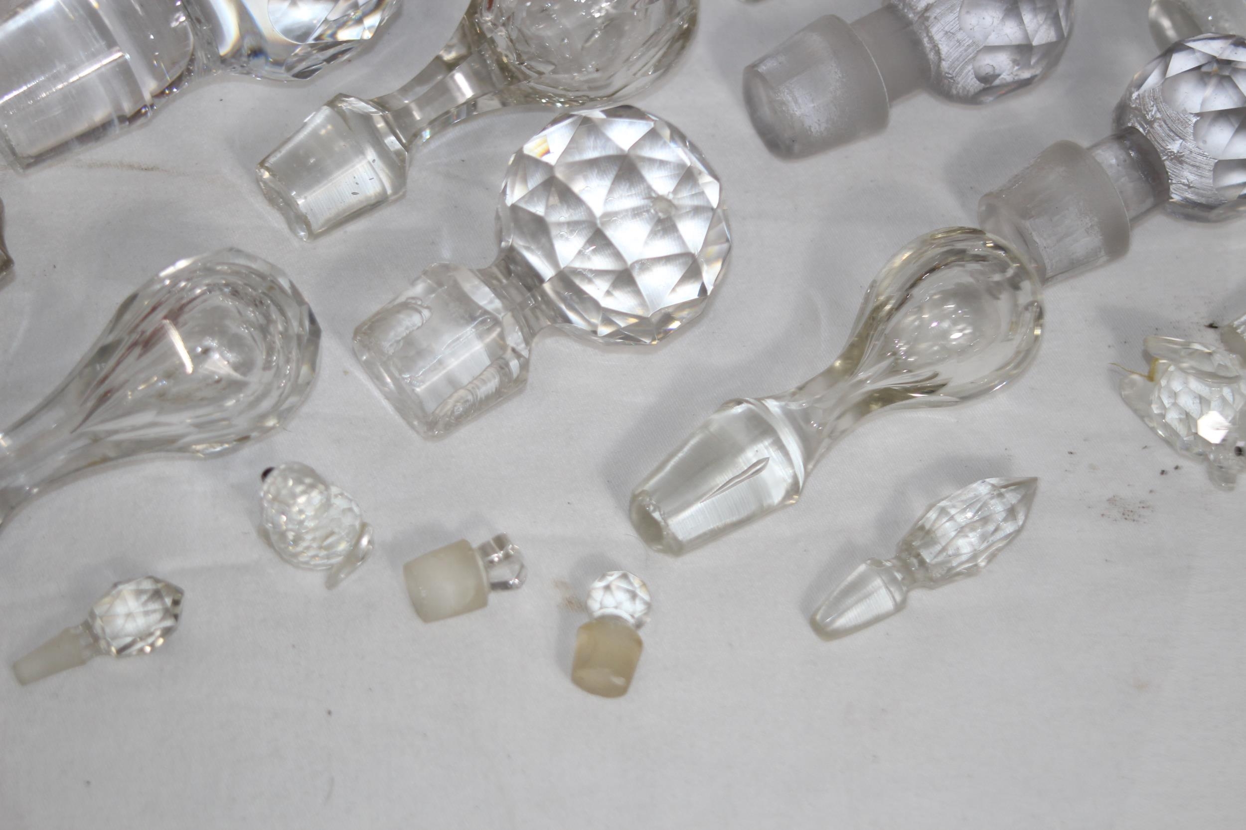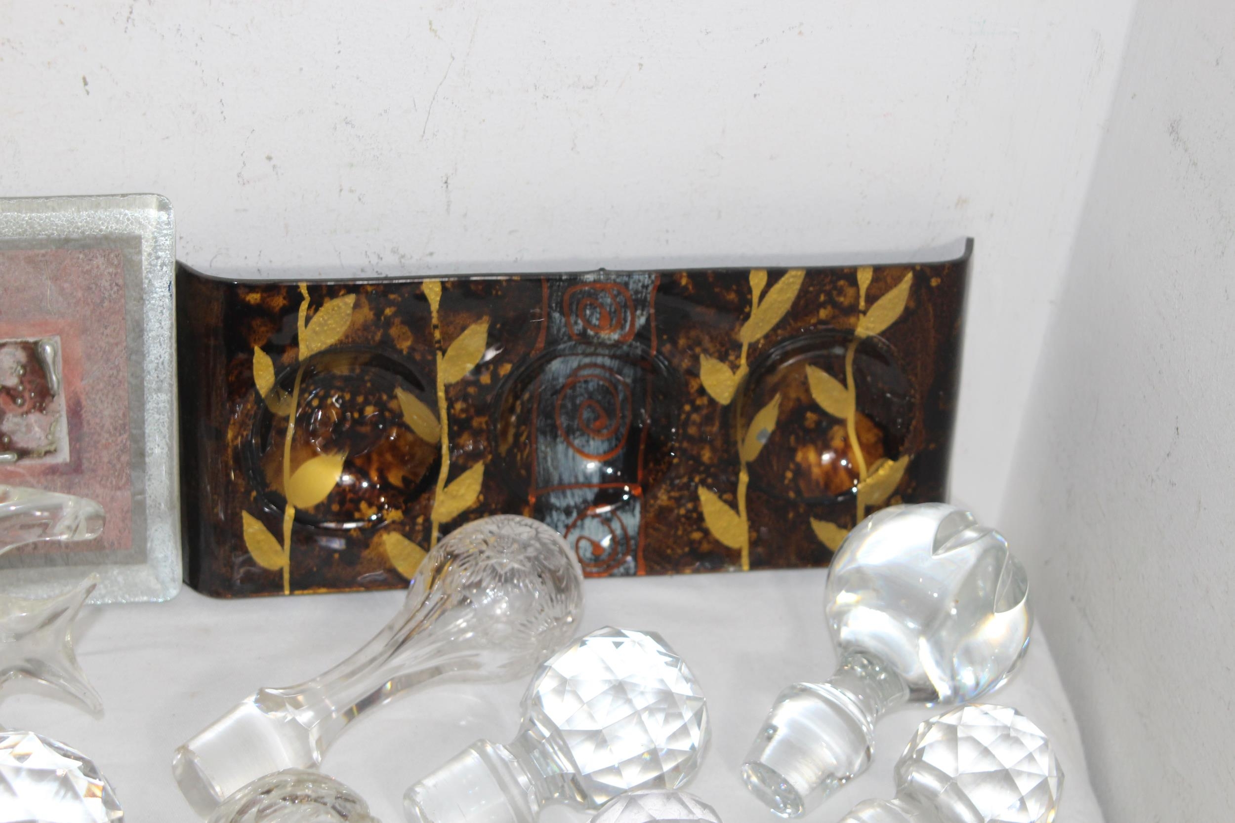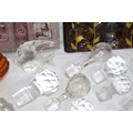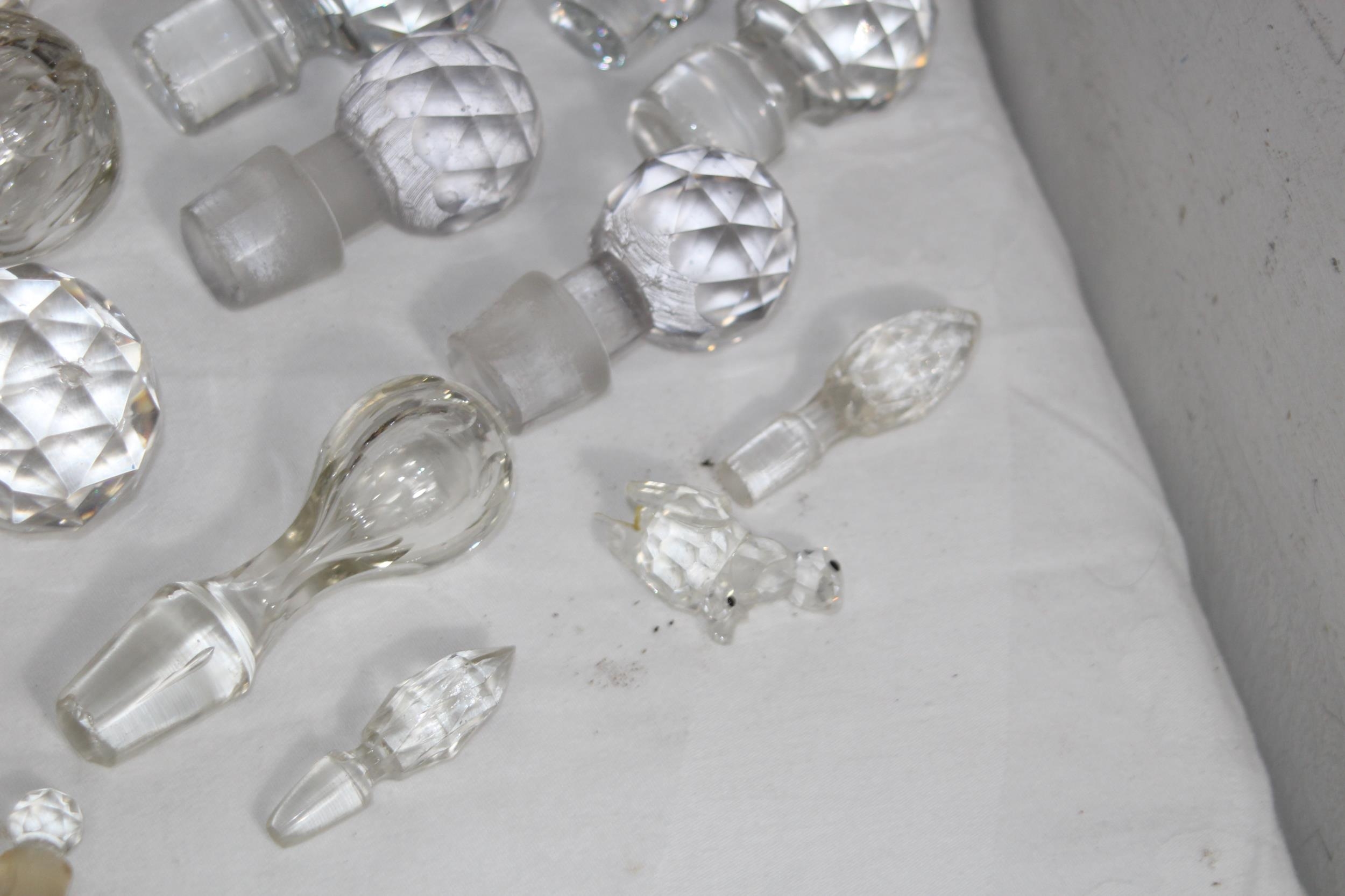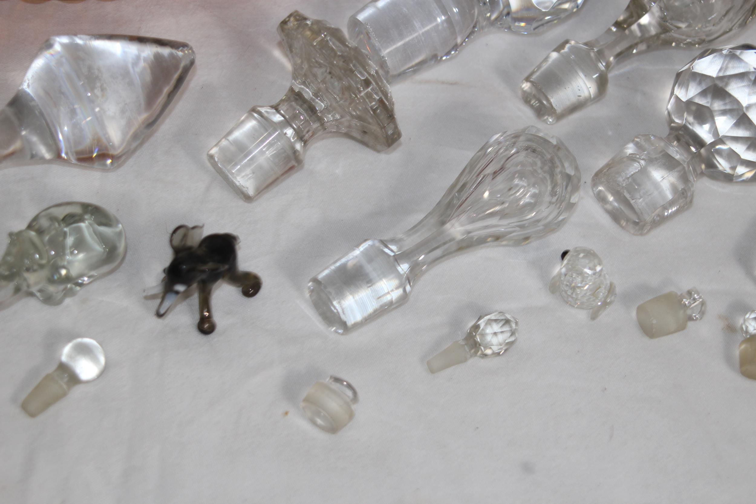 MIXTURE OF ART GLASS, GLASS ANIMALS AND A QTY OF GLASS STOPPERS IN VARIETY OF SIZES FOR DECANTERS & SCENTS