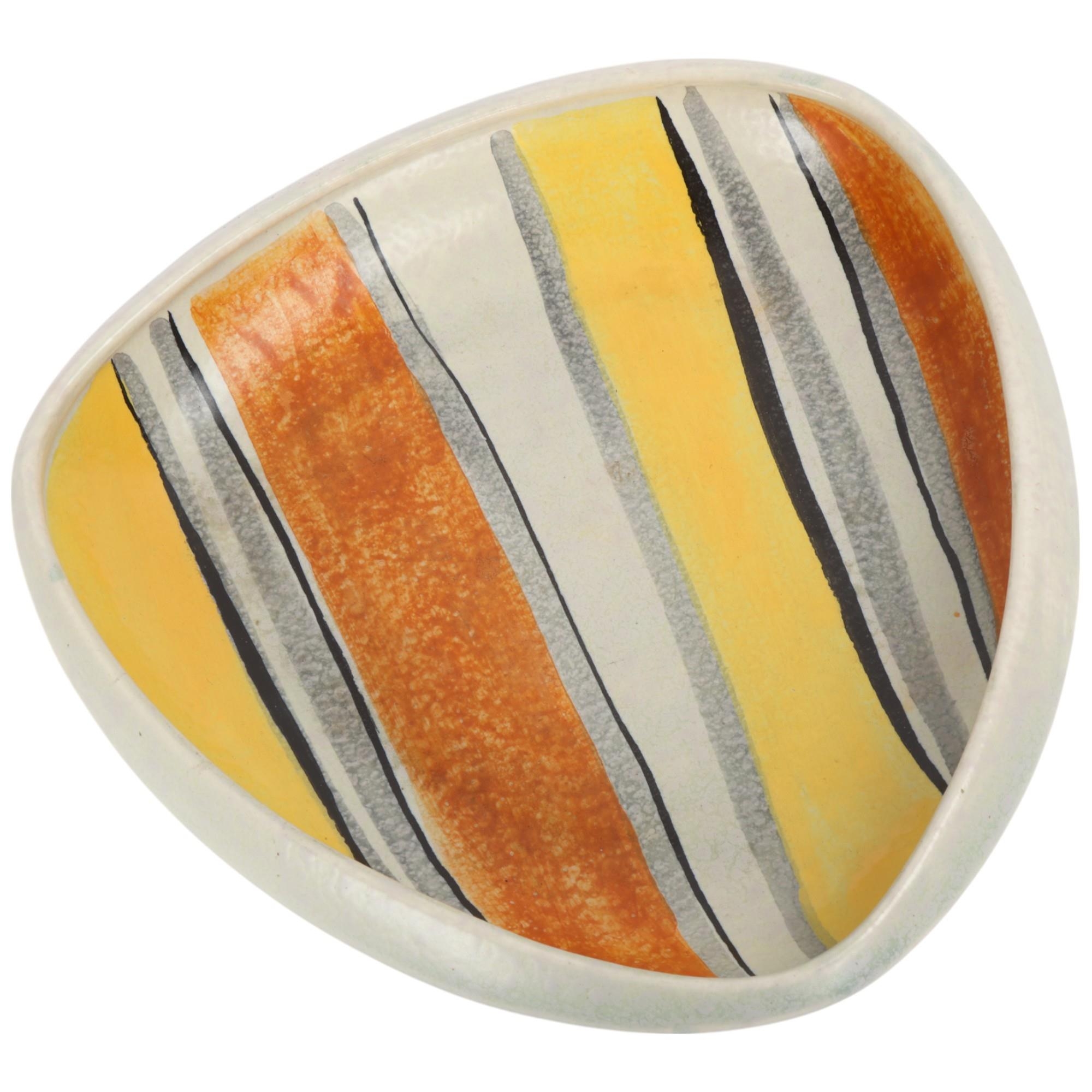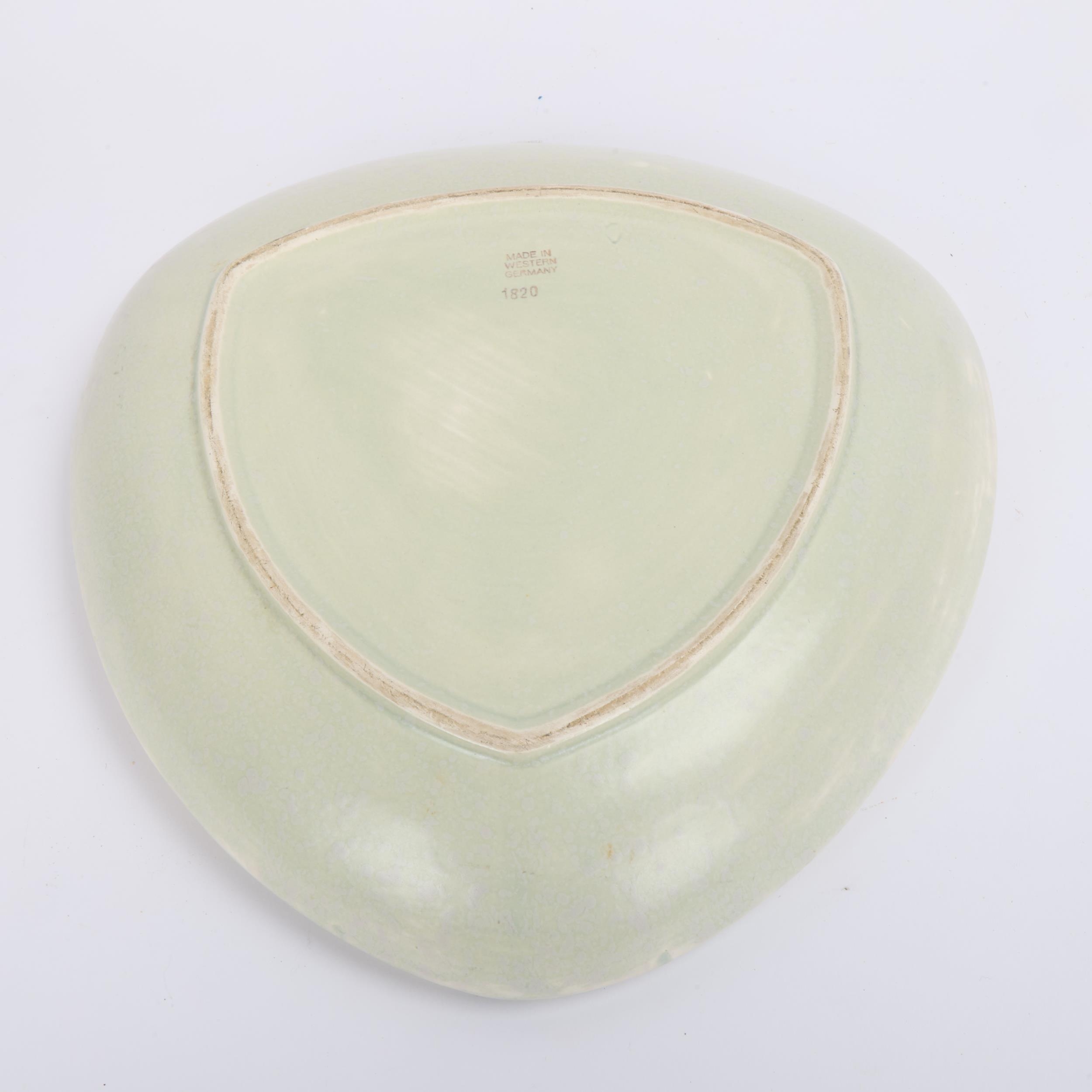A 1950s'/60's West German ceramic fruit bowl, triagular form, stamped to base "Made in West Germany" numbered 1820, makers stamp under glaze, length 29cm