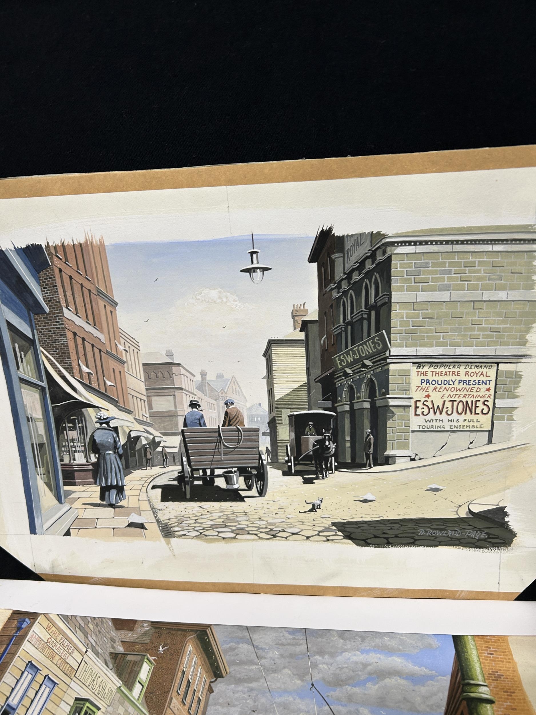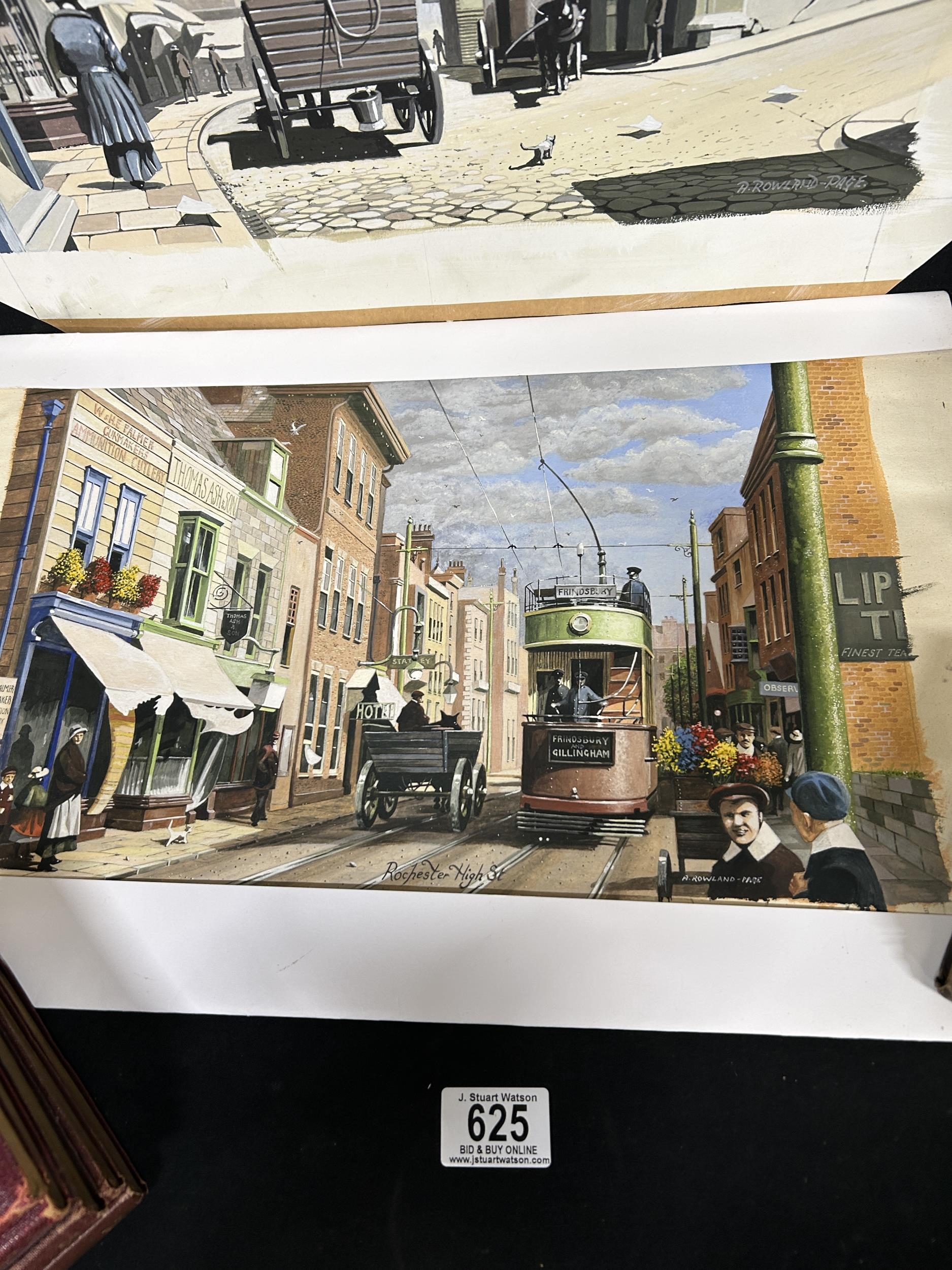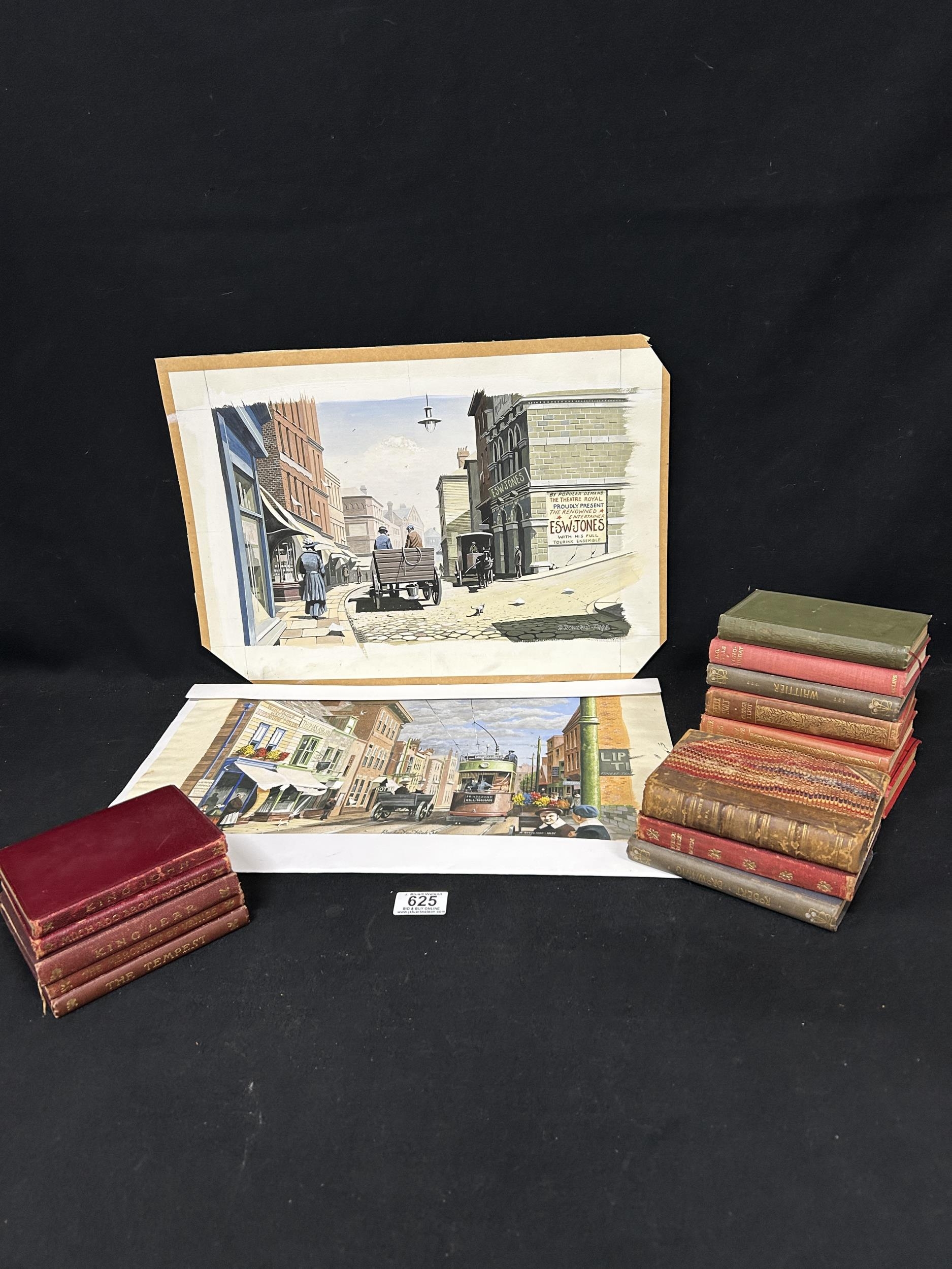 Two unframed Watercolours of Rochester signed A Rowland-Page plus collection of vintage Poetry & Shakespeare Books