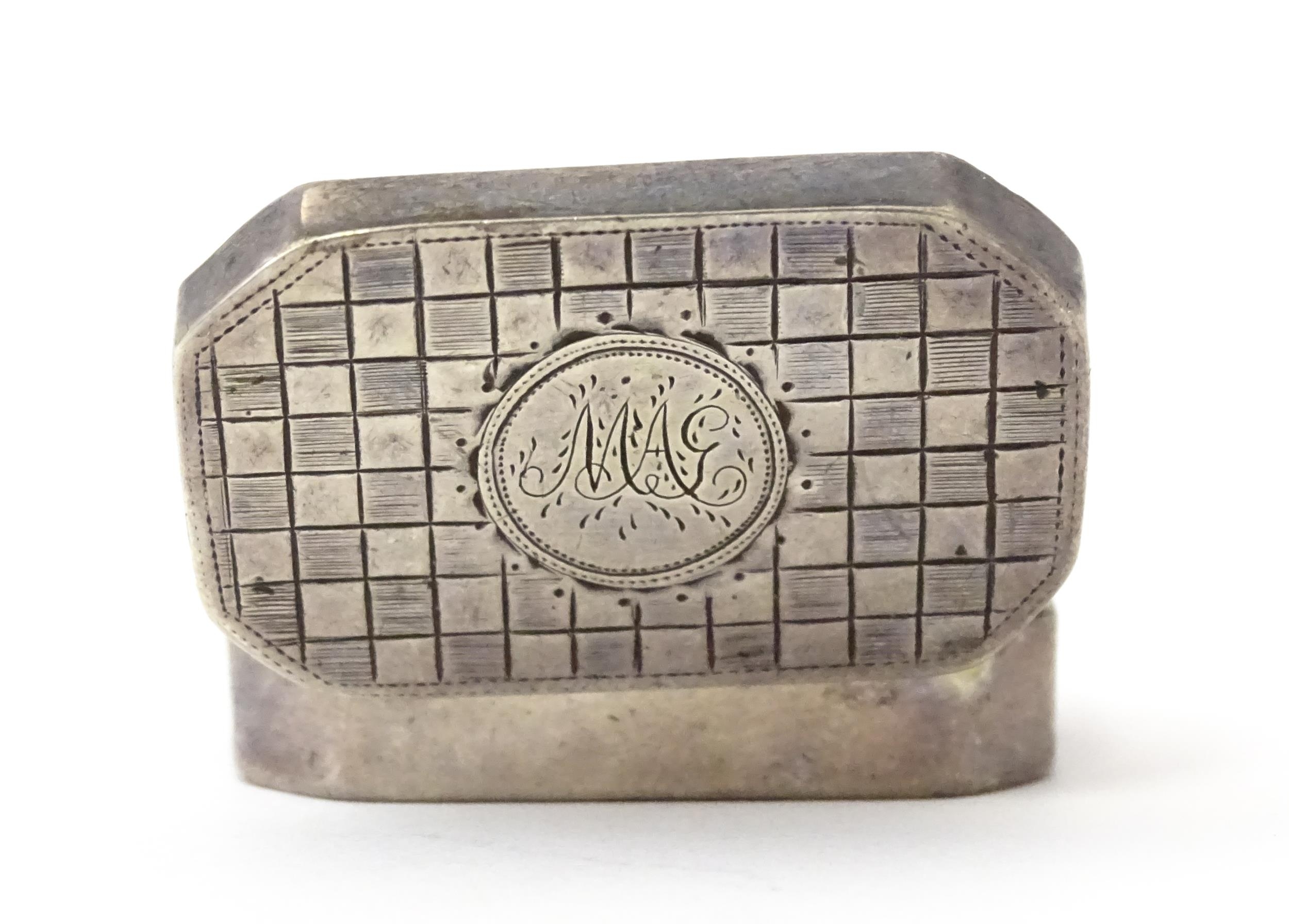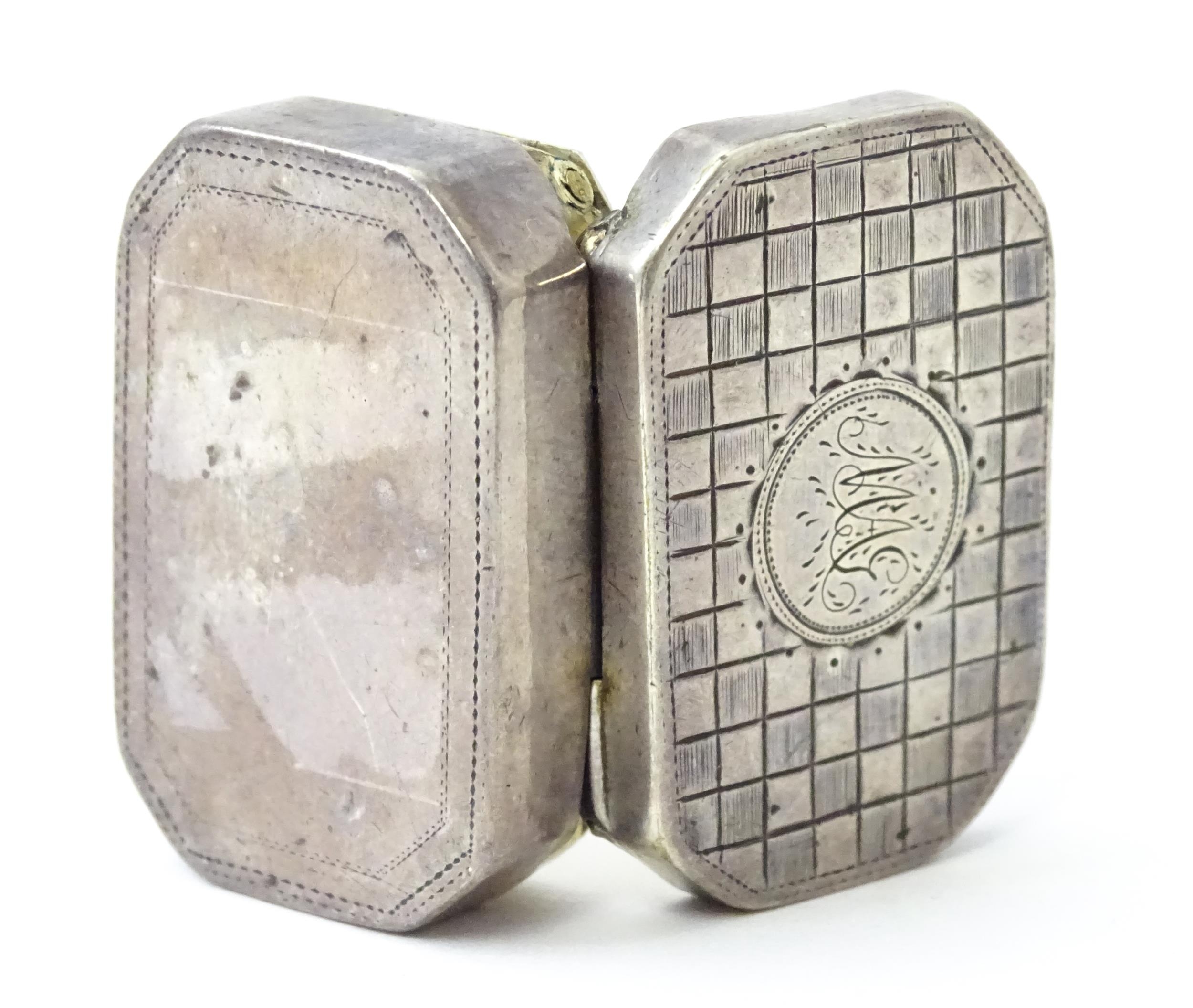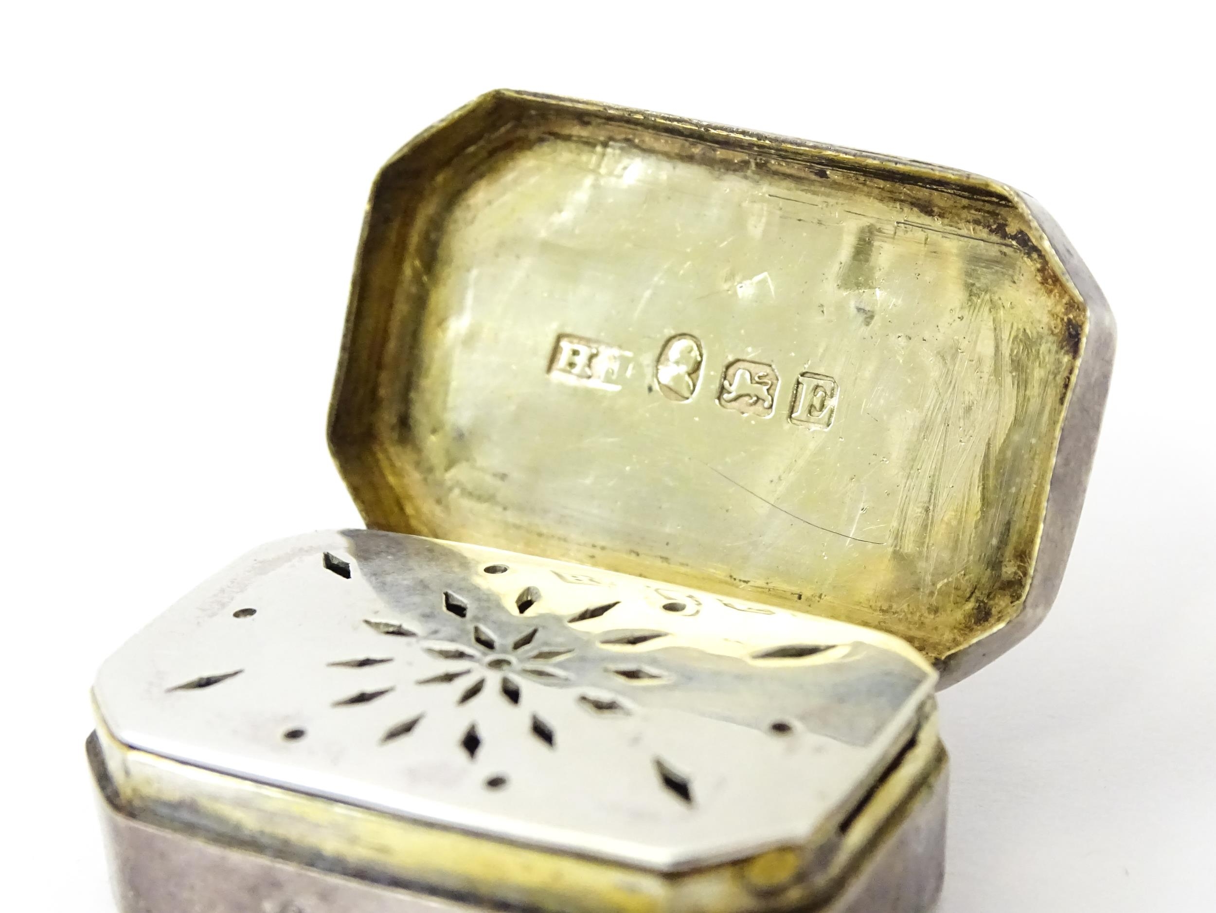 A George III silver vinaigrette with canted corners, hallmarked London 1800, maker TH. Approx. 1 1/4" wide
