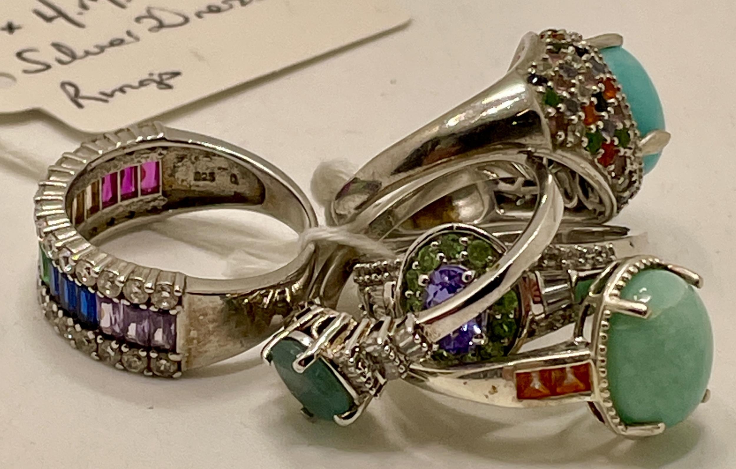 5 X H.M. 925 SILVER DECORATIVE DRESS RINGS
