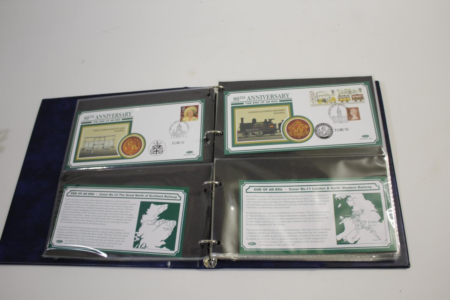 FIRST DAY COVERS - 6 ALBUMS including 80th Anniversary The End Of An Era (Railways), James Bond, Working Dogs, Lancaster and York, Grace Darling, 100 Years of the Territorial Army, 40th Anniversary of Concorde, The Tudors, Charles Darwin, Machin Definitives, Cathedrals, Britains Heroes, Air Displays, R.A.F Uniforms, Lest We Forget, British Design Classics, and many more some with coin covers.