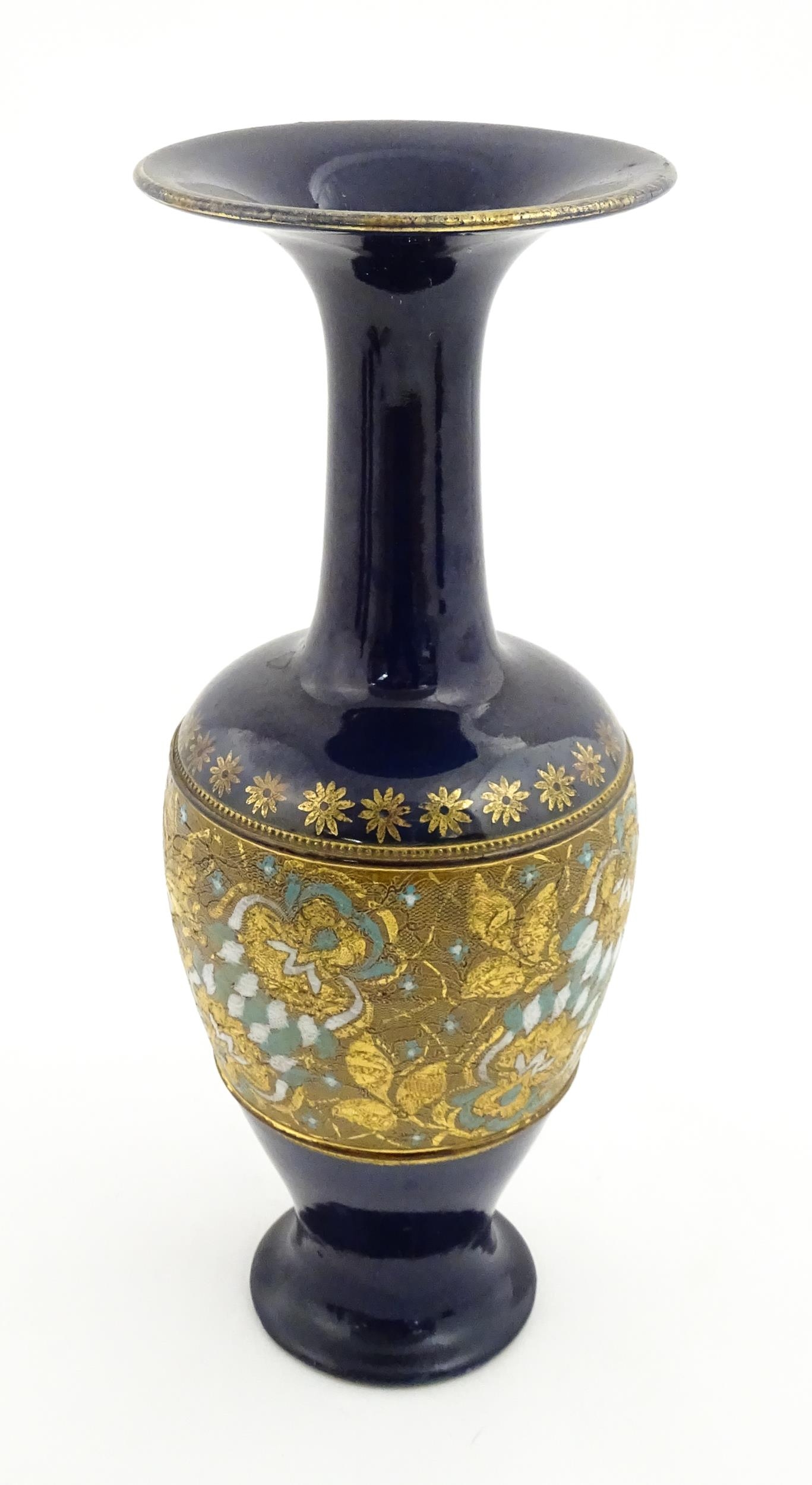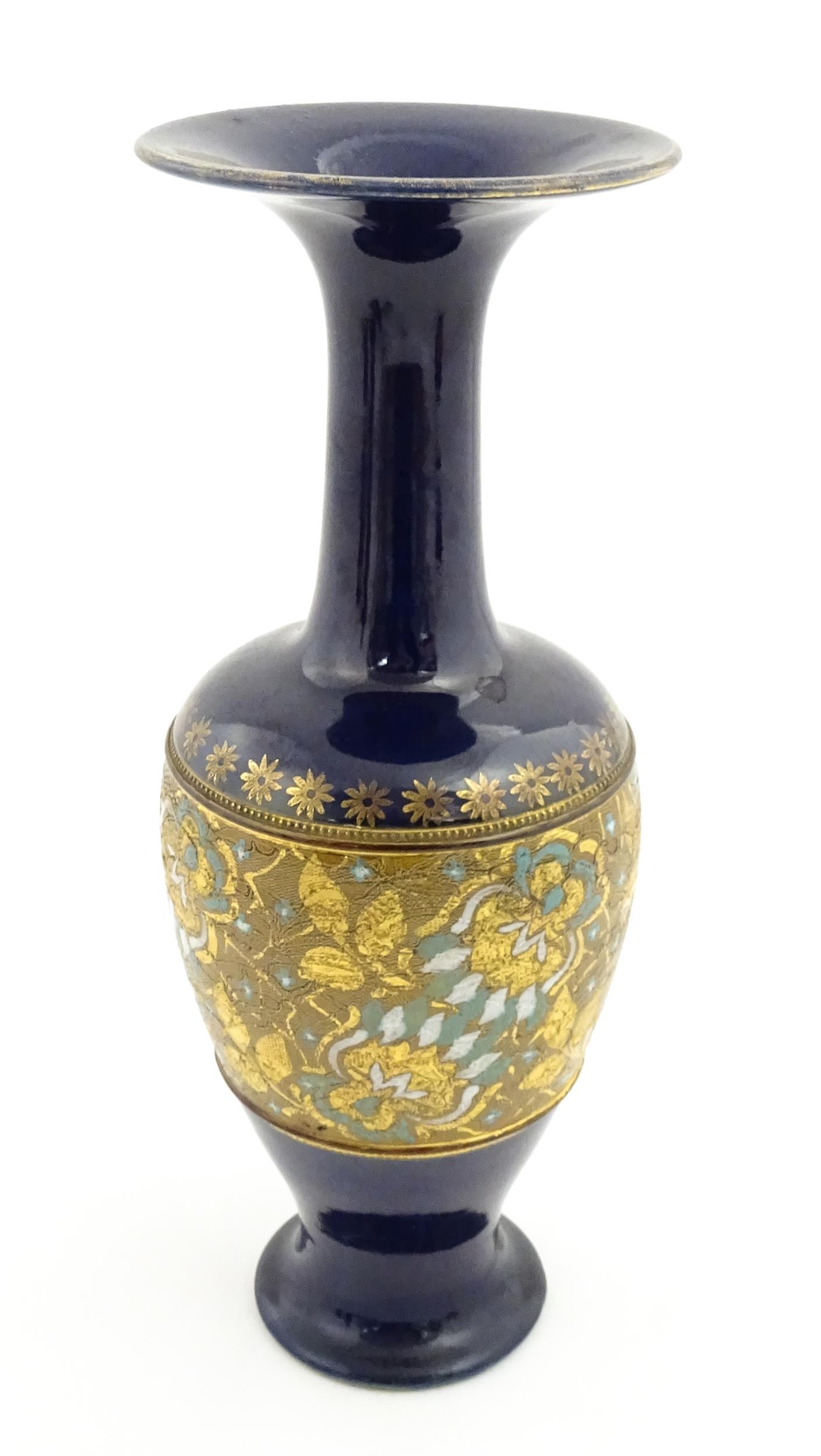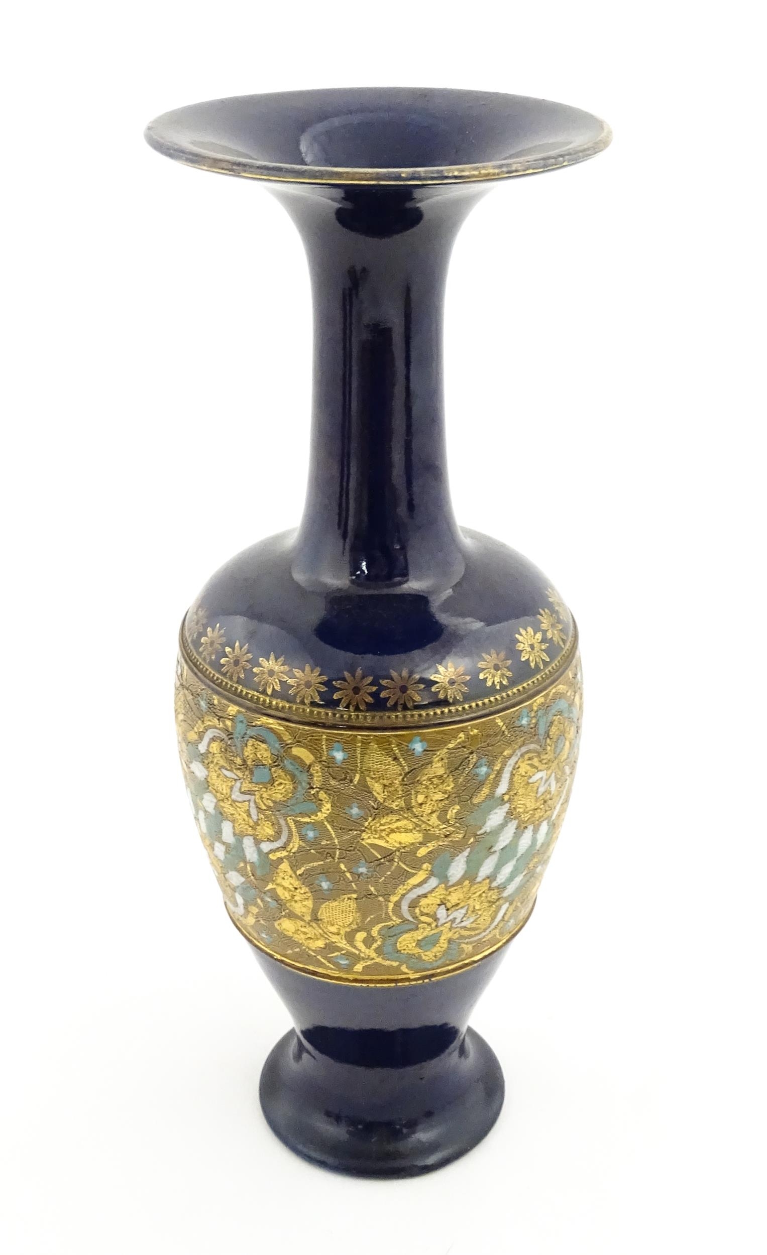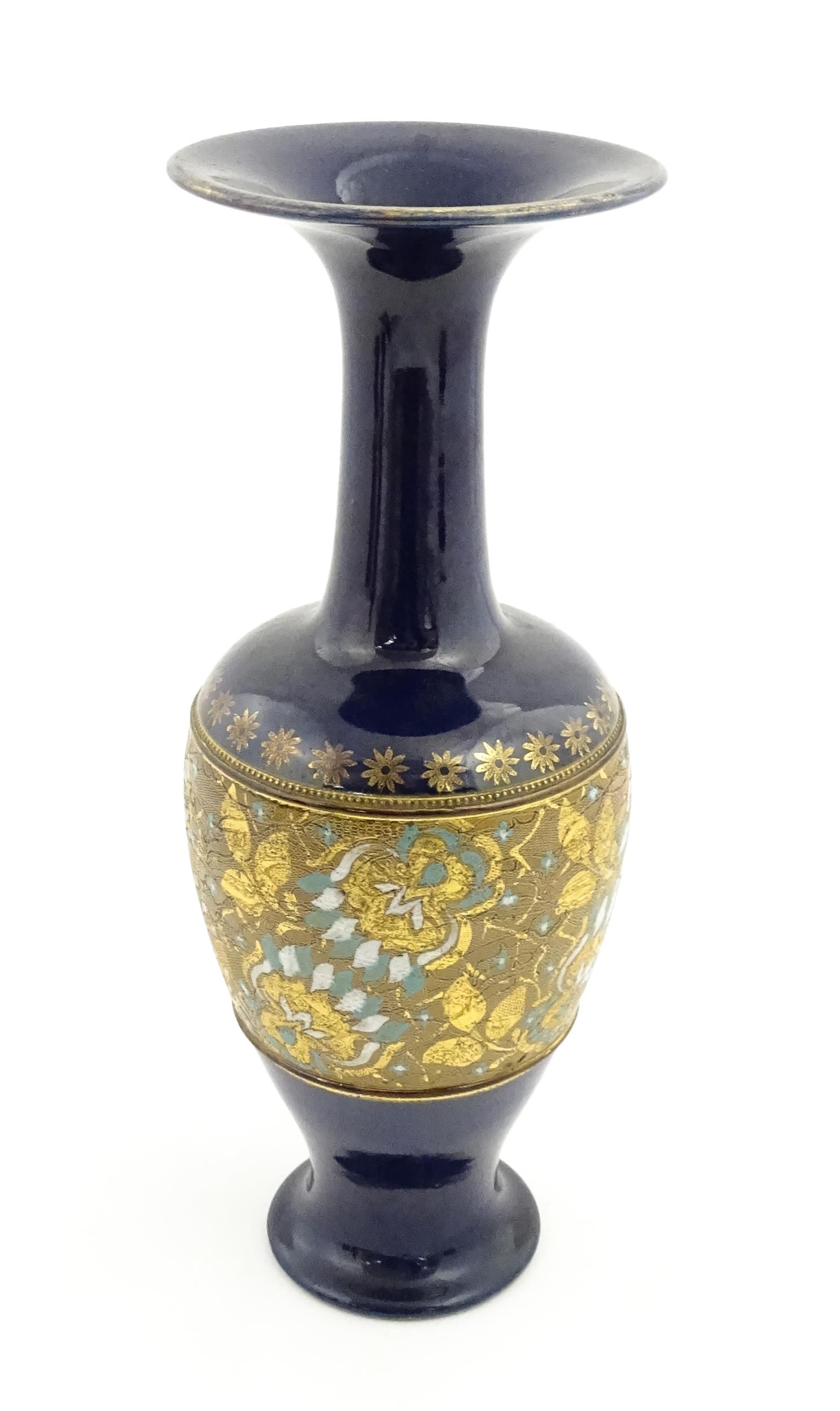 A Royal Doulton vase with flared rim decorated with banded floral and foliate decoration. Marked under and numbered 7009. Approx. 13 1/2" high