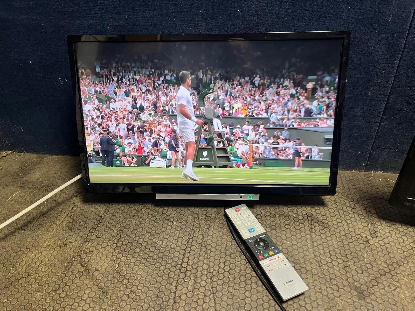 A TOSHIBA 24W38630D 24in SMART TV with remote and wall bracket fitted (no stand) and a Toshiba 24W3753DB with remote but no stand (both PAT pass and working) (4)