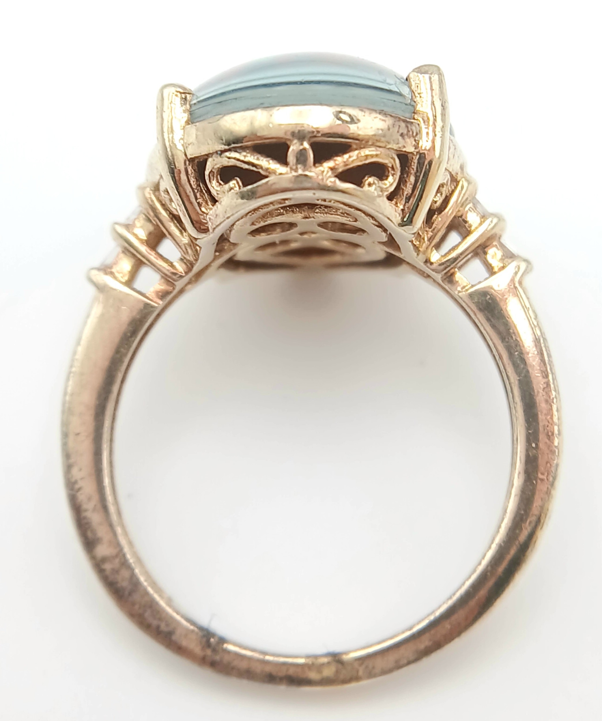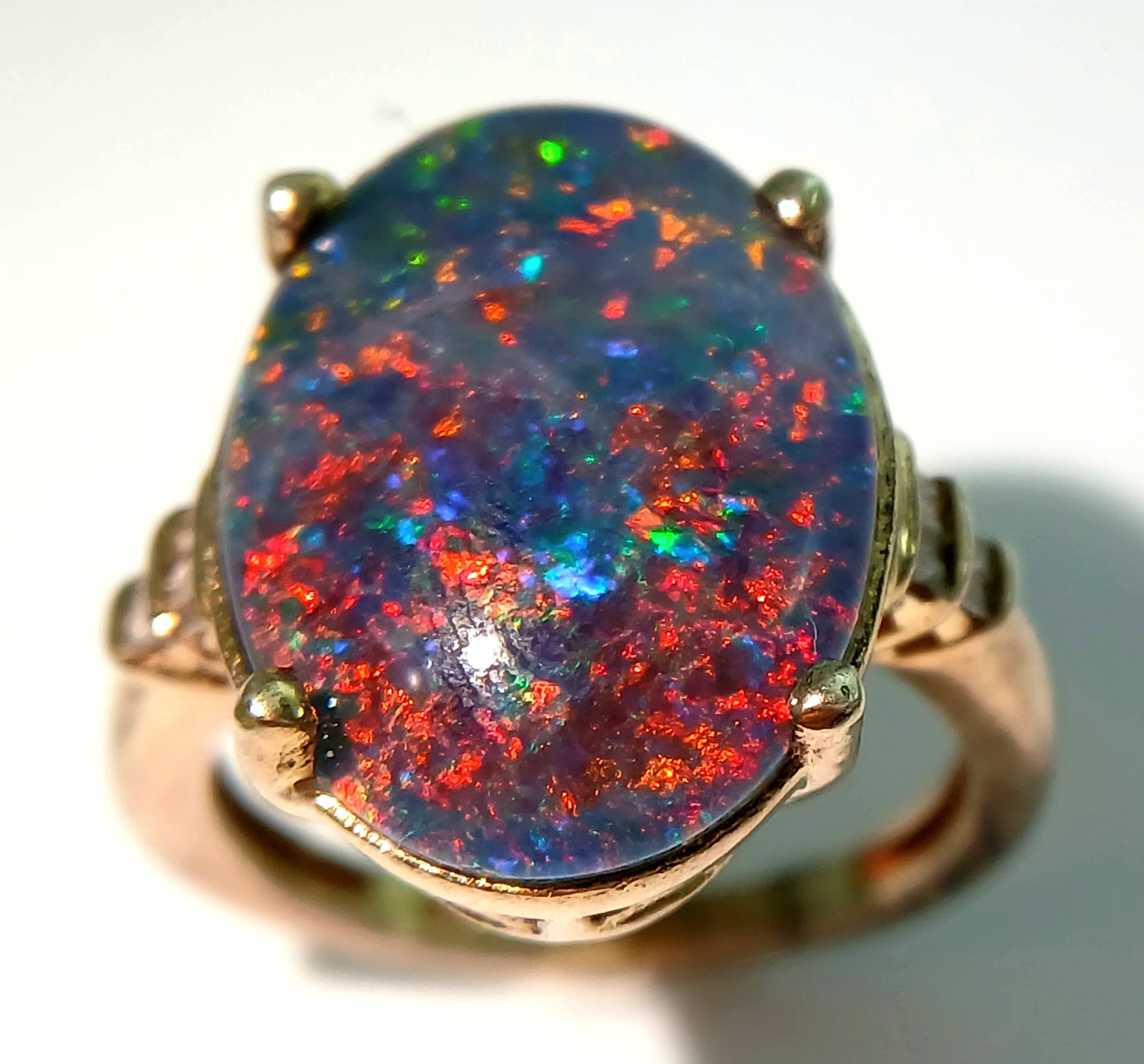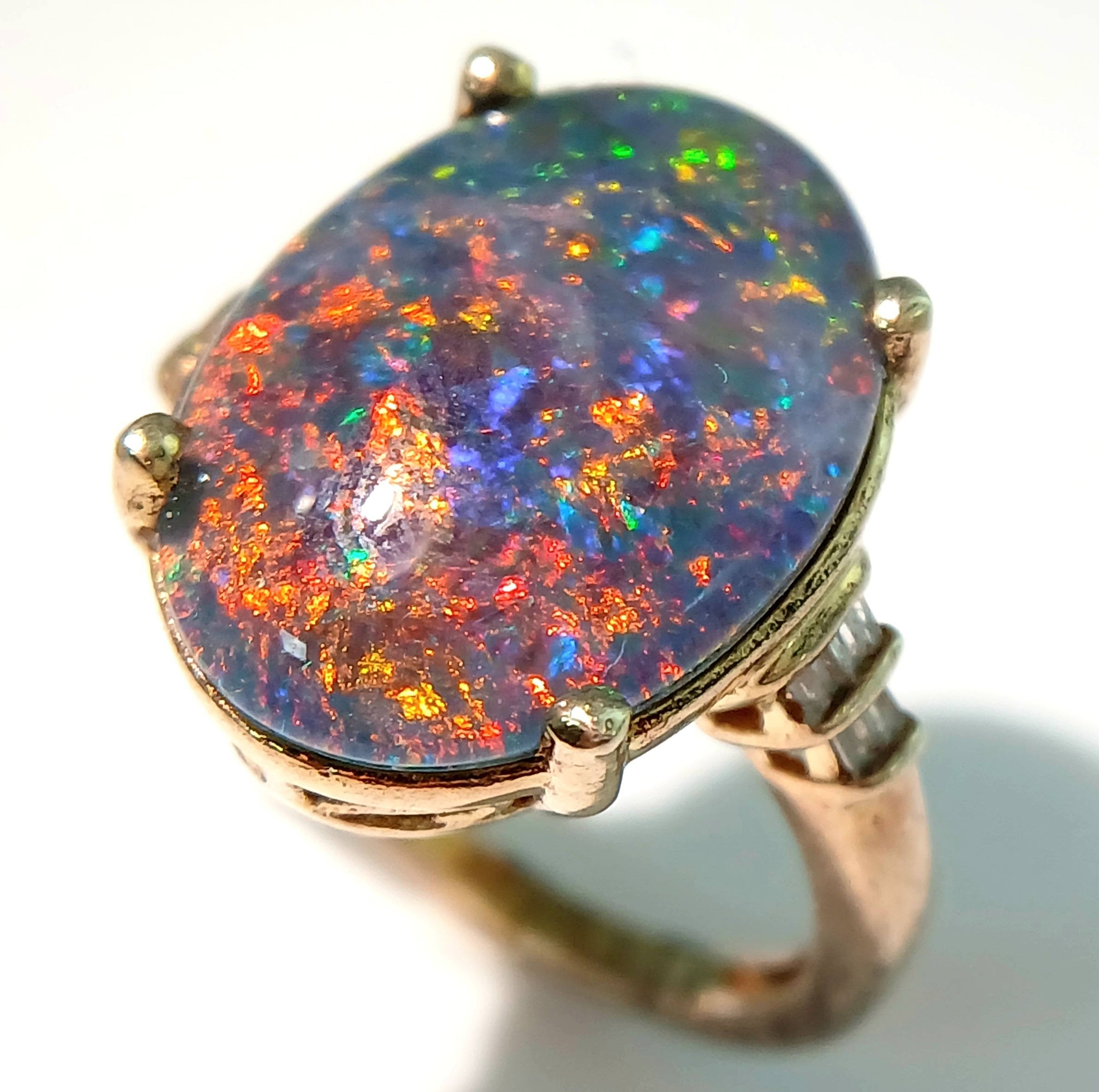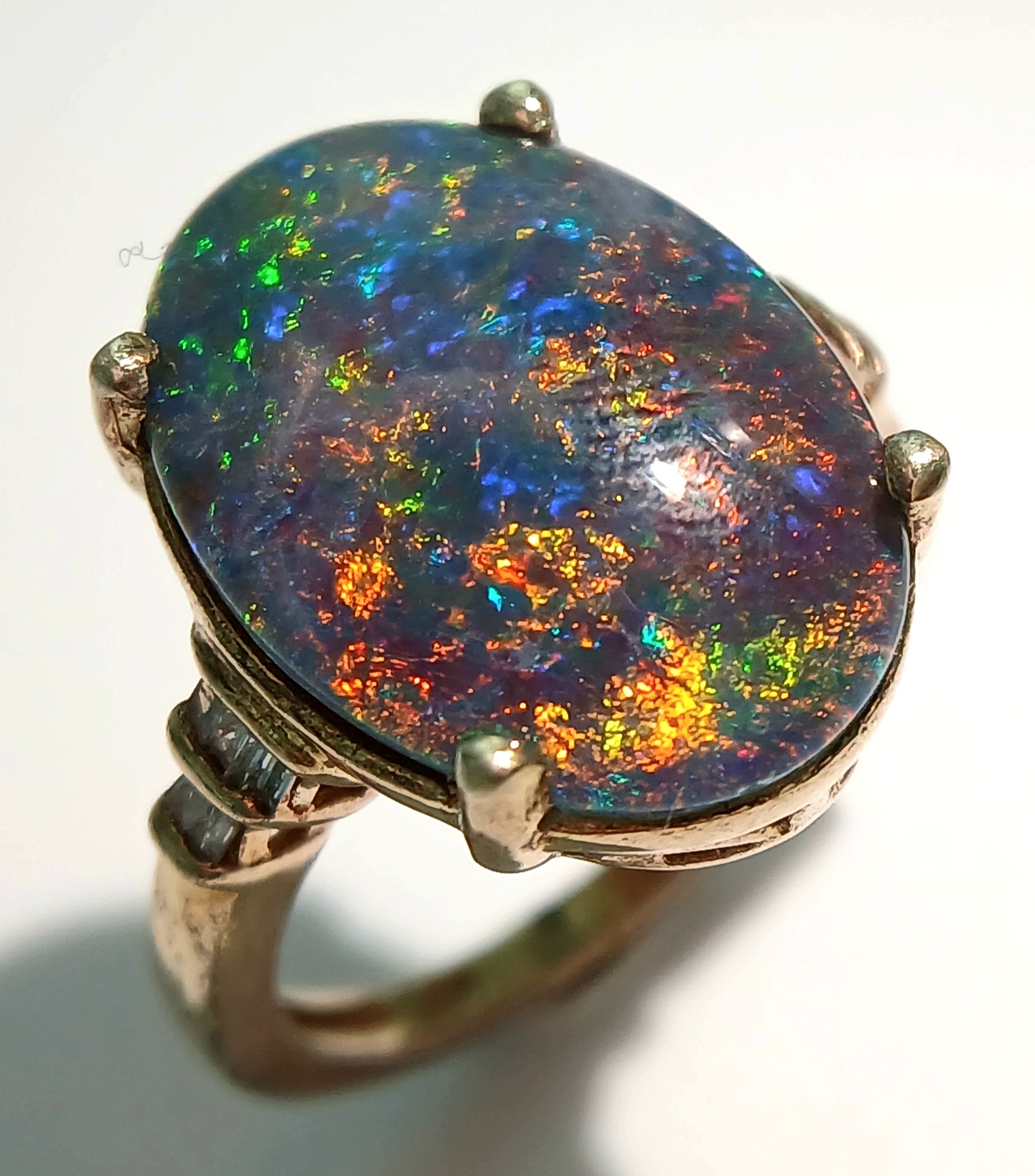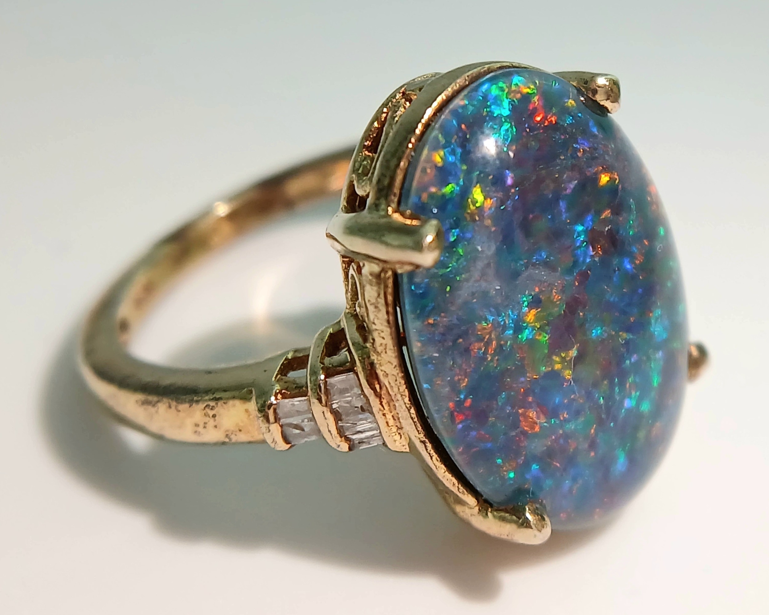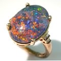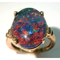 An Eye-Catching Gold Gilded Opal Set Ring Size M1/2. Set with a 1.8cm Length Opal. Gross weight 4.89 Grams.