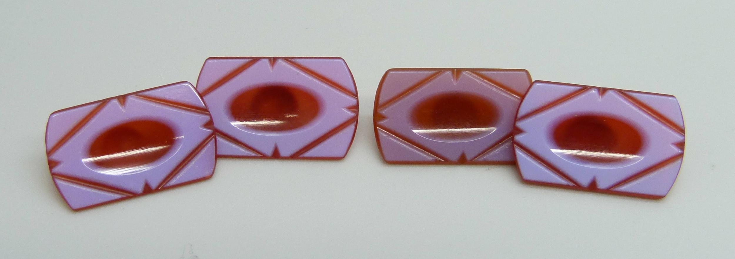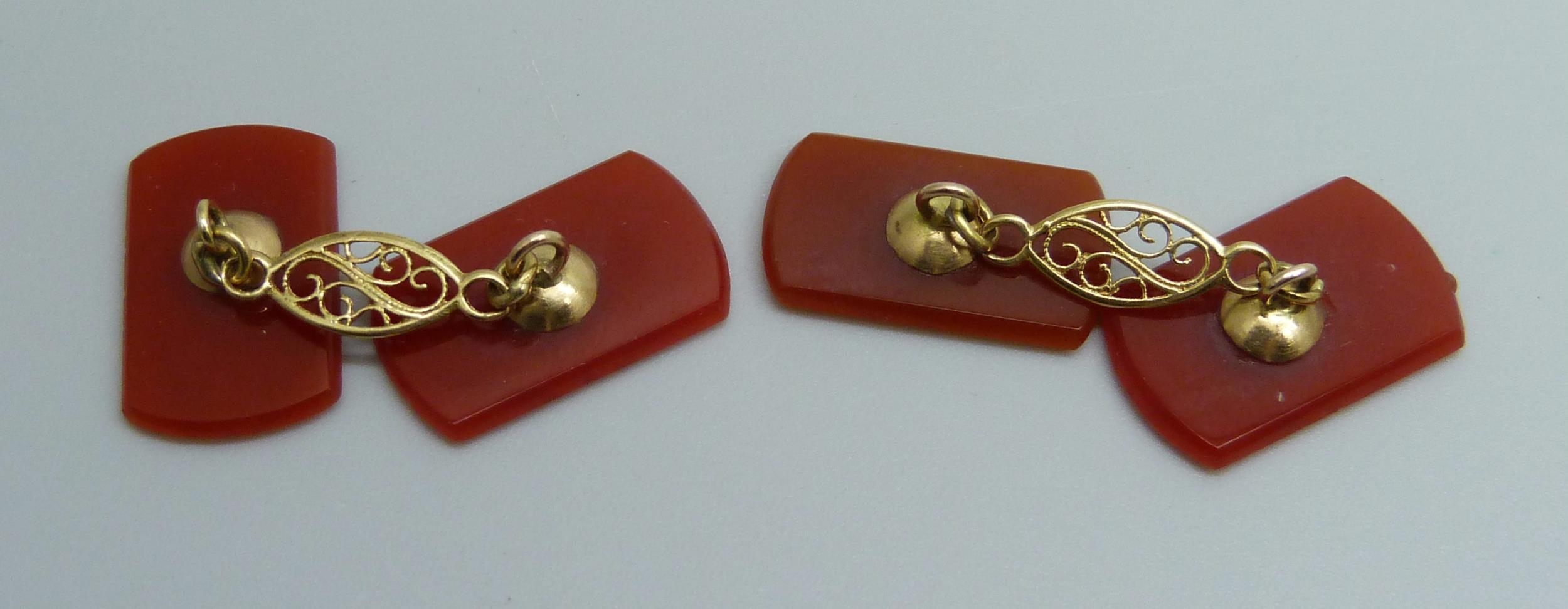 A pair of carved carnelian cufflinks, 2 x 1.2cm