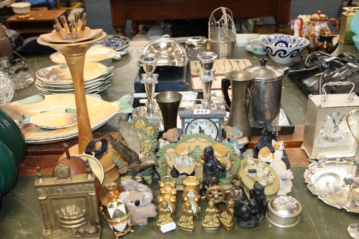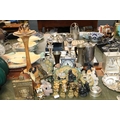 Brassware to include Buddha models, vases, carved wooden fruit, seated bear models and other trinkets.