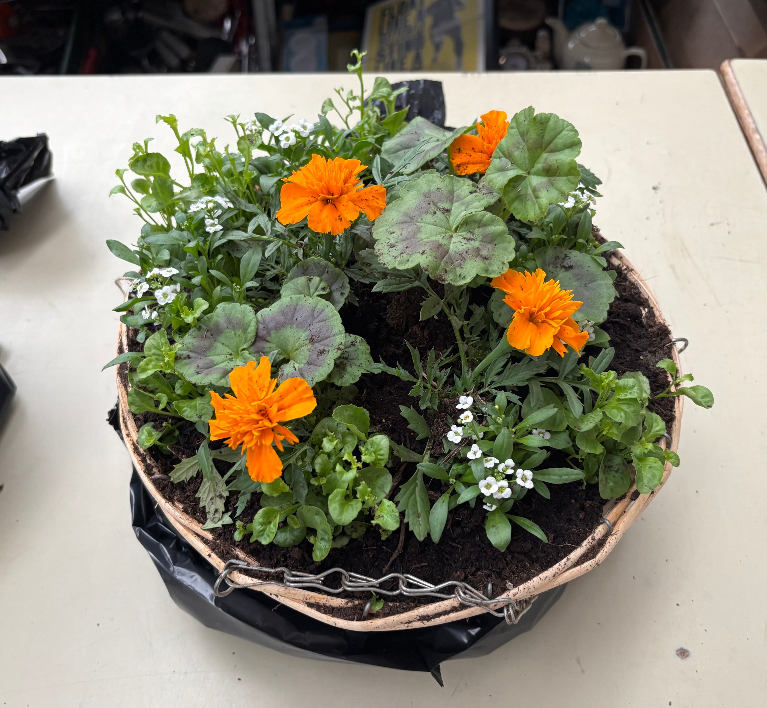 Beautifully filled hanging basket with 100% of the proceeds going to Pendleside Hospice (0% buyer’s premium/ commission)