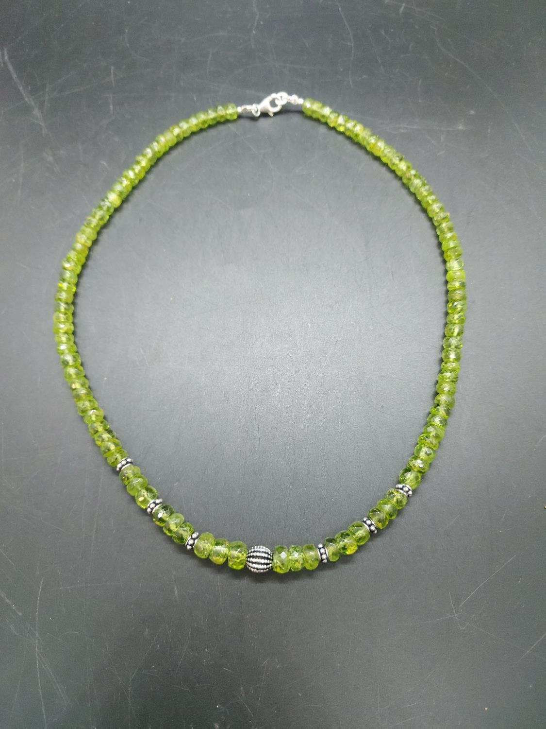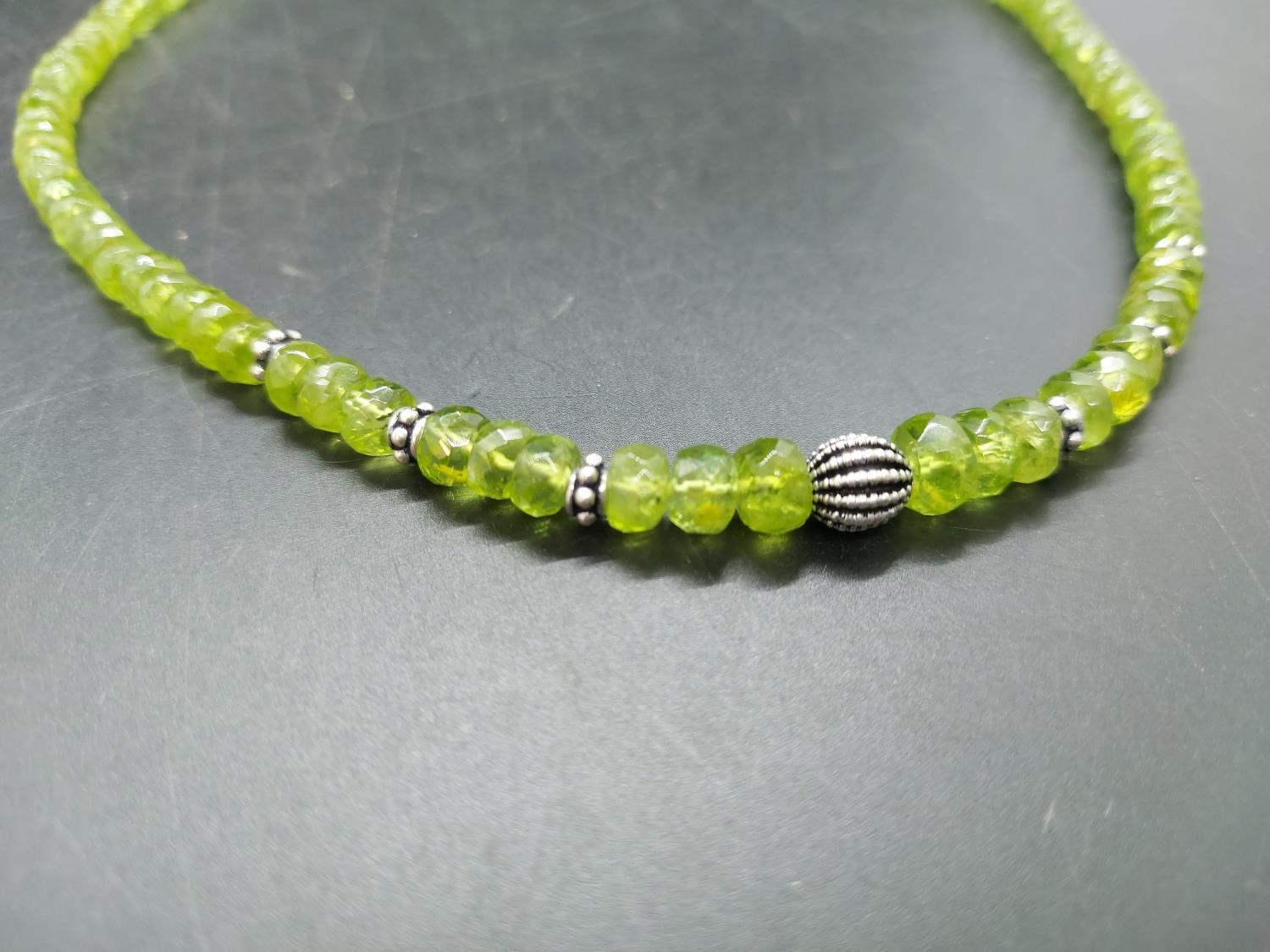 A peridot gemstone bead necklace with 925 silver clasp - approx. 45cm long