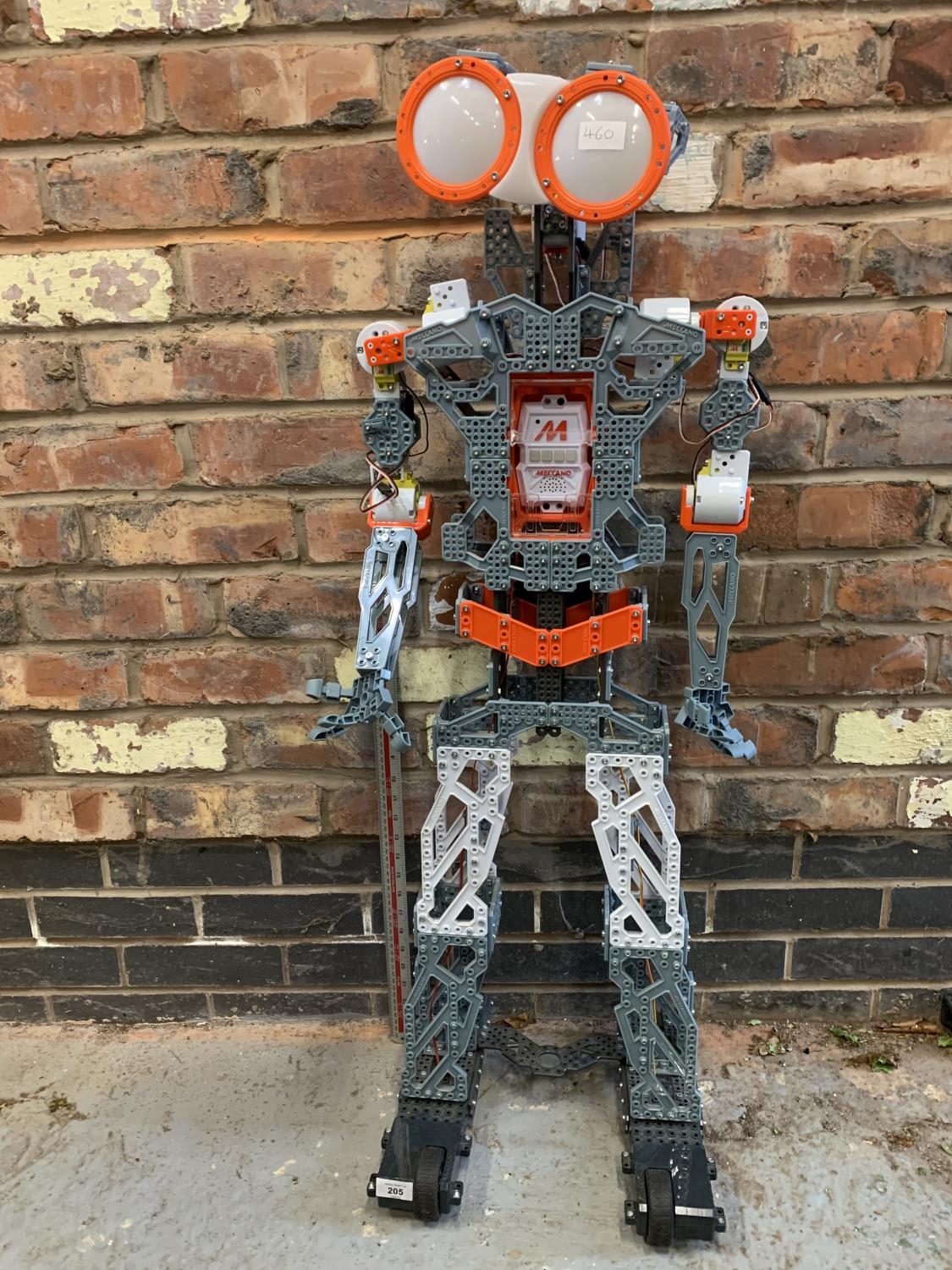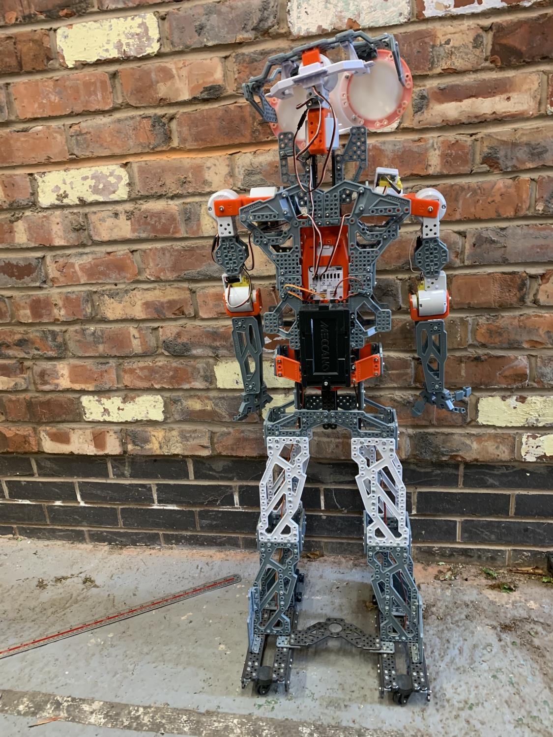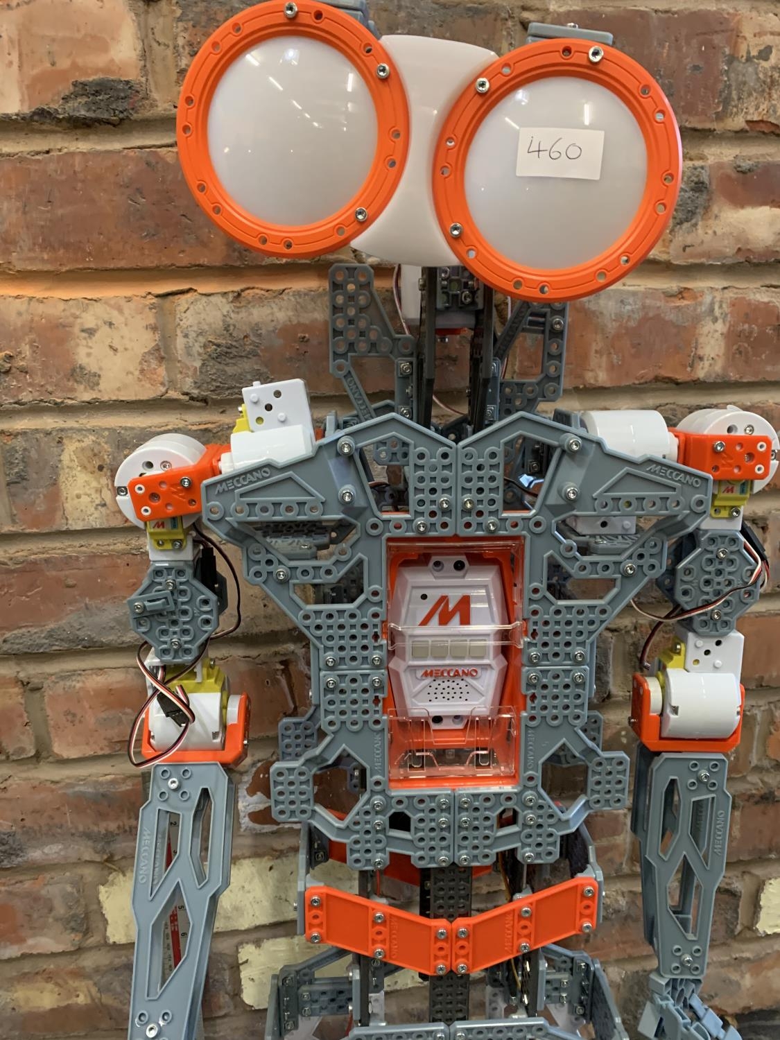 A LARGE BUILT MECCANNO MODEL ROBOT TO HOUSE AN I PHONE WITH APP AVAILABLE TO WORK THE MODEL