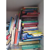 A Nest of Tables, two with hard wood surfaces, One with Glass Top, standing on slender legs.