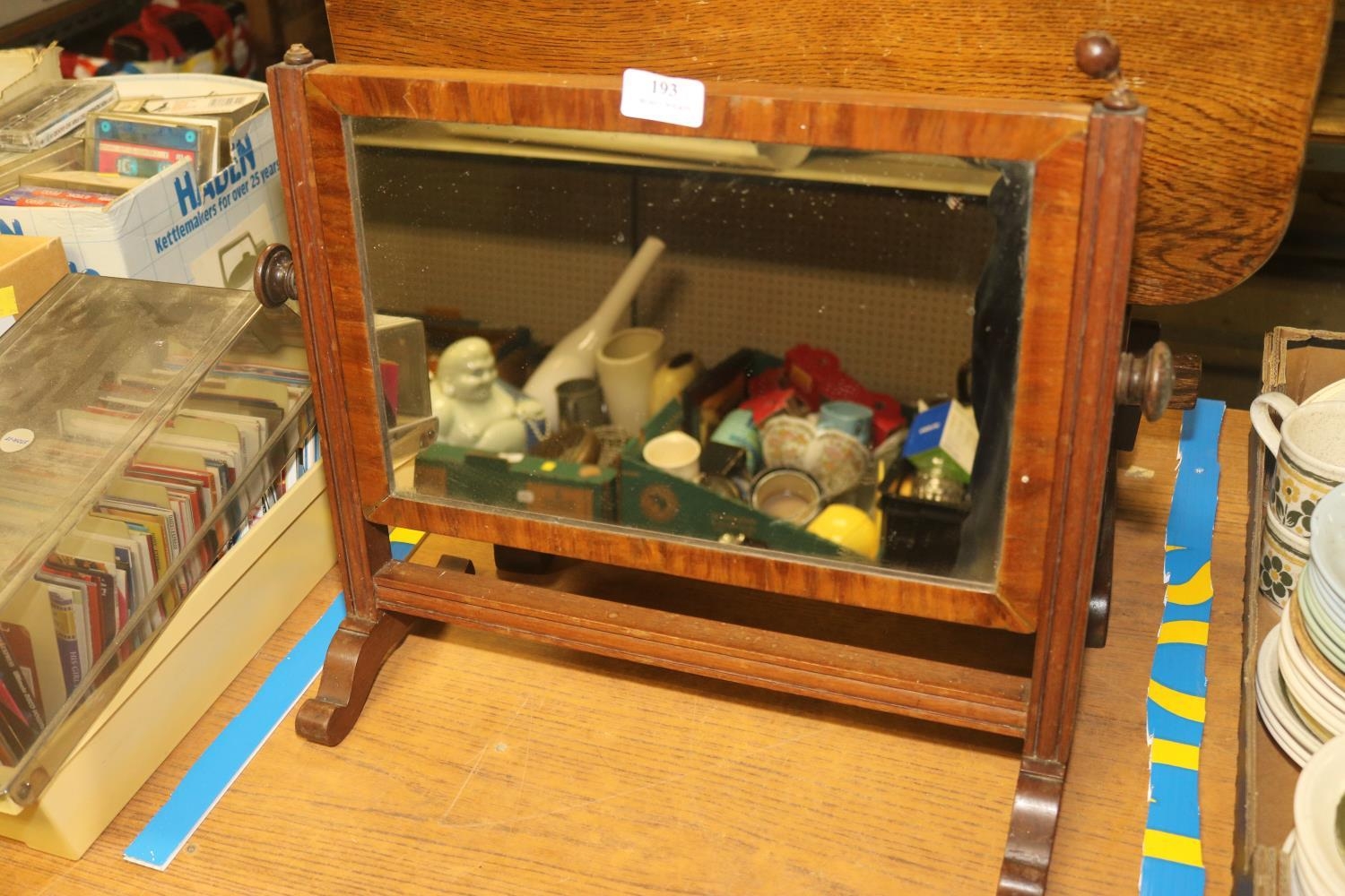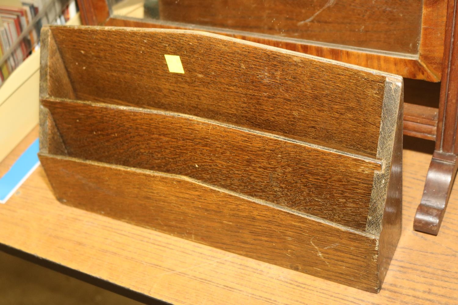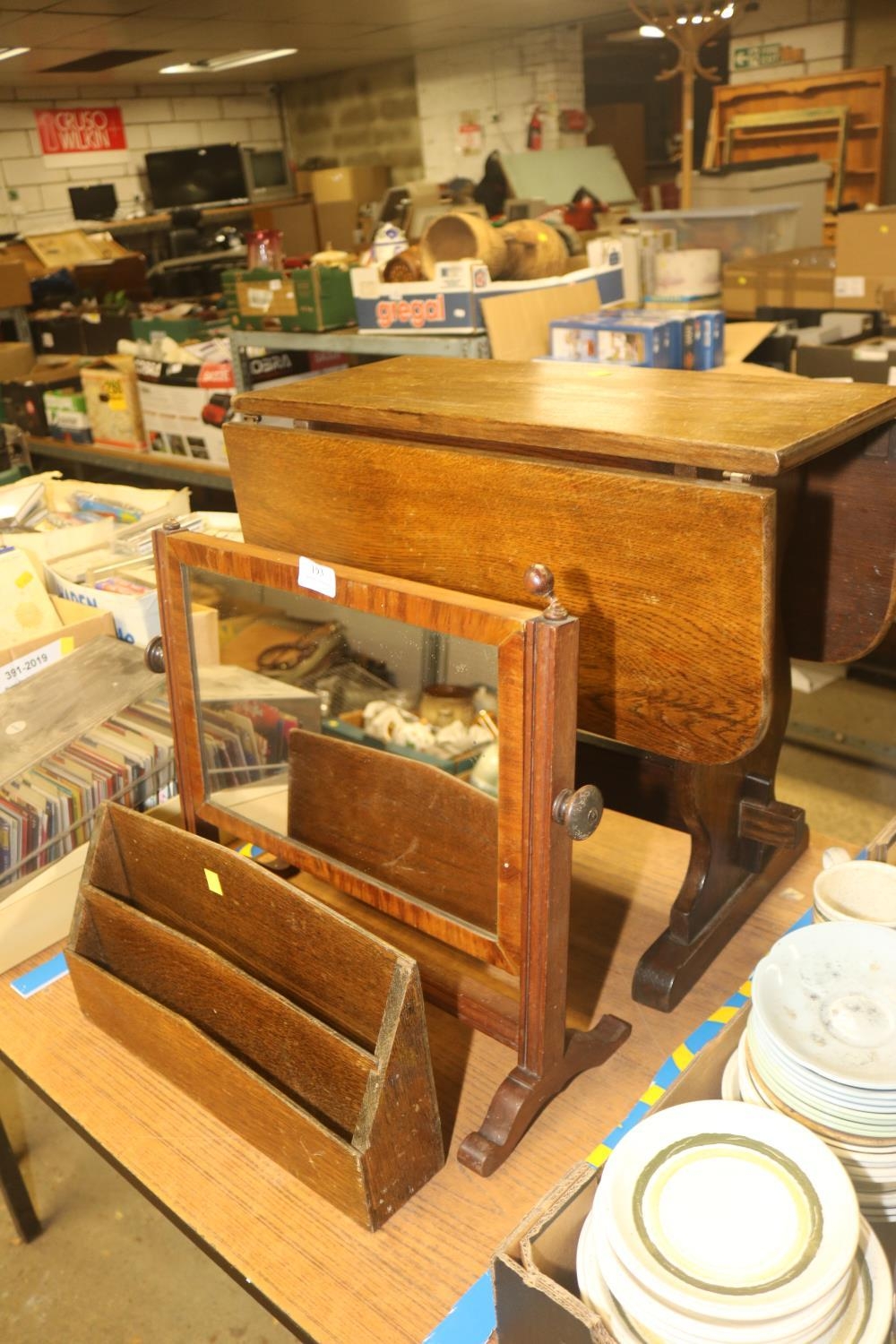 SMALL MAHOGANY FOLDING TABLE, TOGETHER WITH SWING MIRROR AND LETTER RACK