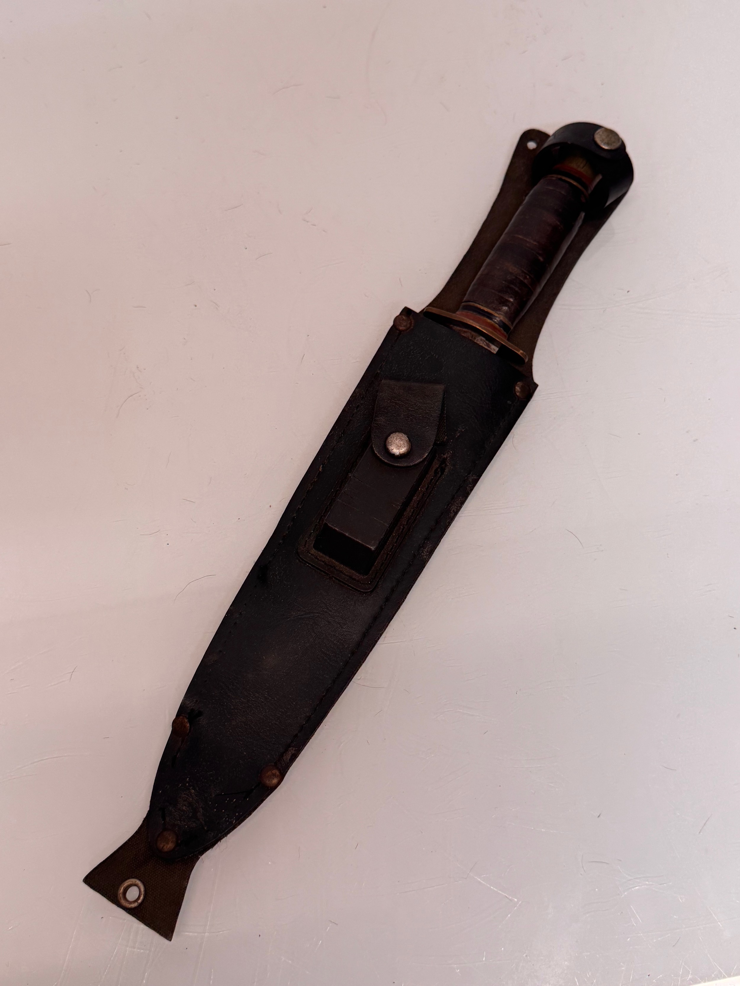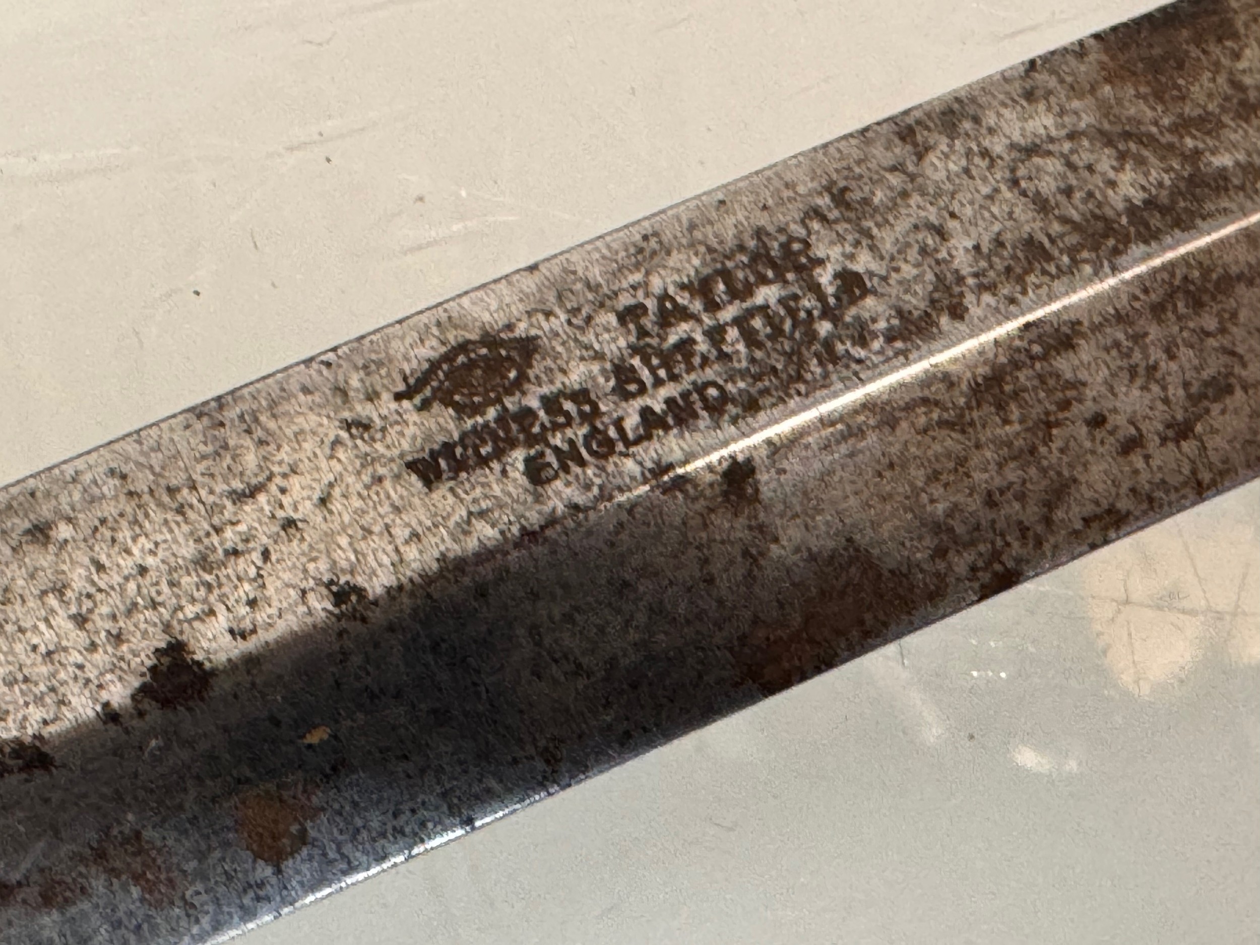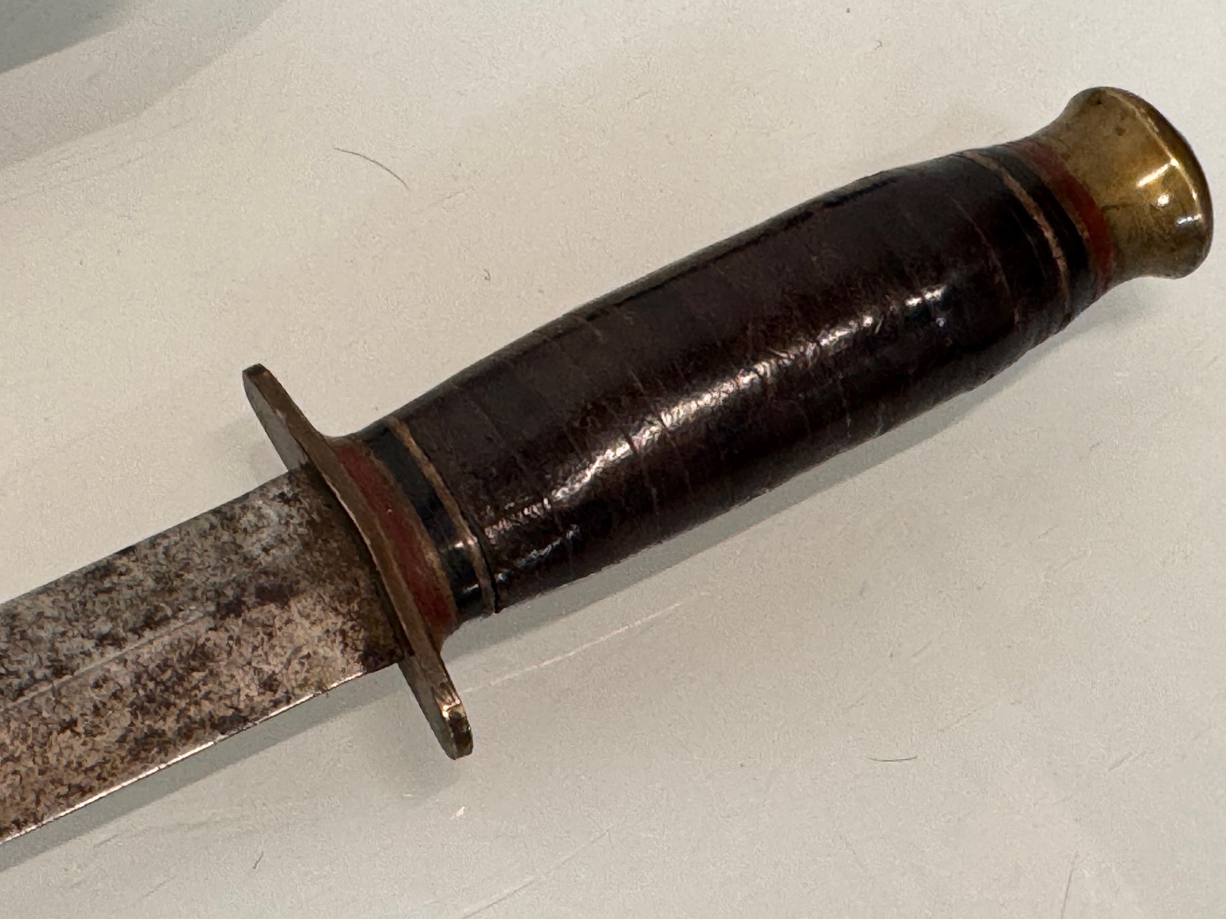 Militaria, British military edged weapons, WWII era fighting knife marked Taylor Witness Sheffield with sheath.