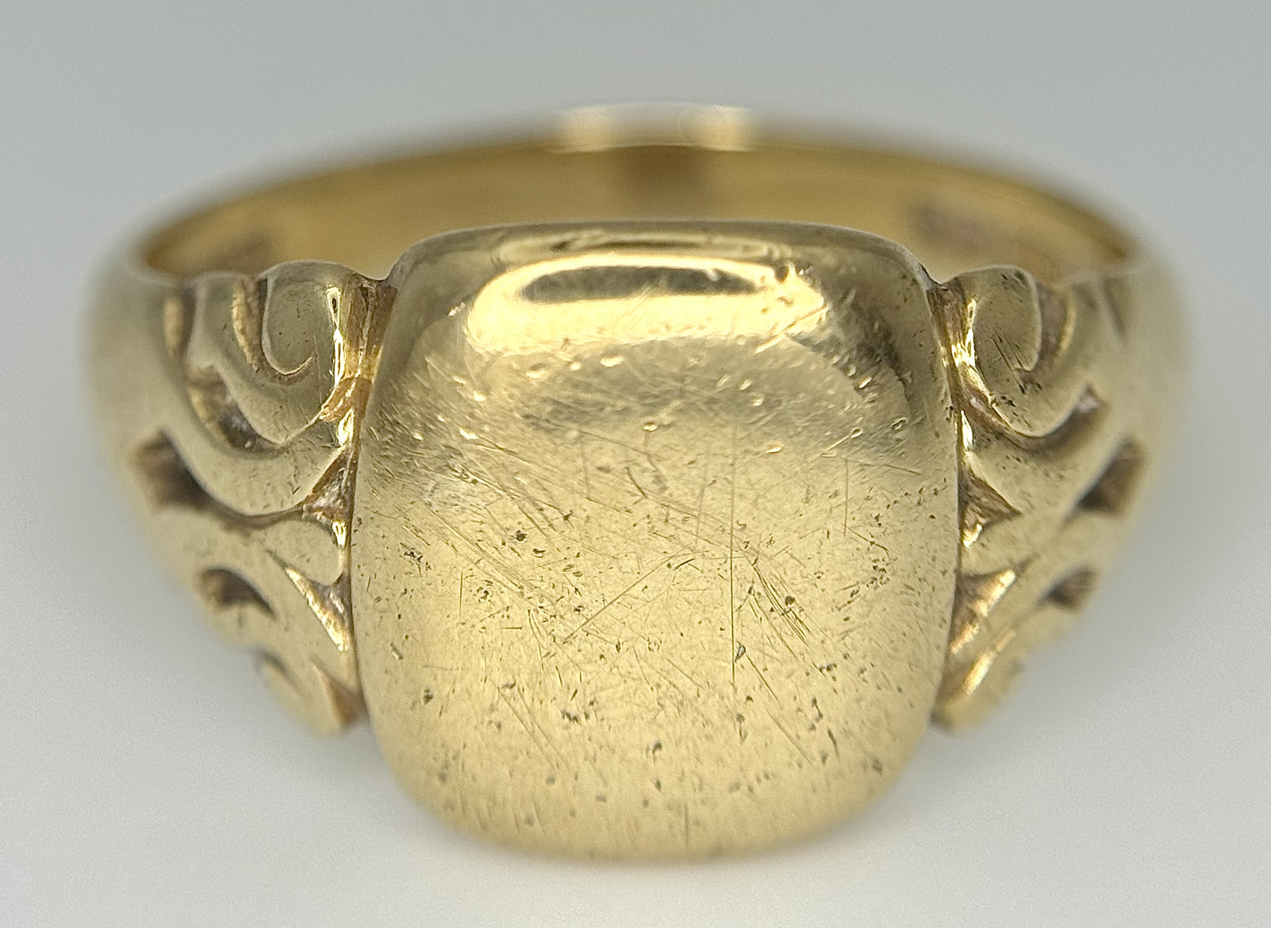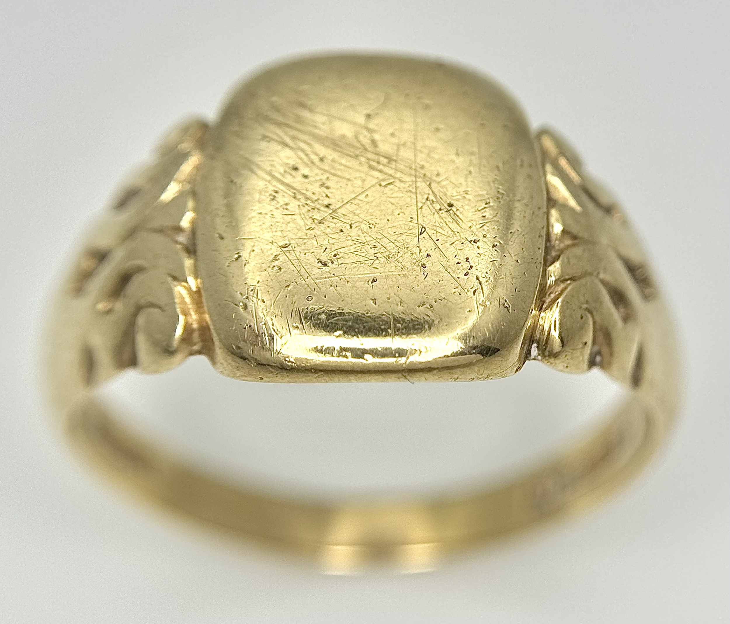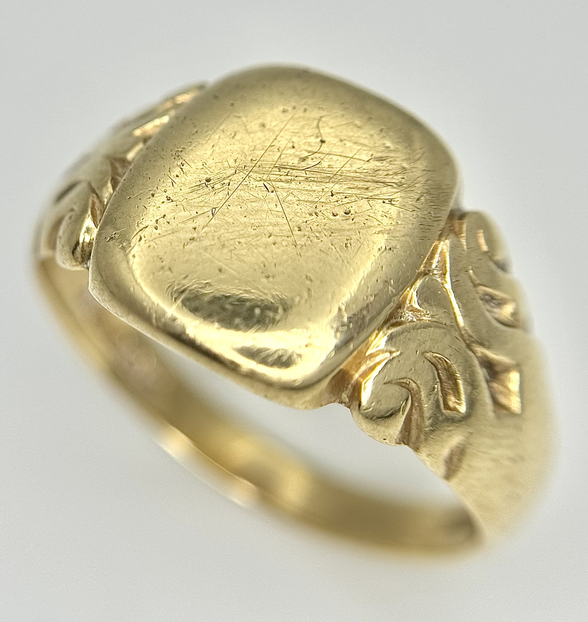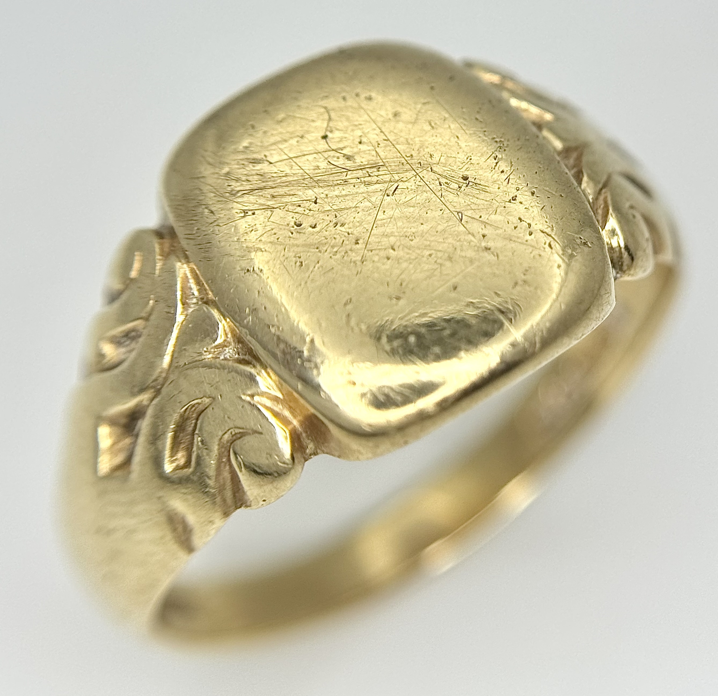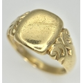 A Vintage 9K Yellow Gold Signet Ring. Size V 1/2. 6.6g.