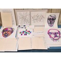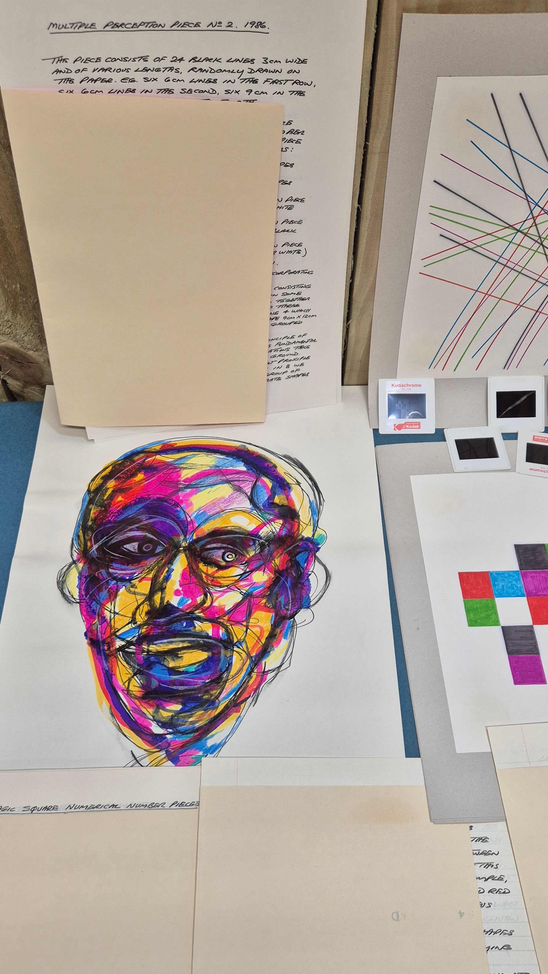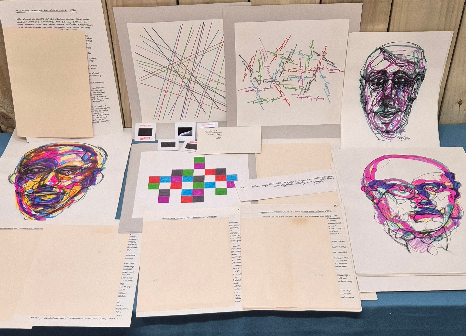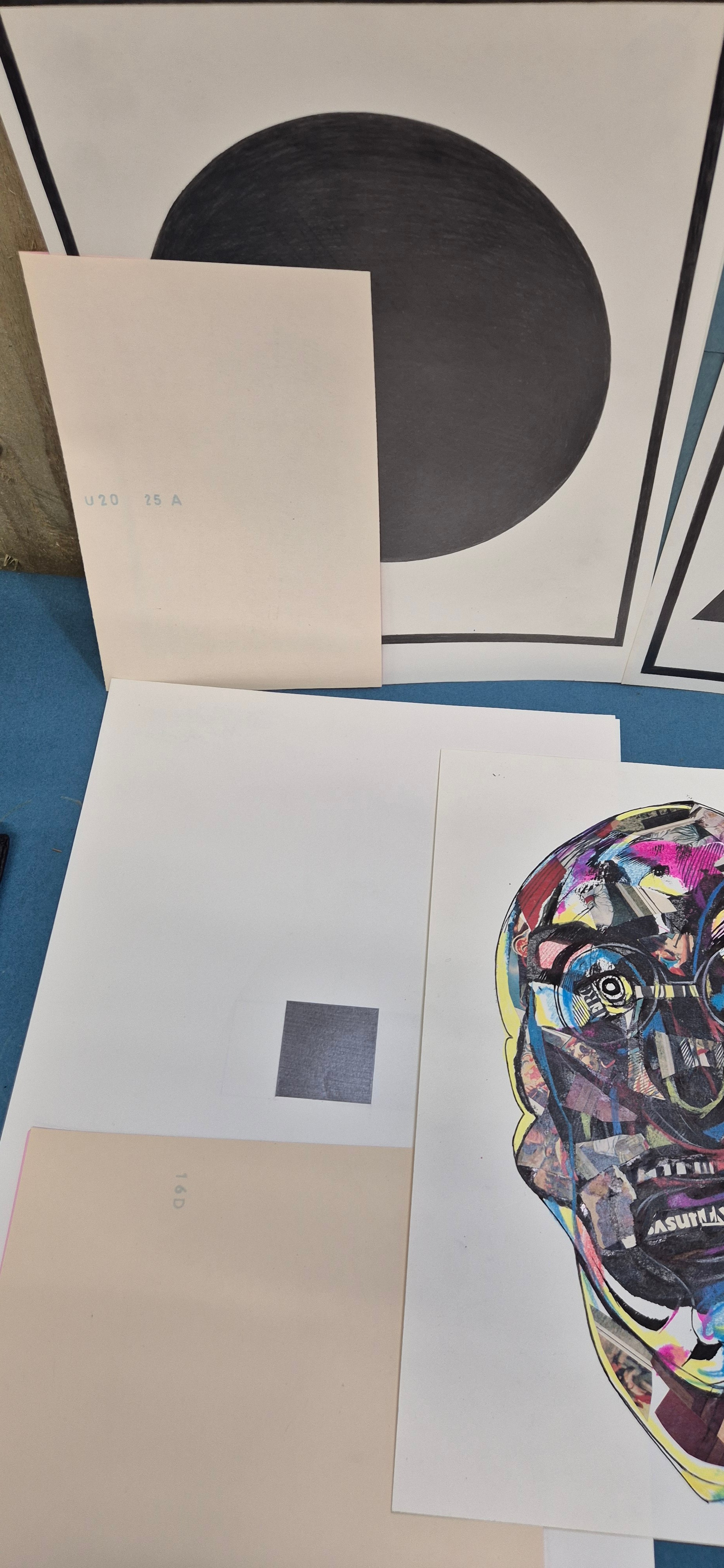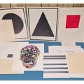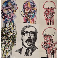 Two folio's containing a collection of mixed media artworks and abstract head artworks. Also includes notes.