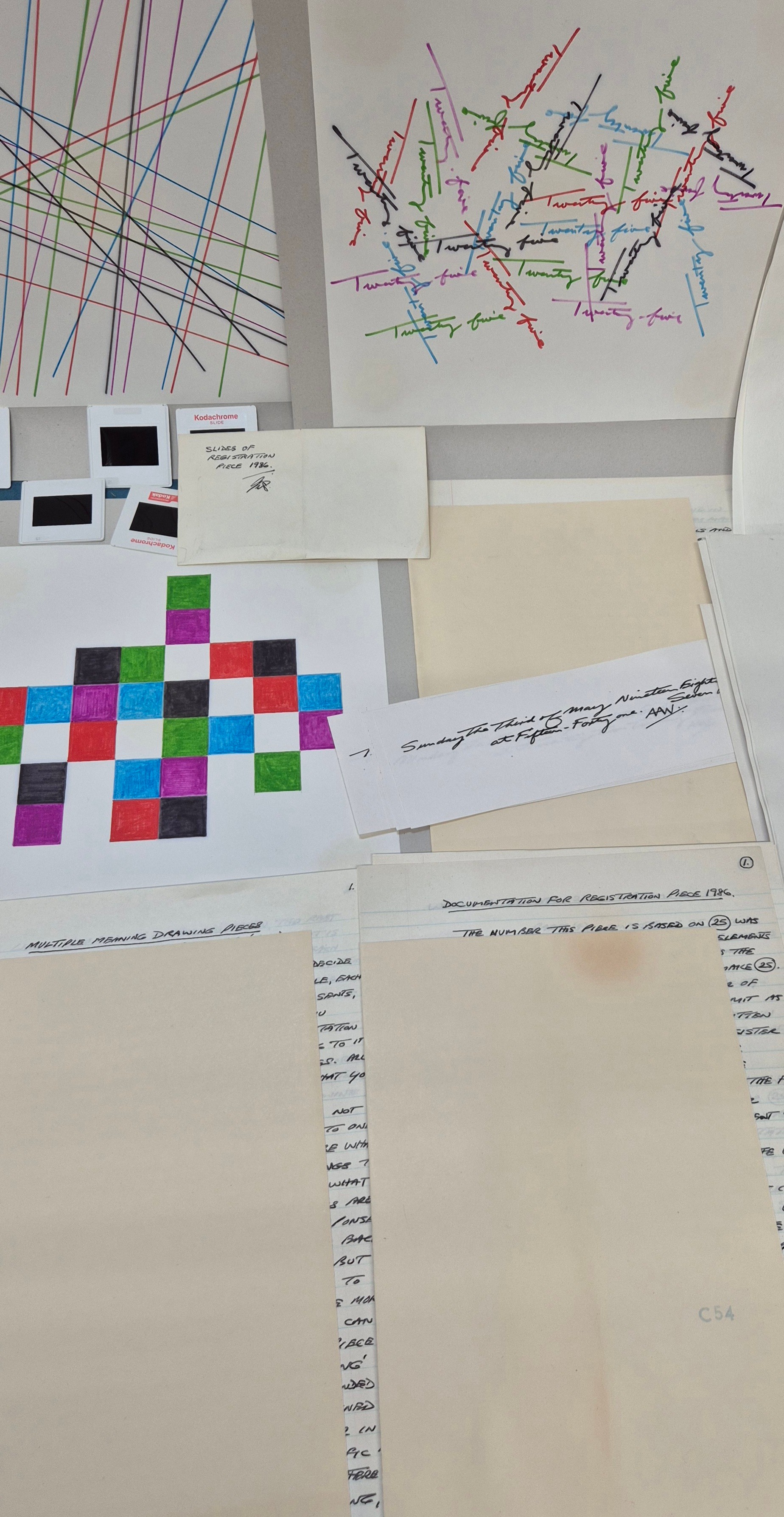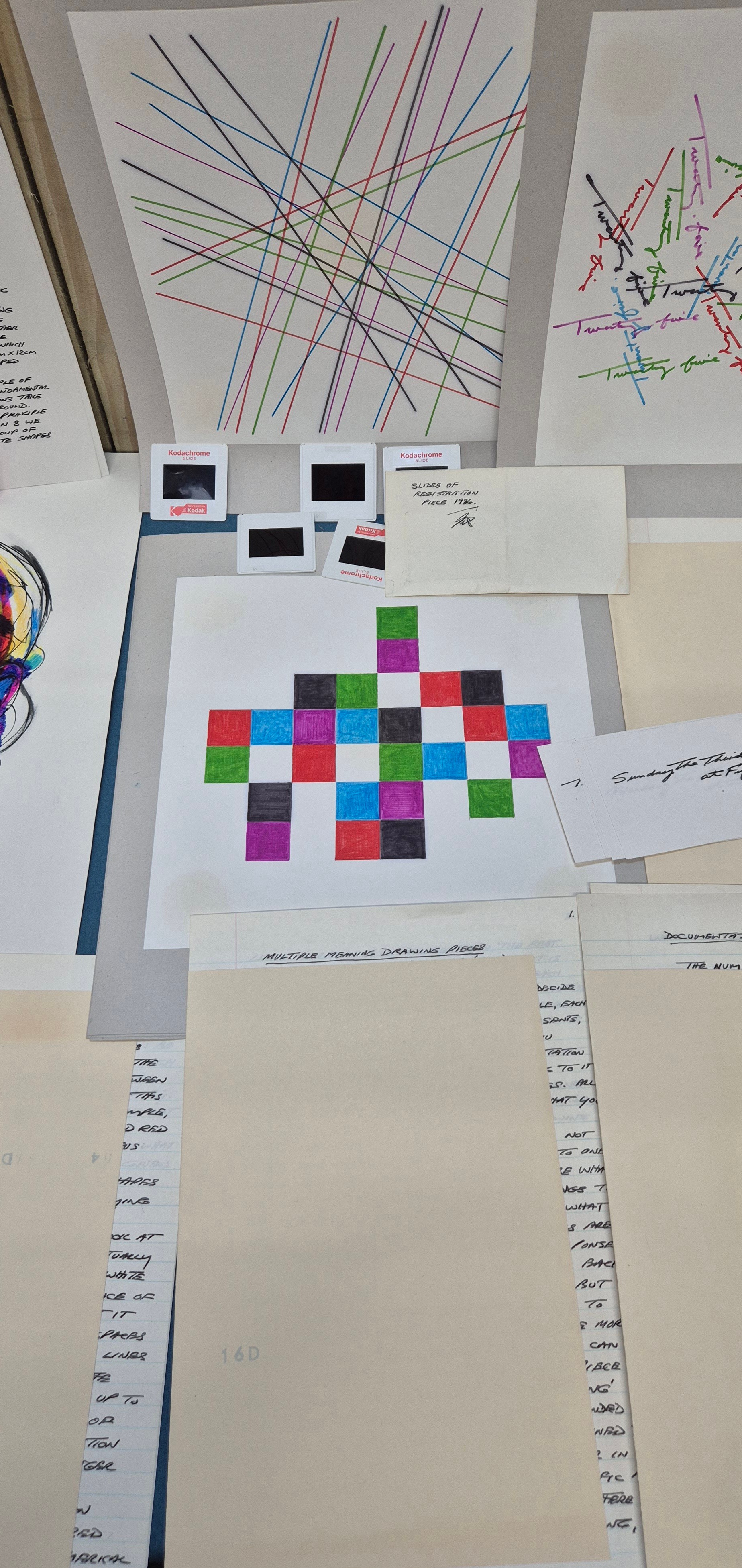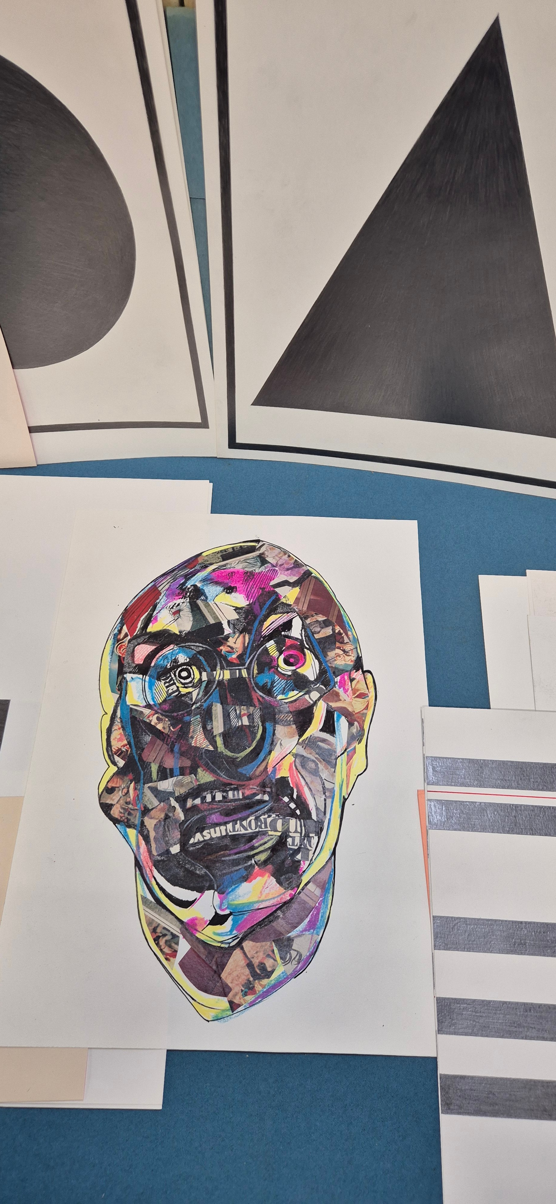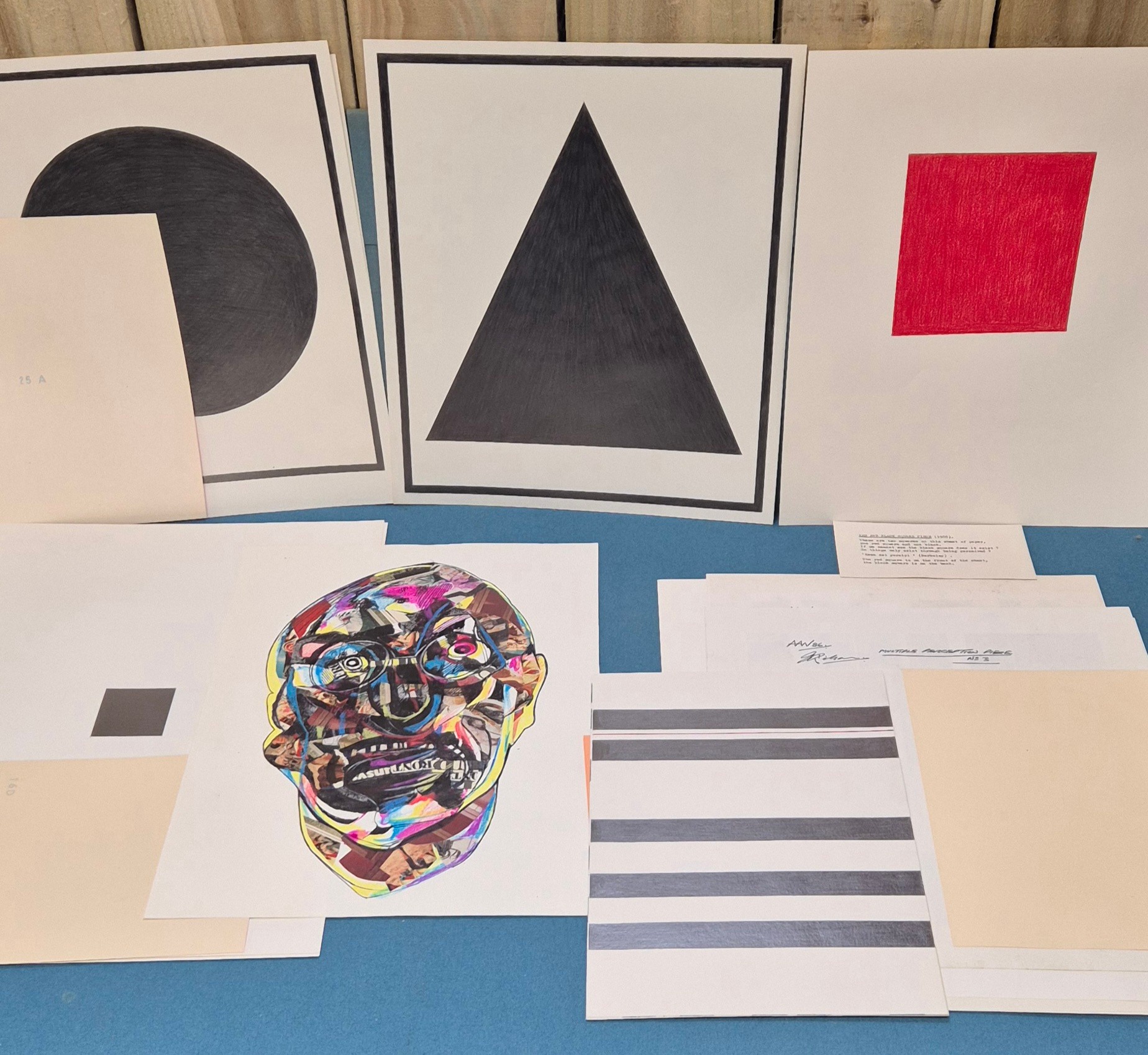 Two folio's containing a collection of mixed media artworks and abstract head artworks. Also includes notes.