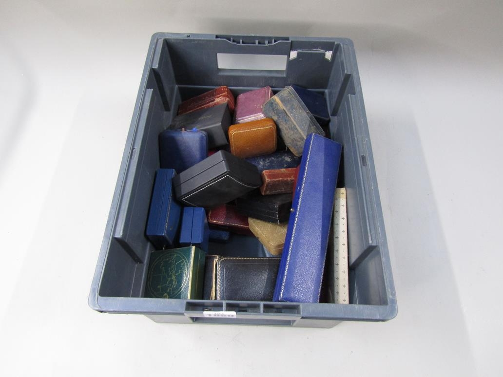 BOX OF LEATHER AND OTHER ANTIQUE JEWELLERY BOXES ETC
