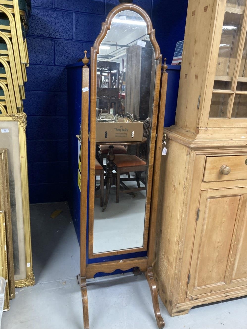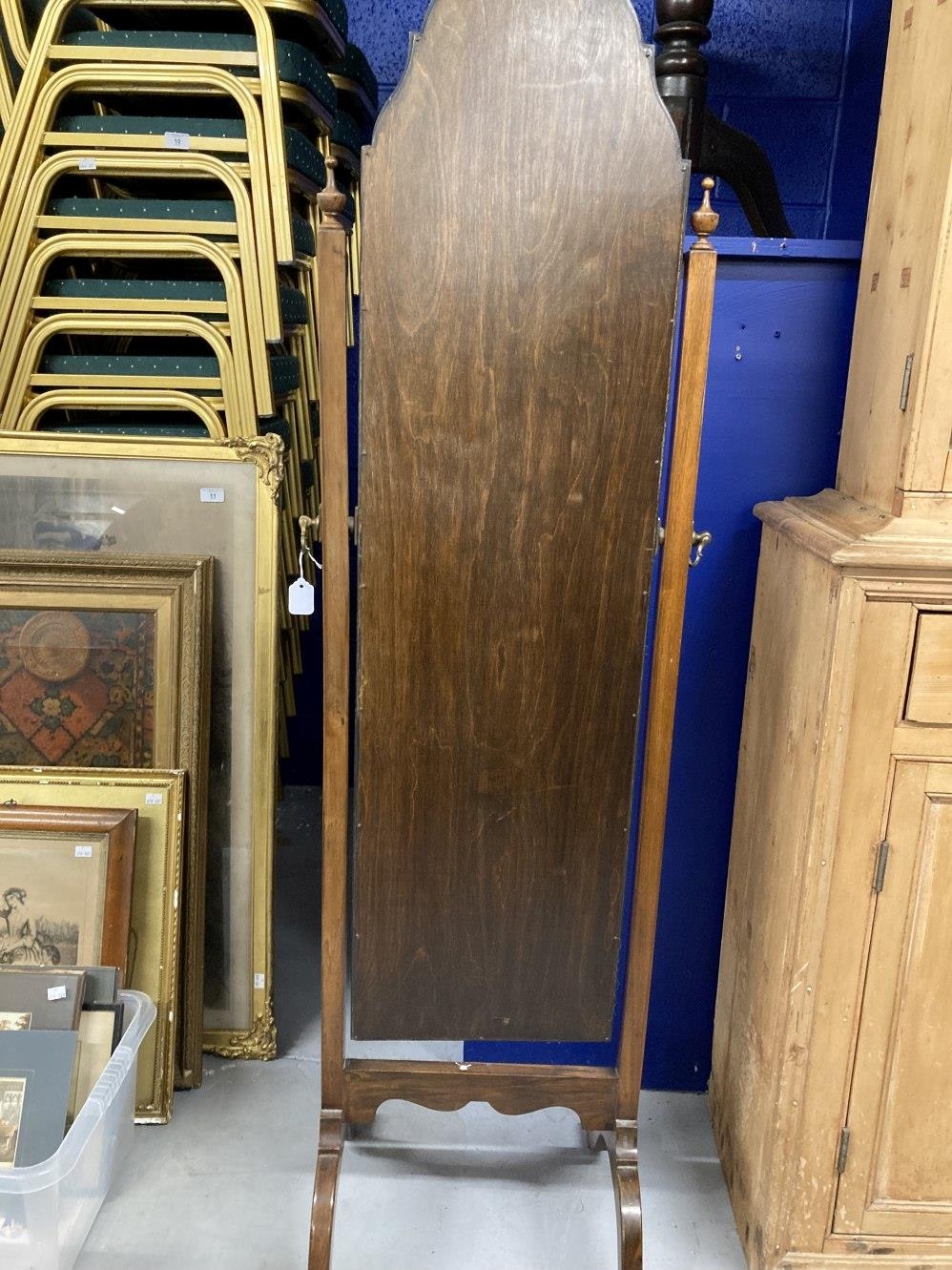Early 20th cent. Mahogany and maple full length mirror on arched supports. 63ins. x 16½ins.