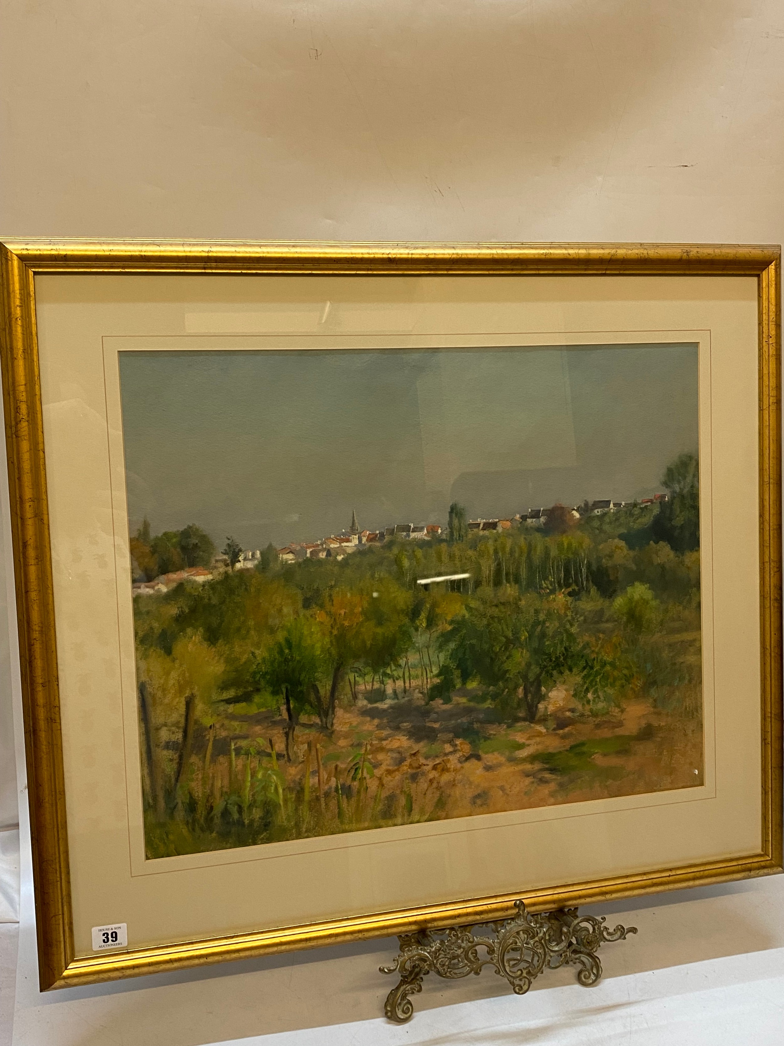 Charles Brooke Farrar. Oils on paper - Village Skyline, framed - 18in. x 22 1/2in.