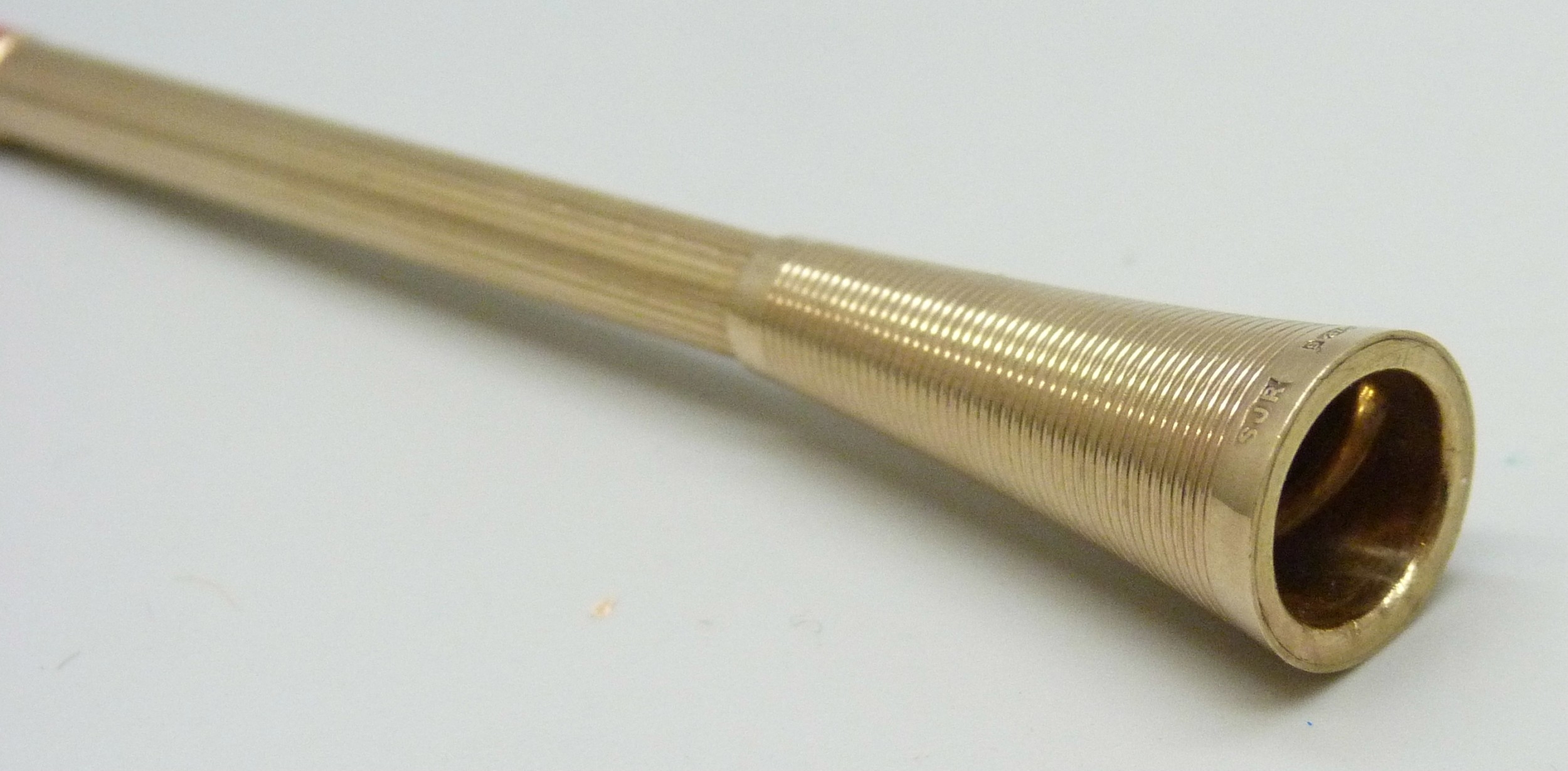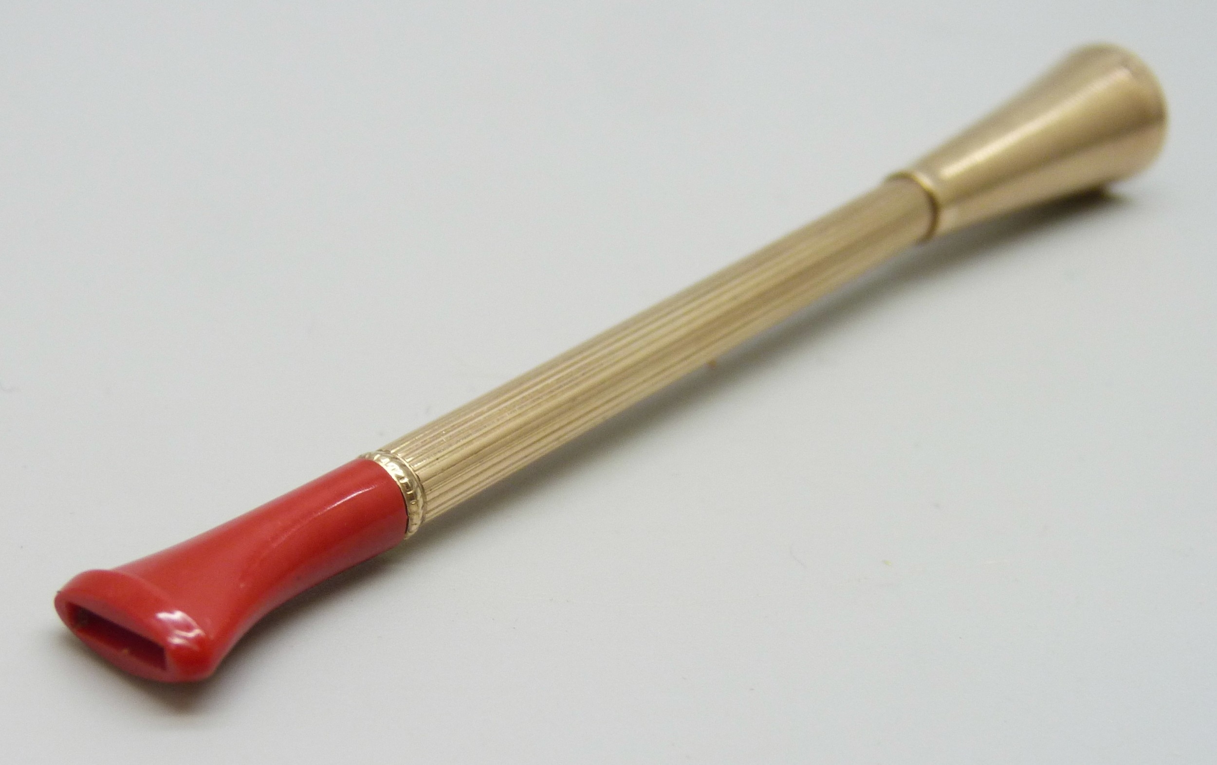 A 9ct gold cheroot holder, 9.2g, 10.2cm